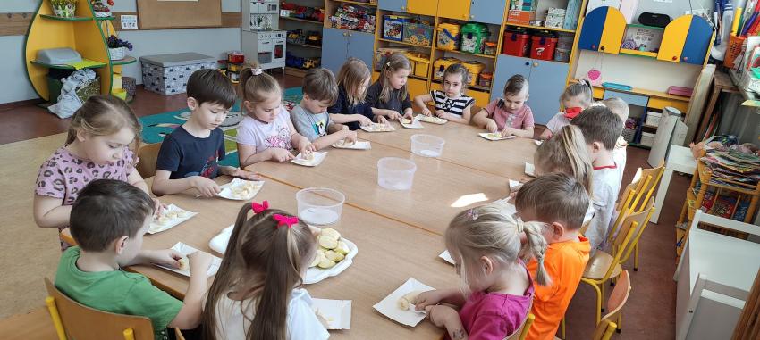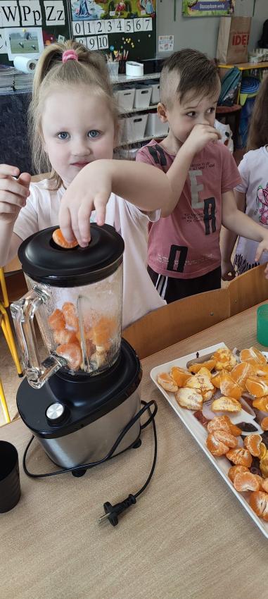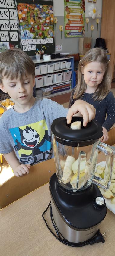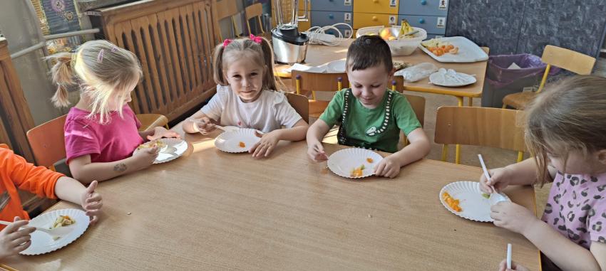 Odbyły się u nich zajęcia kulinarne - dzieci samodzielnie zrobiły kolorową sałatkę owocową pełną witamin, a potem pyszne smoothie. Nie zabrakło także trochę tańca, bo przedszkolaki wiedzą, że ruch również jest ważny dla zdrowia.
