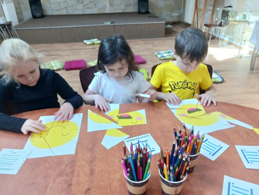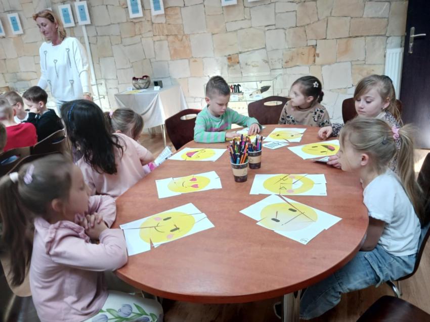 W środę 14 maja dzieci z grupy Krasnoludki odwiedziły Bibliotekę Szósta Strona -Filia Nr 6 W Radomiu. Dzieci uczestniczyły w warsztatach dotyczących emocji. Za pomocą krótkich scenek rozpoznawały miłe i niemiłe emocje. Dowiedziały się czym są emocje a czym są uczucia. Każde dziecko otrzymało i układało z puzzli poszczególne buźki i podawało nazwę emocji. Następnie dzieci otrzymały emotikonki z poszczególną emocja, do której trzeba było dorysować takie elementy, aby zamienić je np. w zwierzątka albo ze smutnej miny zrobić wesołą. Na koniec dzieci przedstawiały swoją mimiką twarzy i postawą ciała emocje takie jak: złość, smutek, radość, strach. Dzisiejsze wyjście wpisujemy w realizację Ogólnopolskiego Projektu Edukacyjnego "Postaw na wartości " Krąg V "POSTAW NA SPOŁECZEŃSTWO"-"EMOCJE ZNAMY-SIEBIE WYRAŻAMY"-kreatywne przedstawienie zajęć dotyczących emocji.