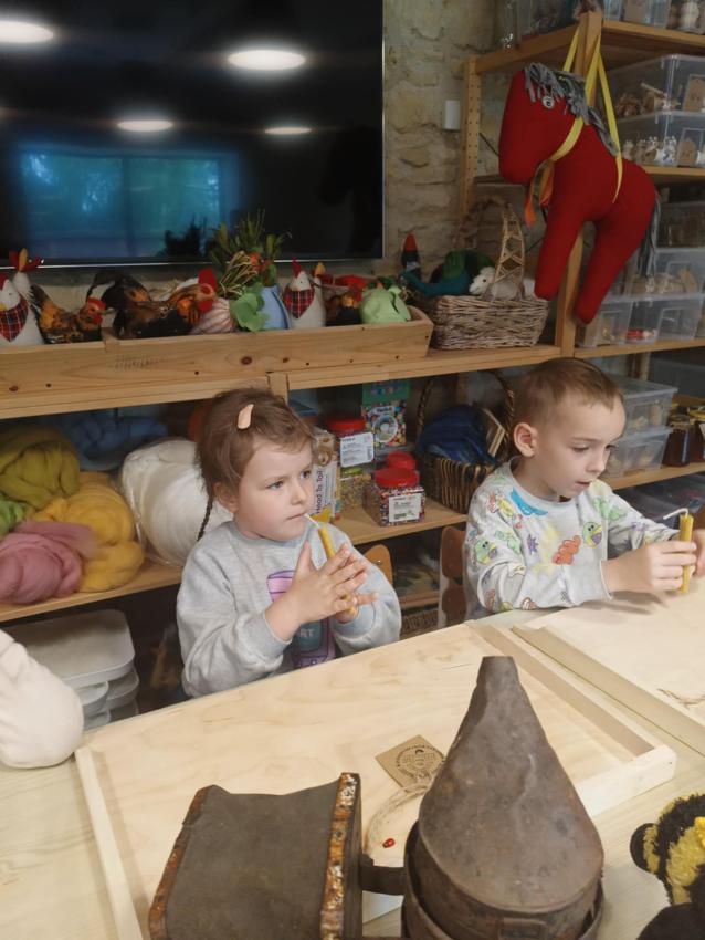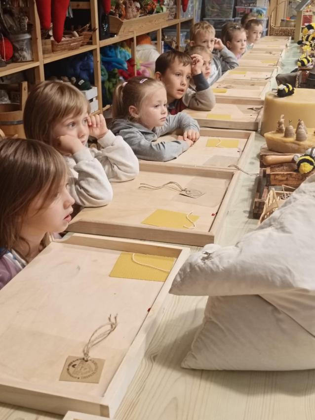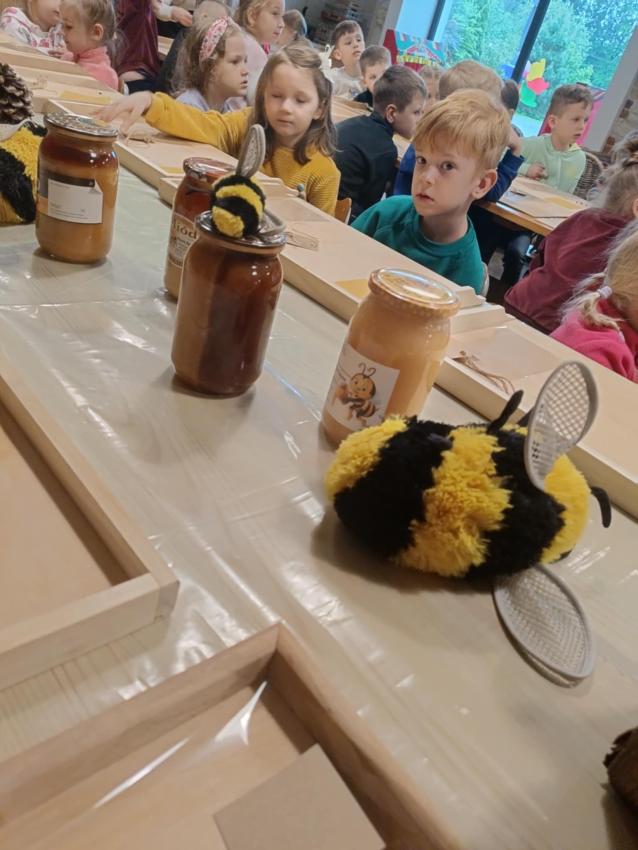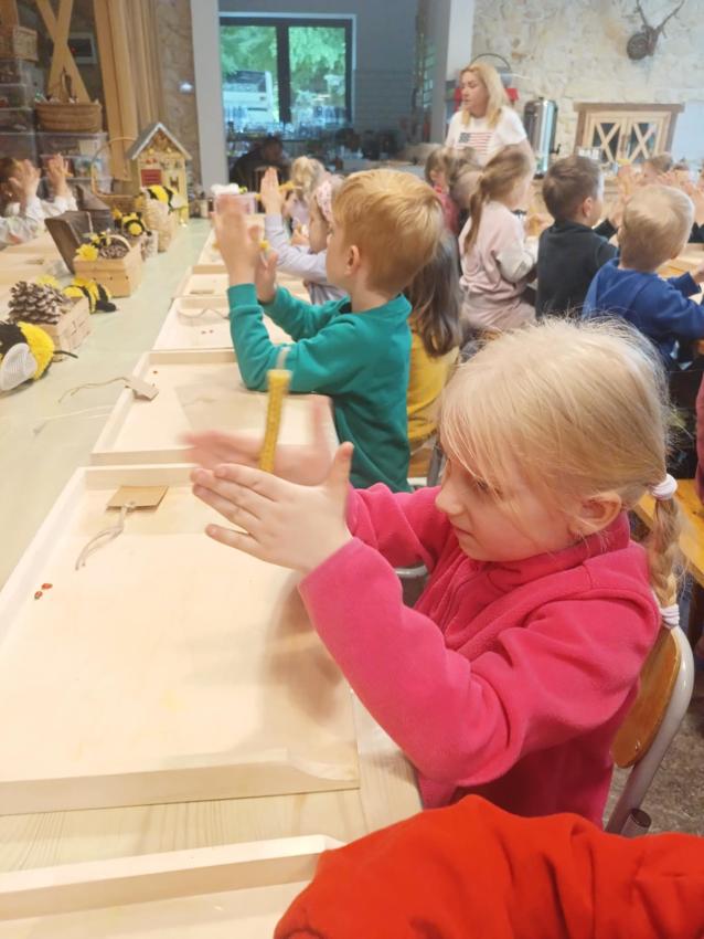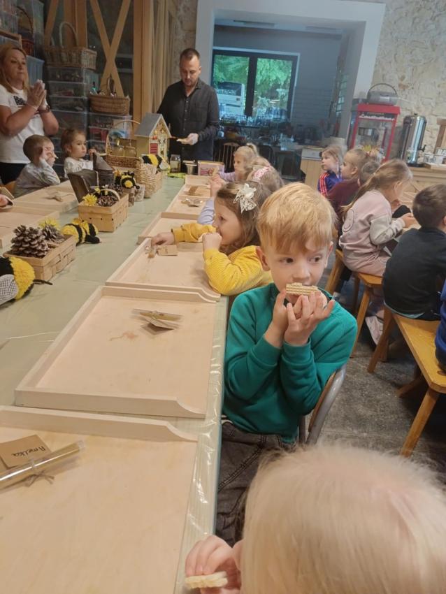 W czwartek dzieci z grupy Kotki i Supersmyki były na wycieczce w Zagrodzie Edukacyjnej ALE HECA. Na początku uczestniczyły w warsztatach tematycznych związanych z pszczołami i pszczelarstwem,poznały smaki i rodzaje miodów, samodzielnie wykonały świecę z woskowego plastra. Potem były zajęcia plastyczne, słodki poczęstunek i na zakończenie pobytu zabawa ze ścieżką sensoryczną, karmienie zwierząt i łowienie ryb. Mimo deszczowej pogody pobyt w Zagrodzie był bardzo udany.