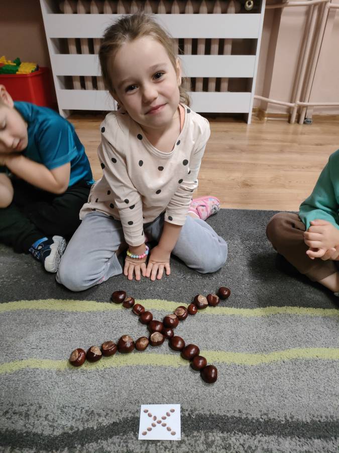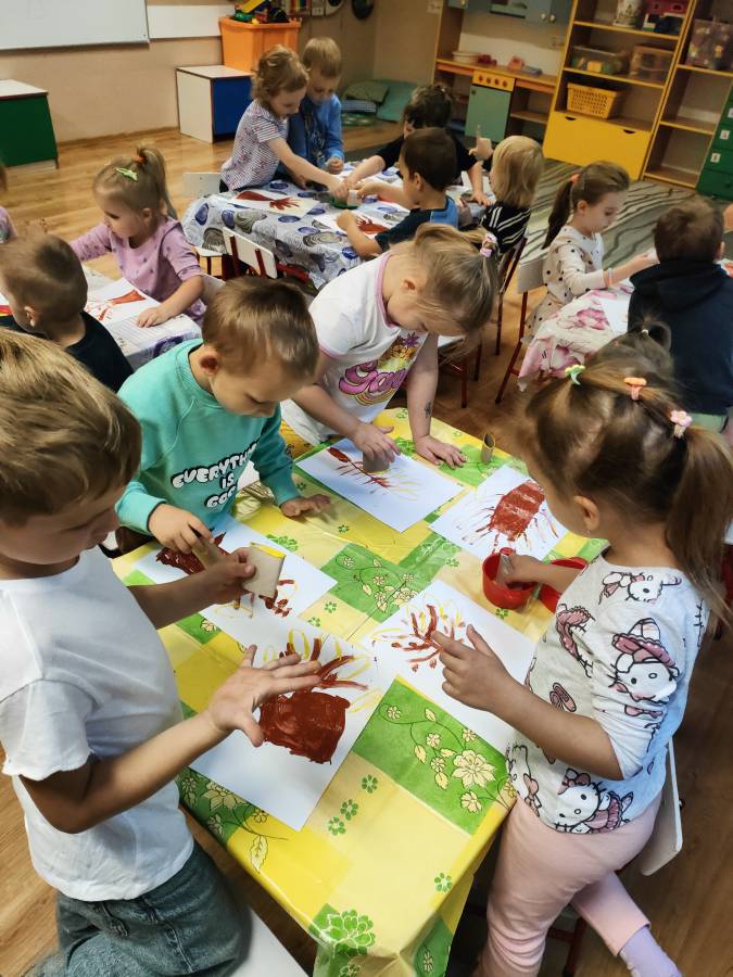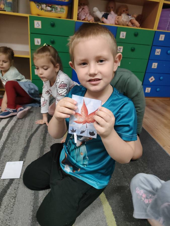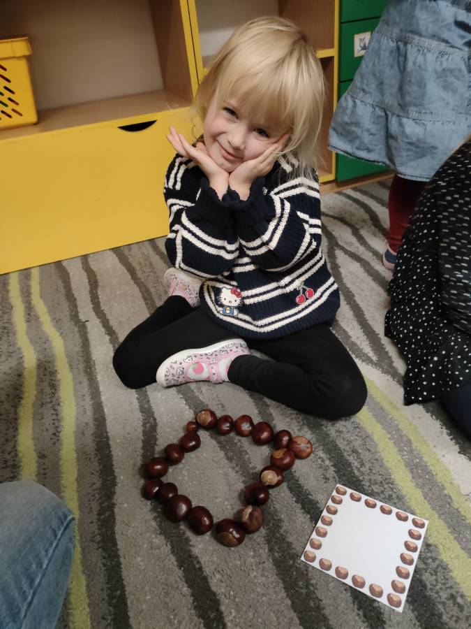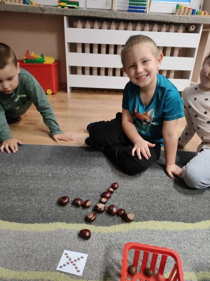 W grupie Motylki odbyły się pełne jesiennej atmosfery zajęcia. Dzieci układały kasztany według podanych wzorów, następnie wykonały własne jesienne drzewka oraz dopasowywały liście do ich kształtów.