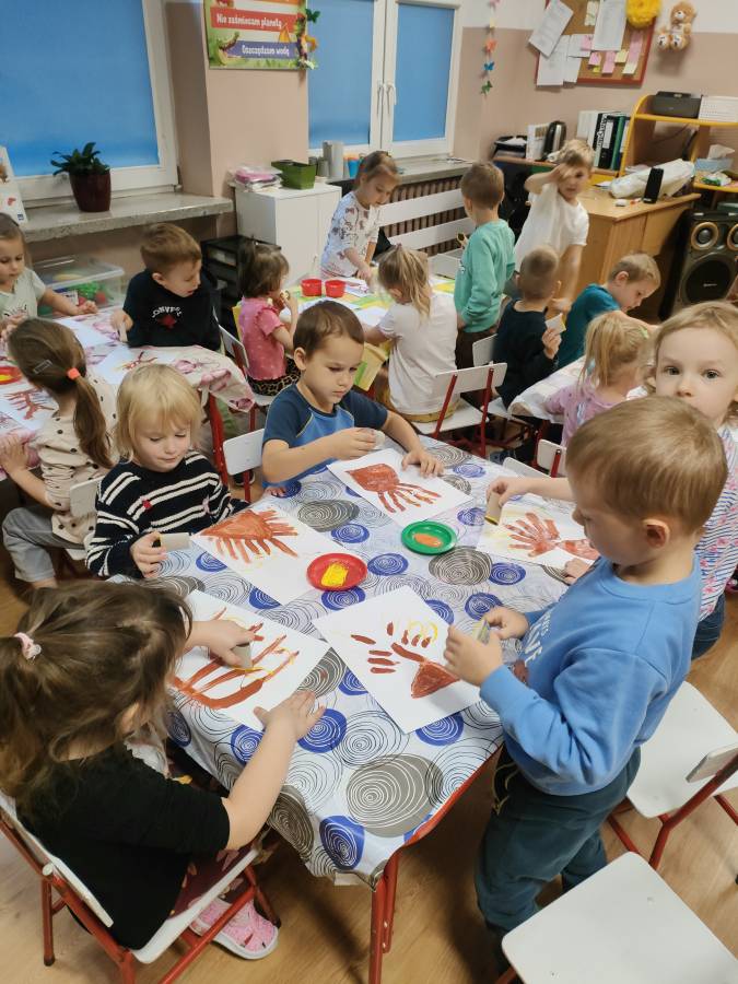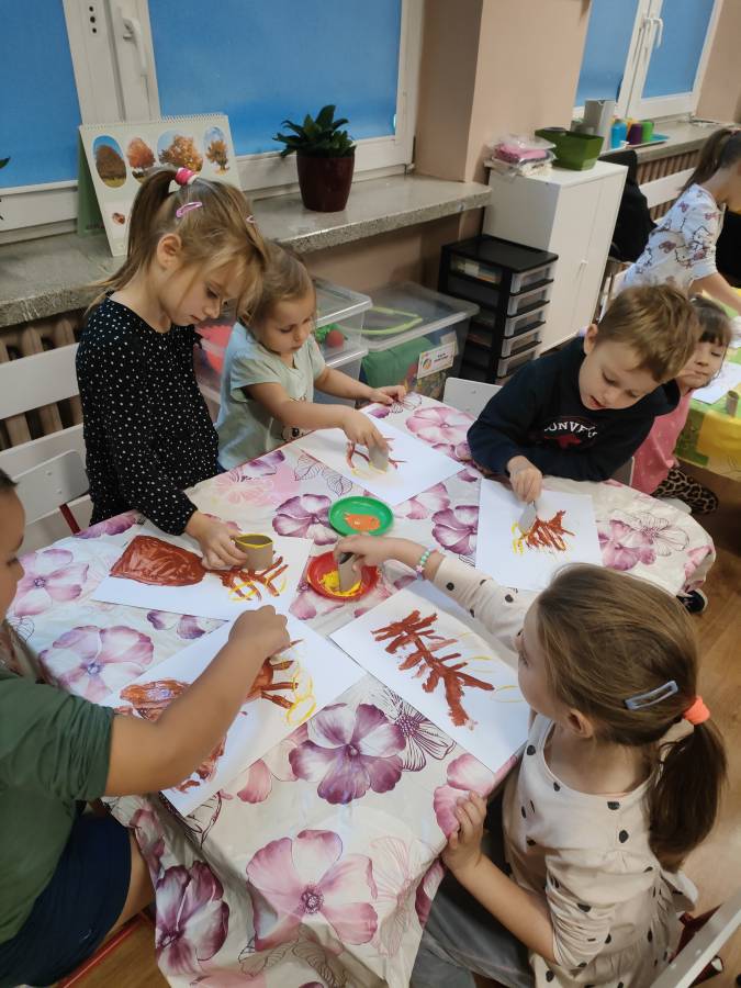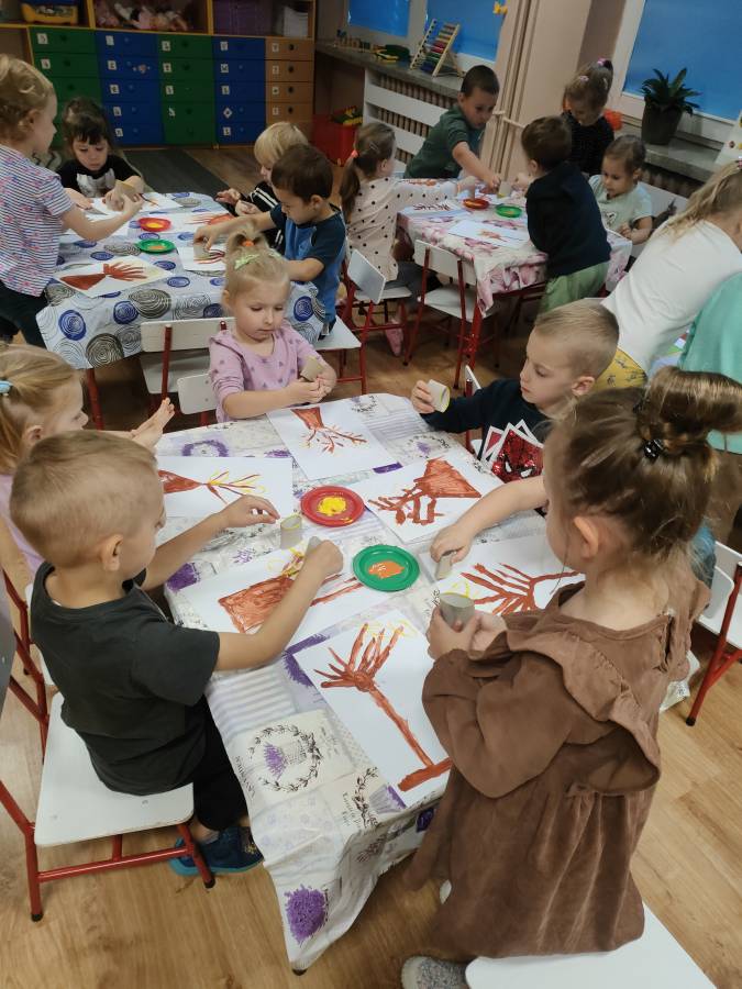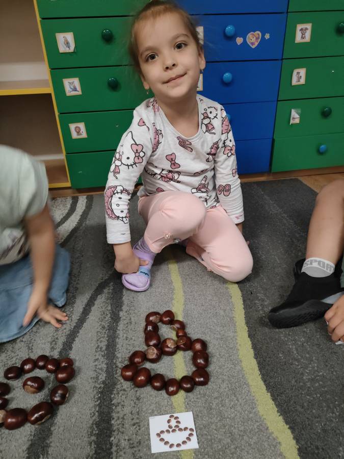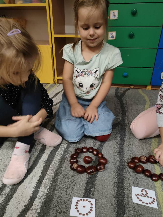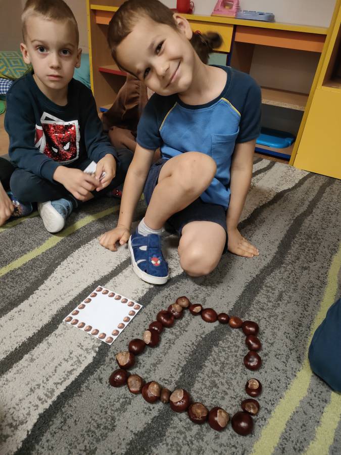 W grupie Motylki odbyły się pełne jesiennej atmosfery zajęcia. Dzieci układały kasztany według podanych wzorów, następnie wykonały własne jesienne drzewka oraz dopasowywały liście do ich kształtów.