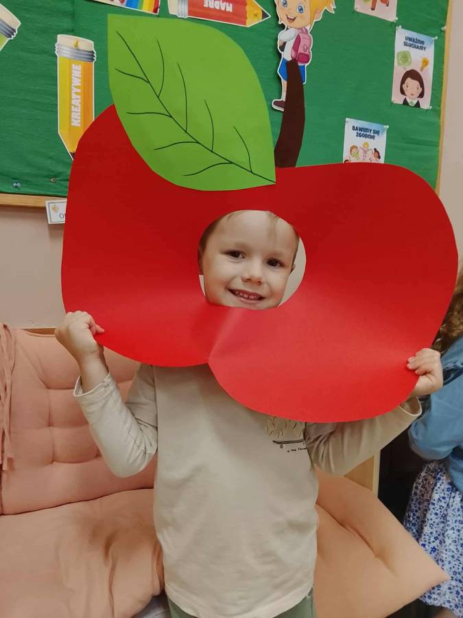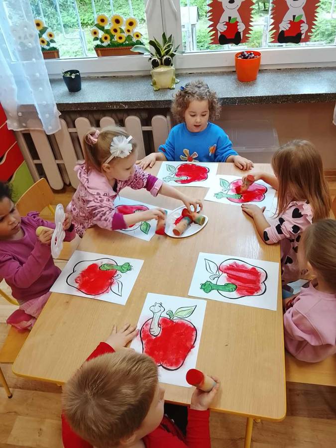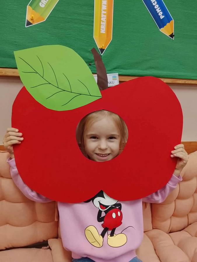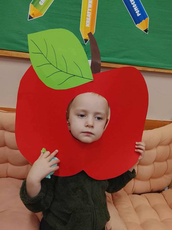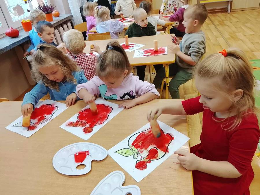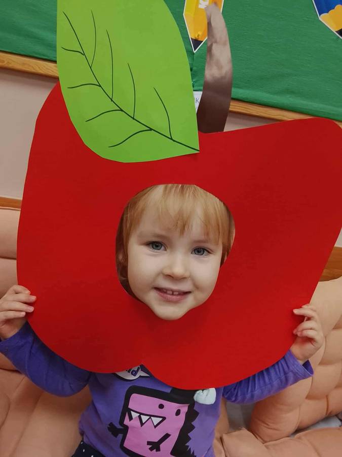 Dzień Jabłka w Kropeczkach wypełniony był jabłuszkowymi zajęciami. Tańczyliśmy jabłkowe piosenki, czytaliśmy jabłkowe wierszyki i wykonaliśmy malowane jabłuszka.