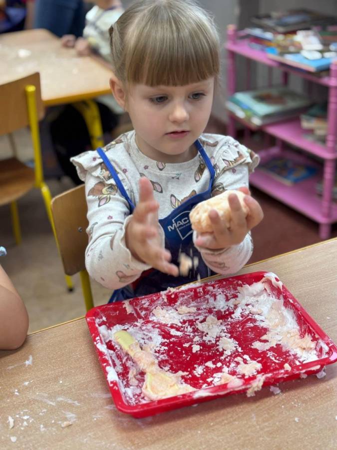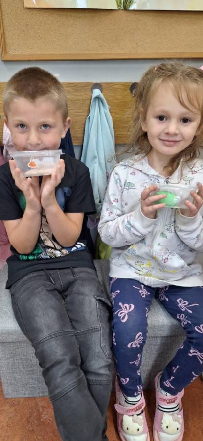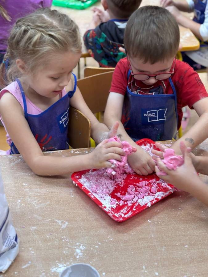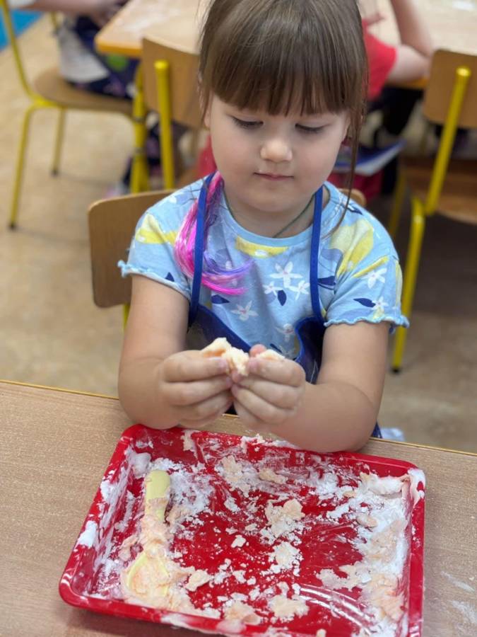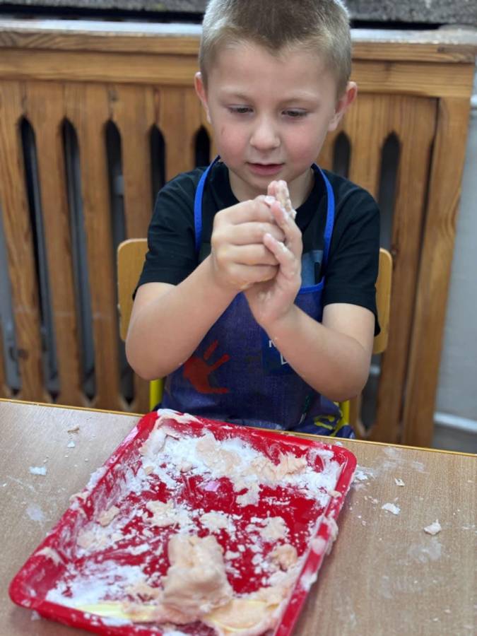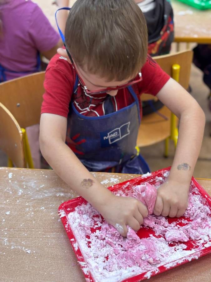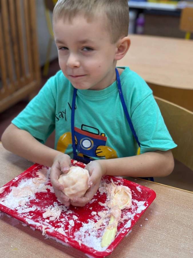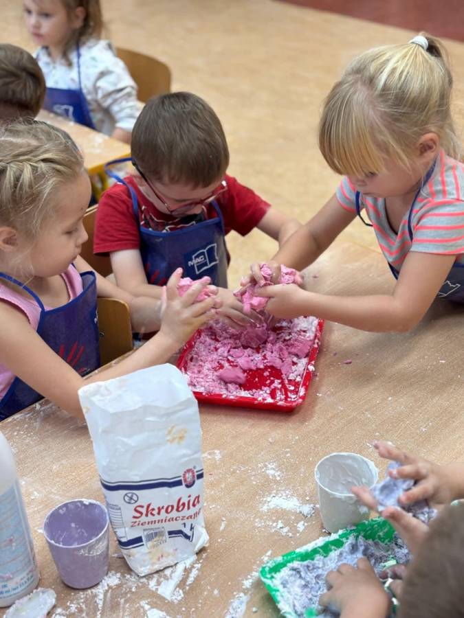 Wspólnie stworzyliśmy kolorową, pachnącą ciastolinę z odżywki, skrobi ziemniaczanej i barwników!  Kreatywność 100%, a bałagan 110%.