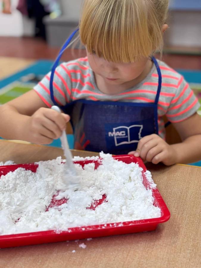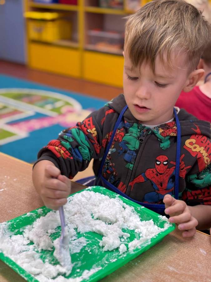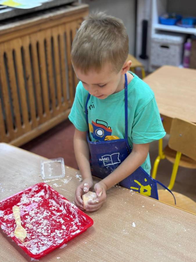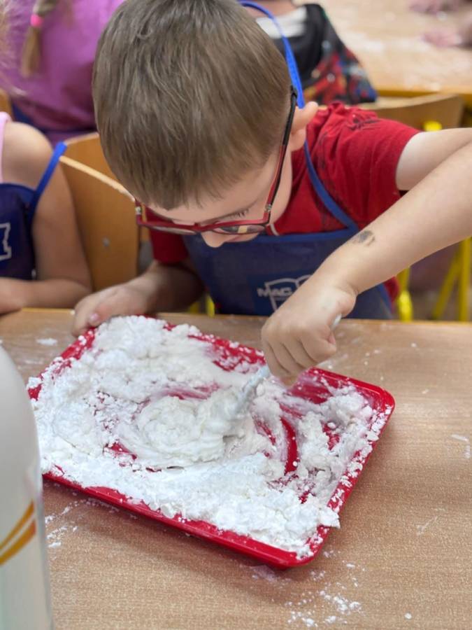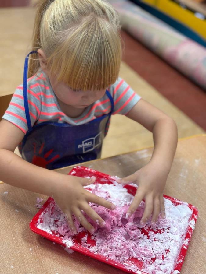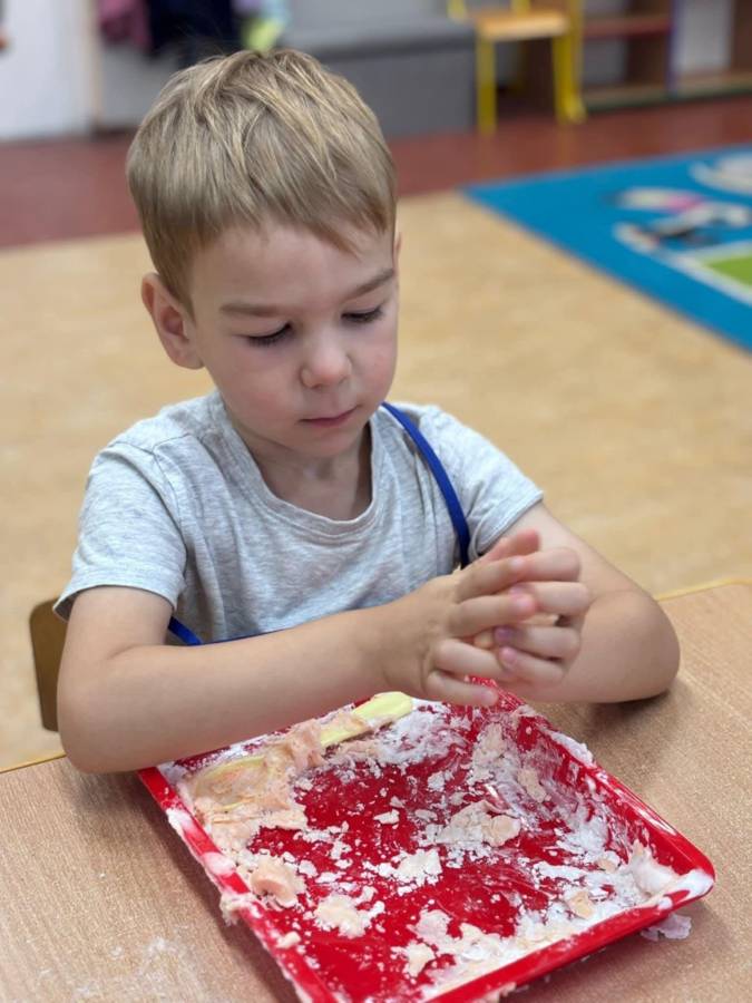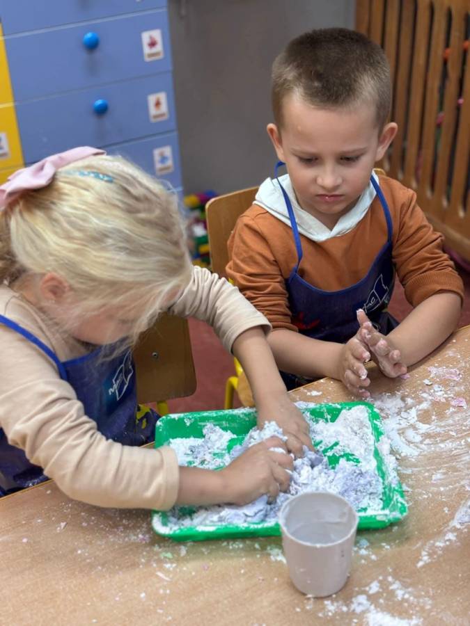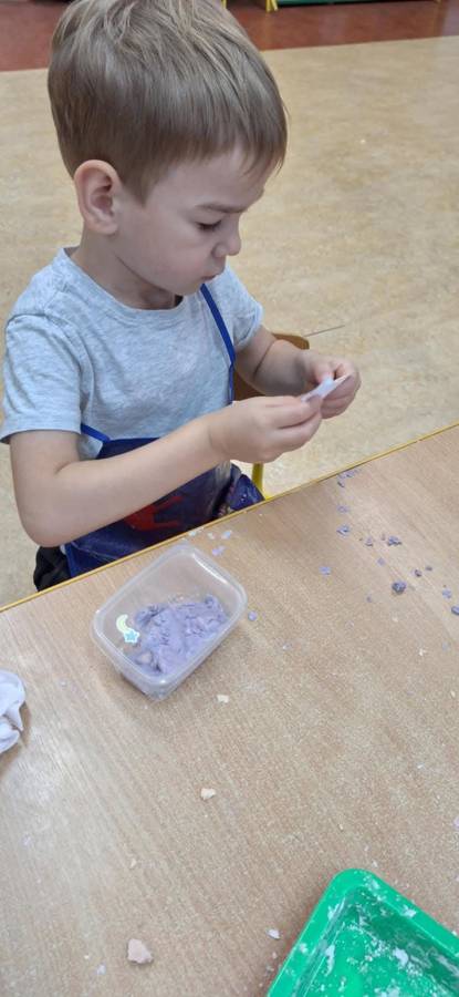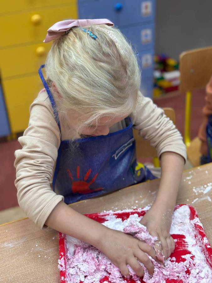 Wspólnie stworzyliśmy kolorową, pachnącą ciastolinę z odżywki, skrobi ziemniaczanej i barwników!  Kreatywność 100%, a bałagan 110%.