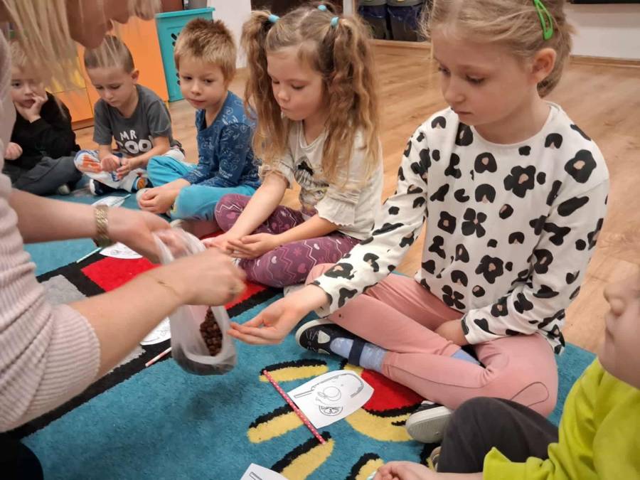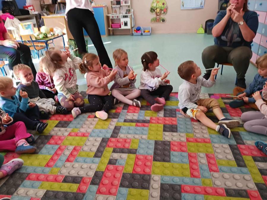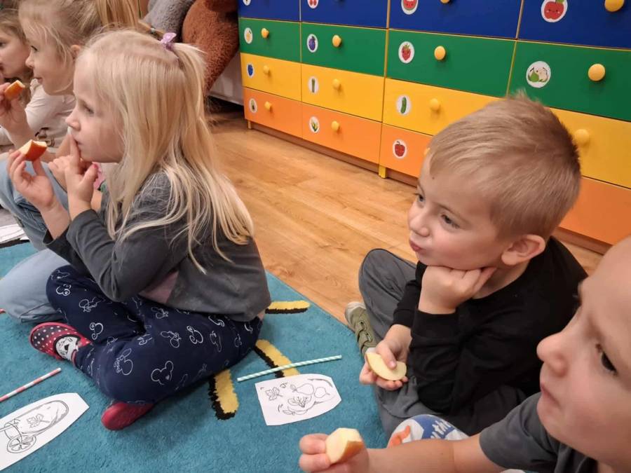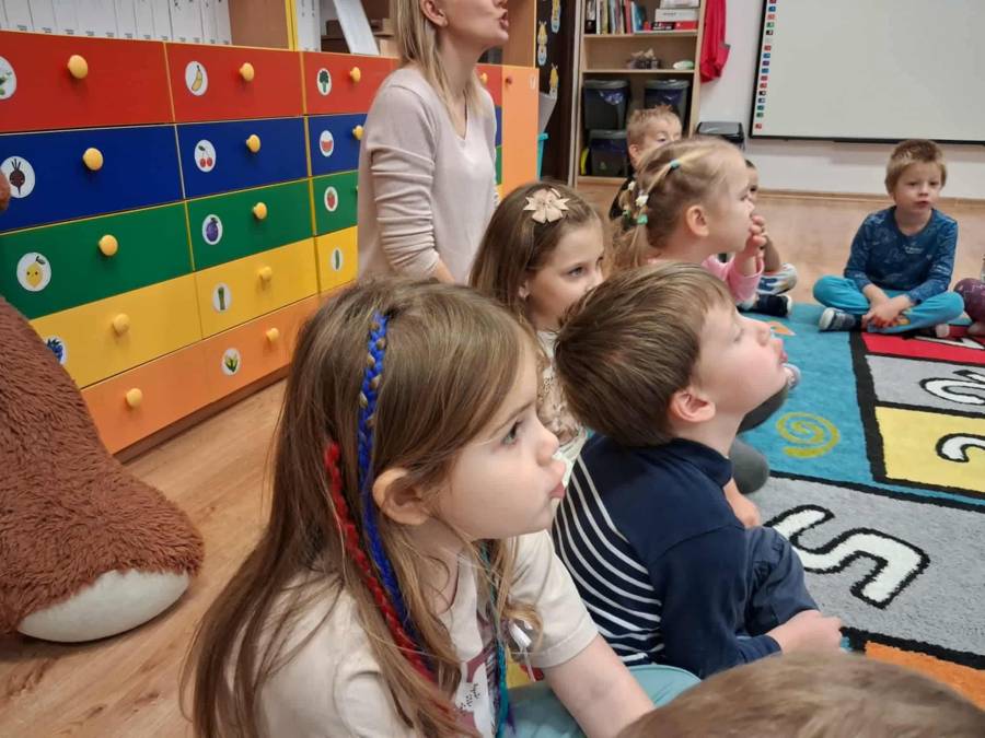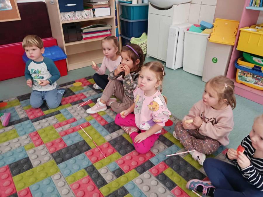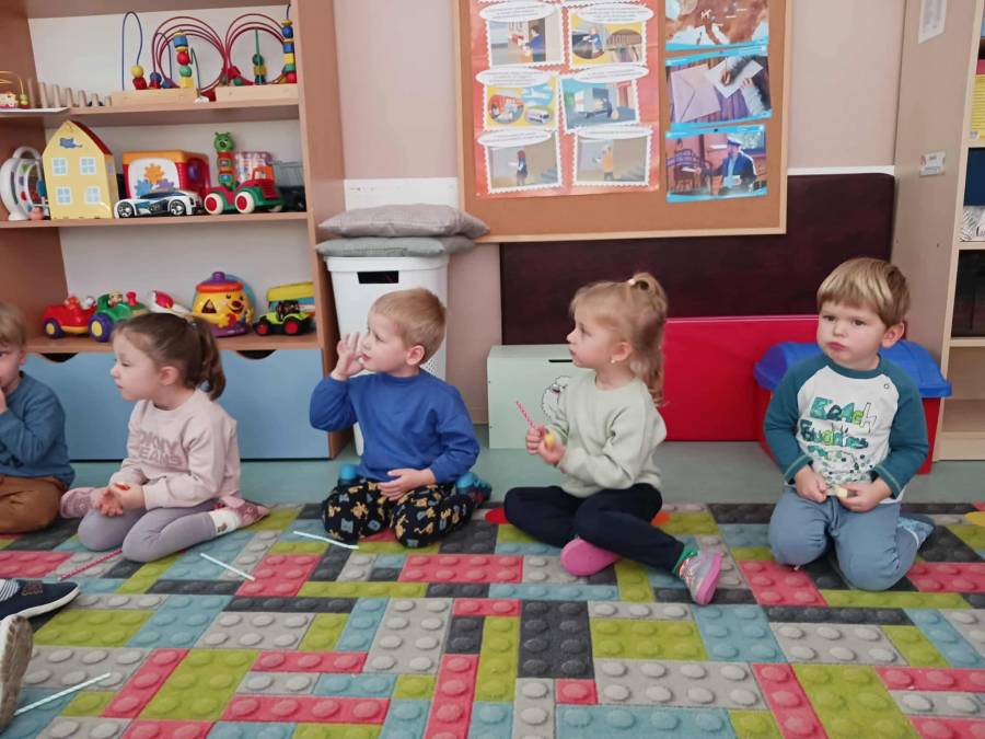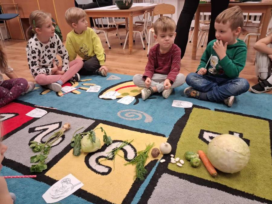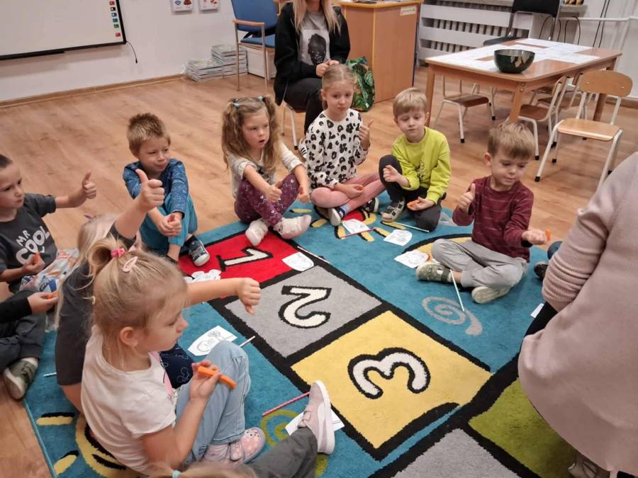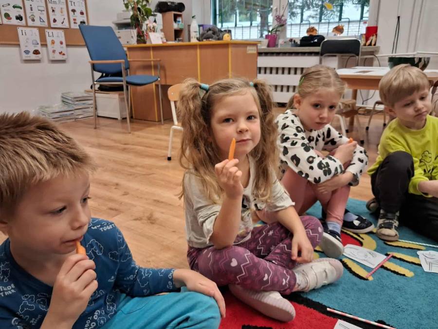 W grupach Ślimaczki i Pszczółki w naszym przedszkolu odbyły się wyjątkowe zajęcia w ramach Ogólnopolskiego Projektu Edukacyjnego Logopedyczny kalendarz świąt nietypowych. Podczas zajęć dzieci usprawniały aparat mowy oraz wzmacniały mięśnie całego ciała poprzez różnorodne ćwiczenia ruchowe i artykulacyjne. Następnie z wykorzystaniem słomek przedszkolaki wykonywały ćwiczenia oddechowe, które wspomagały naukę prawidłowej realizacji głosek, w tym głosek szumiących. Dzieci uczyły się również prawidłowo gryźć, żyć i chrupać. W dalszej części zajęć dzieci zostały zapoznane z twórczością Jana Brzechwy. W trakcie słuchania wiersza Na straganie przedszkolaki rozpoznawały warzywa.