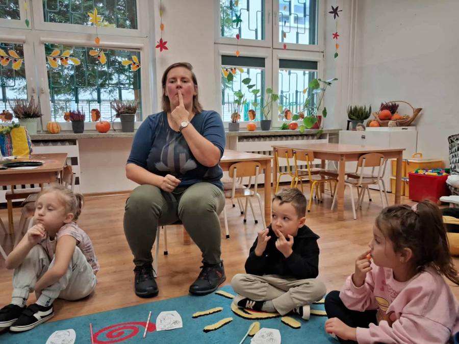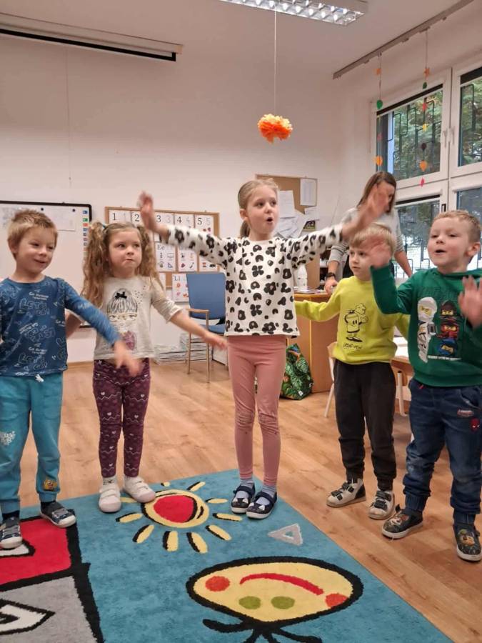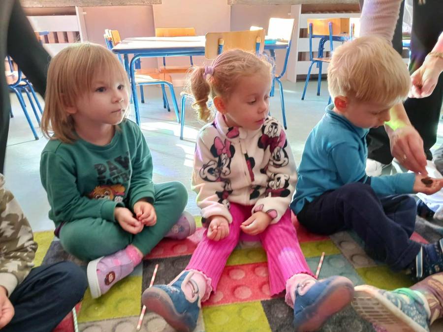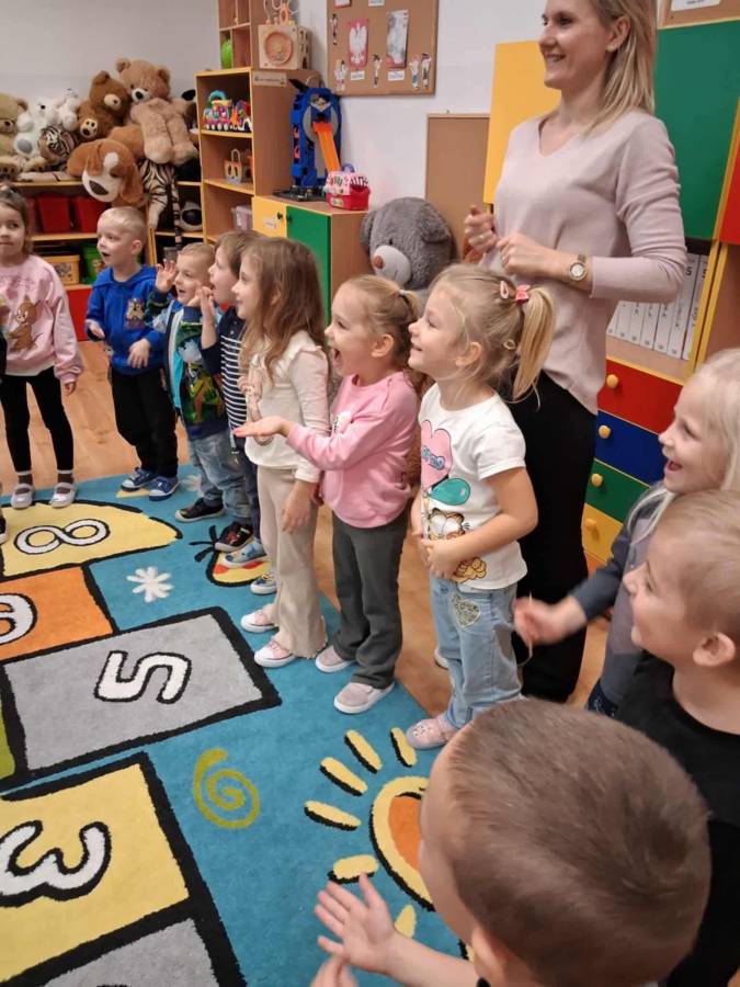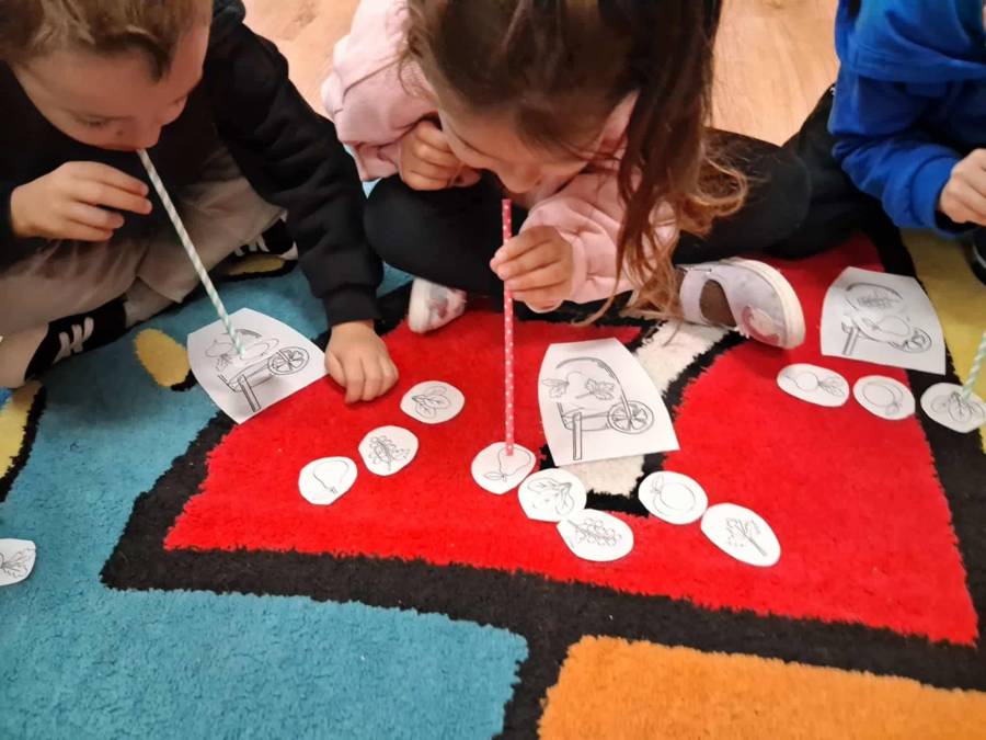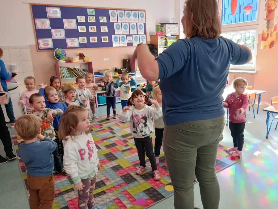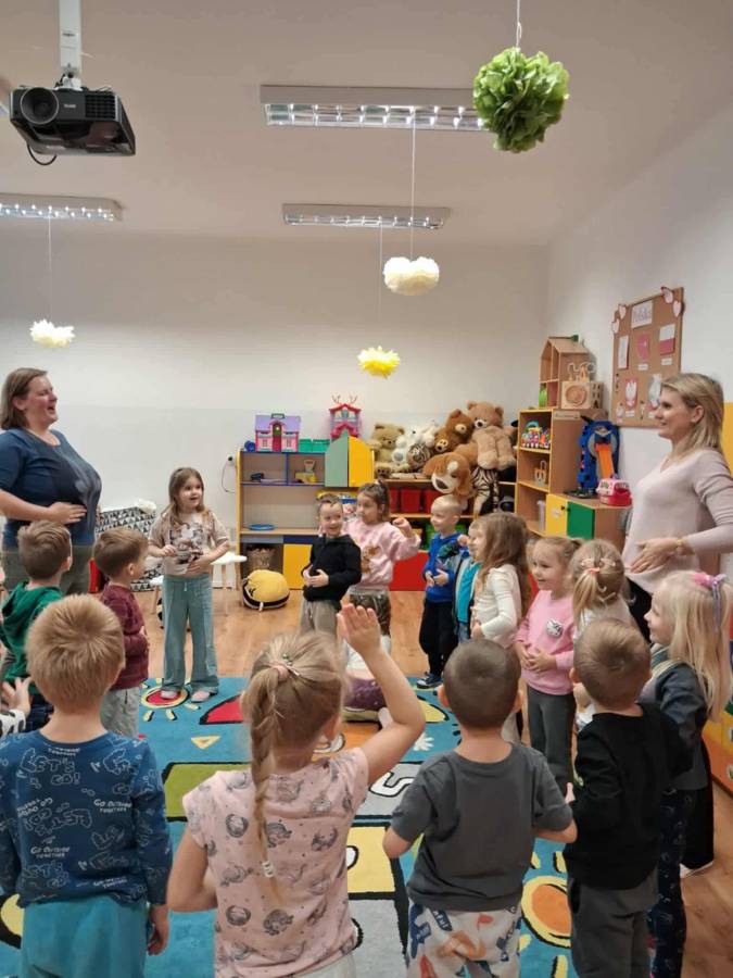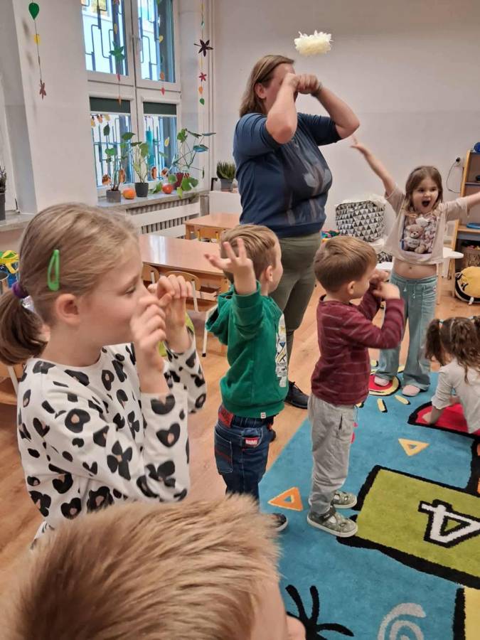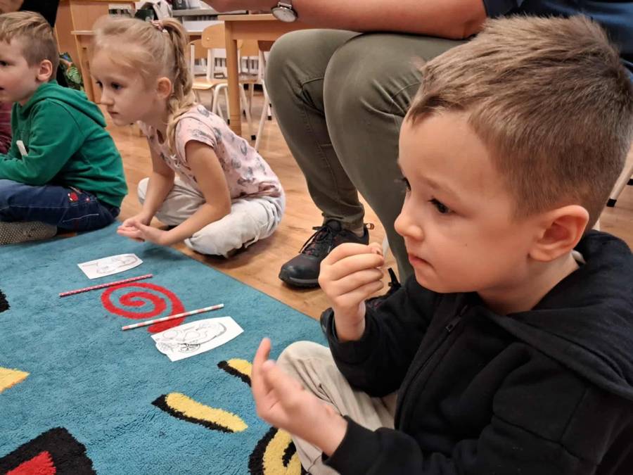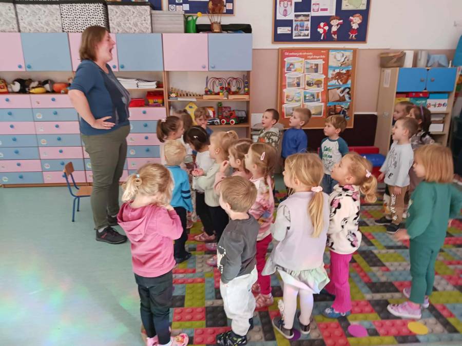 W grupach Ślimaczki i Pszczółki w naszym przedszkolu odbyły się wyjątkowe zajęcia w ramach Ogólnopolskiego Projektu Edukacyjnego Logopedyczny kalendarz świąt nietypowych. Podczas zajęć dzieci usprawniały aparat mowy oraz wzmacniały mięśnie całego ciała poprzez różnorodne ćwiczenia ruchowe i artykulacyjne. Następnie z wykorzystaniem słomek przedszkolaki wykonywały ćwiczenia oddechowe, które wspomagały naukę prawidłowej realizacji głosek, w tym głosek szumiących. Dzieci uczyły się również prawidłowo gryźć, żyć i chrupać. W dalszej części zajęć dzieci zostały zapoznane z twórczością Jana Brzechwy. W trakcie słuchania wiersza Na straganie przedszkolaki rozpoznawały warzywa.