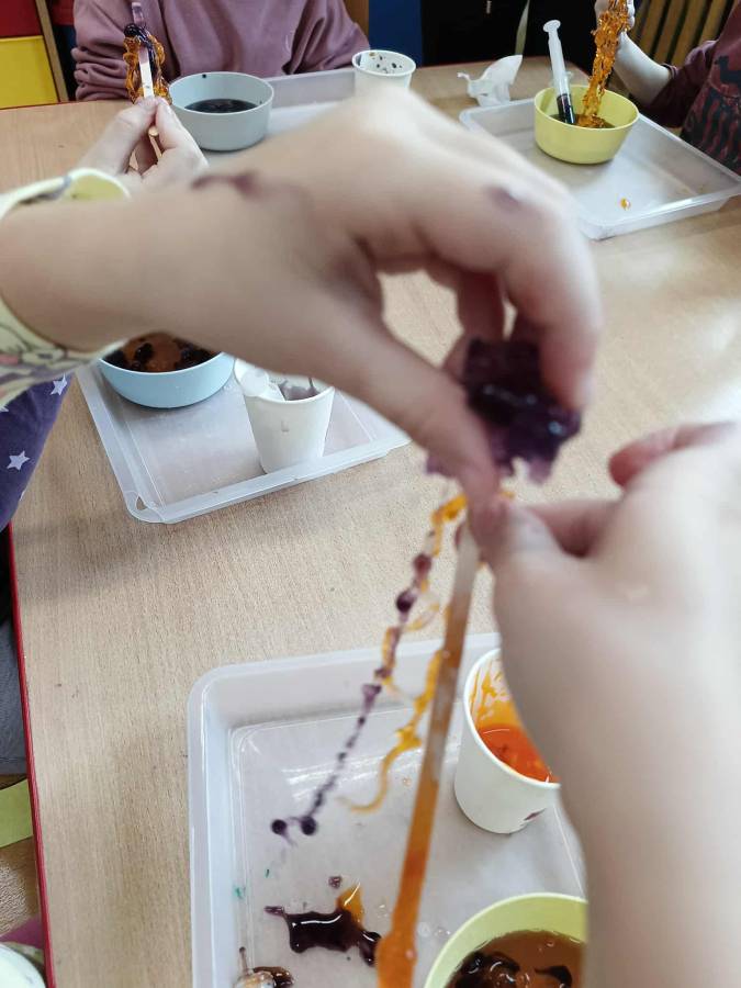 Wczoraj Kotki miały pierwsze spotkanie z EduAkcje. Były kolorowe eksperymenty i mnóstwo zabawy.