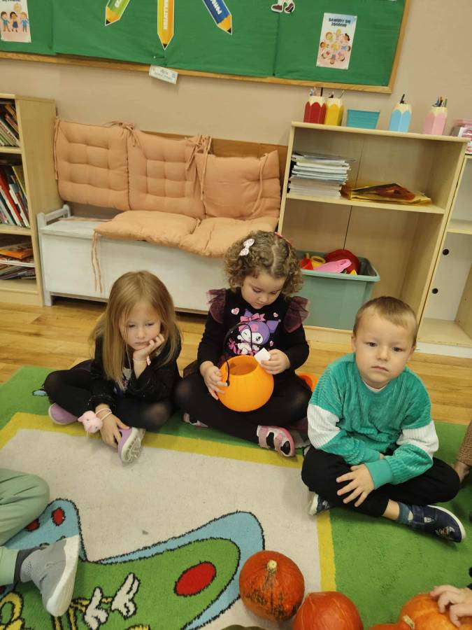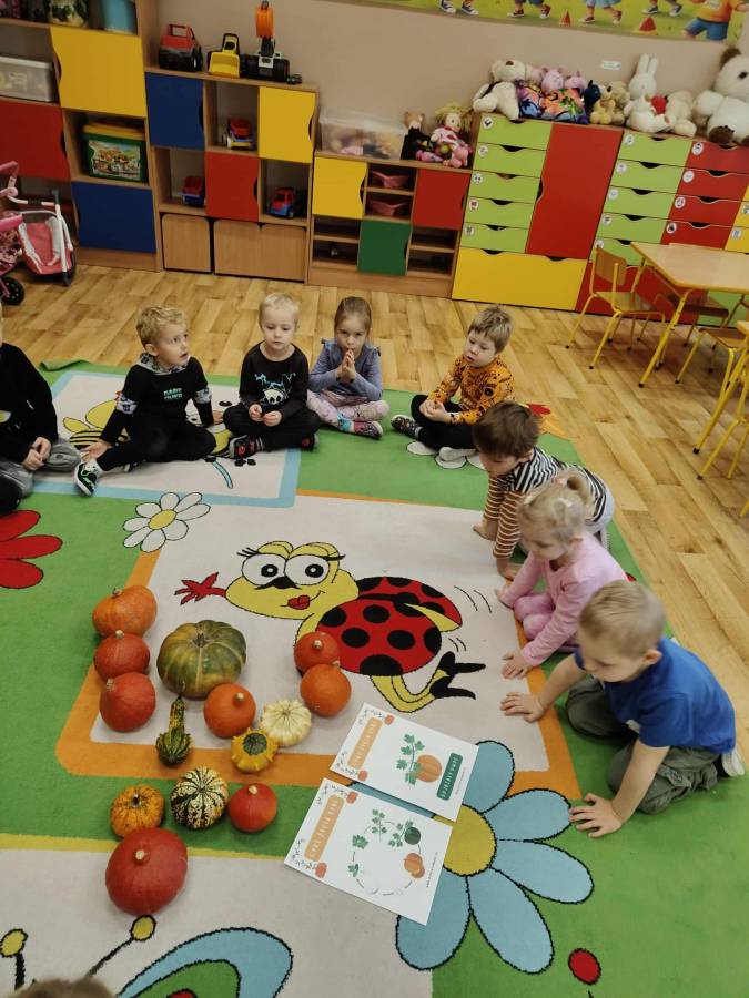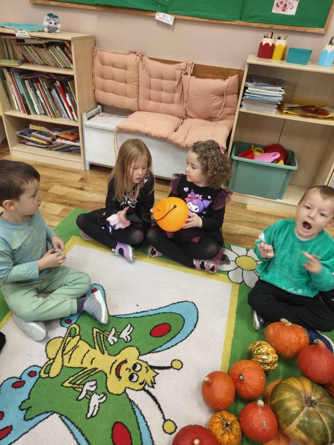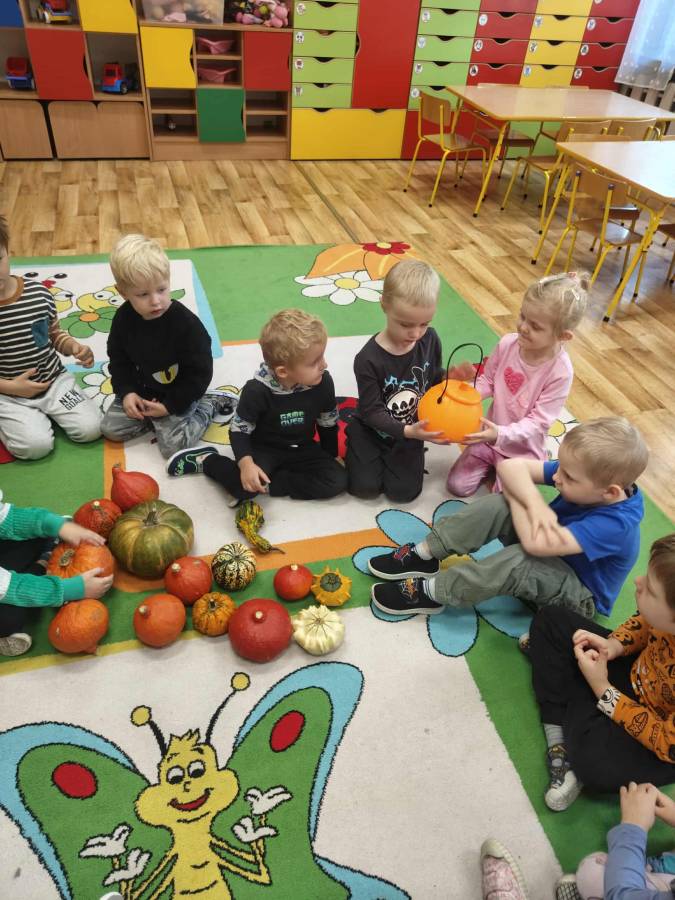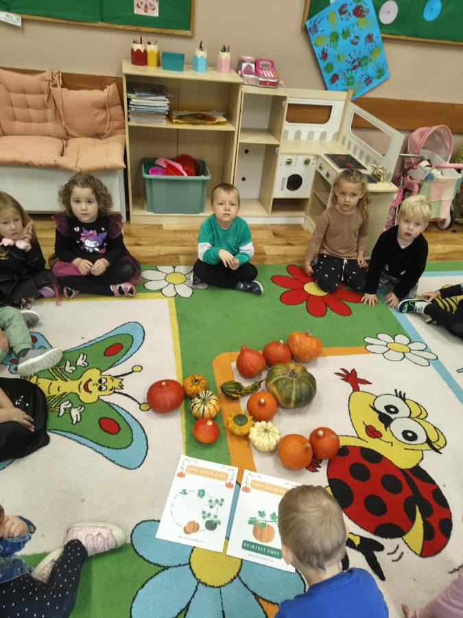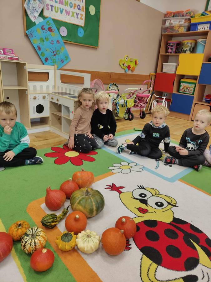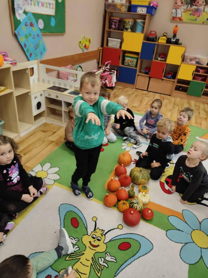 Kropeczki podczas Dnia Dyni poznały cykl życia dyni oraz potrawy jakie można z niej wykonać. Dowiedziały się także, że dynia może mieć różny kształt, kolor oraz wielkość. Podczas zabawy przy muzyce rozwiązywały zagadki i wykonywały różne zadania. Następnie stworzyły prace plastyczne oraz wzięły udział w dyniowej sesji fotograficznej.