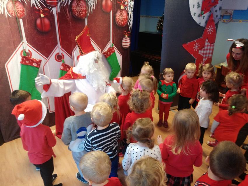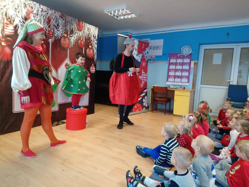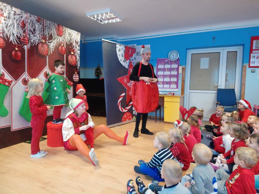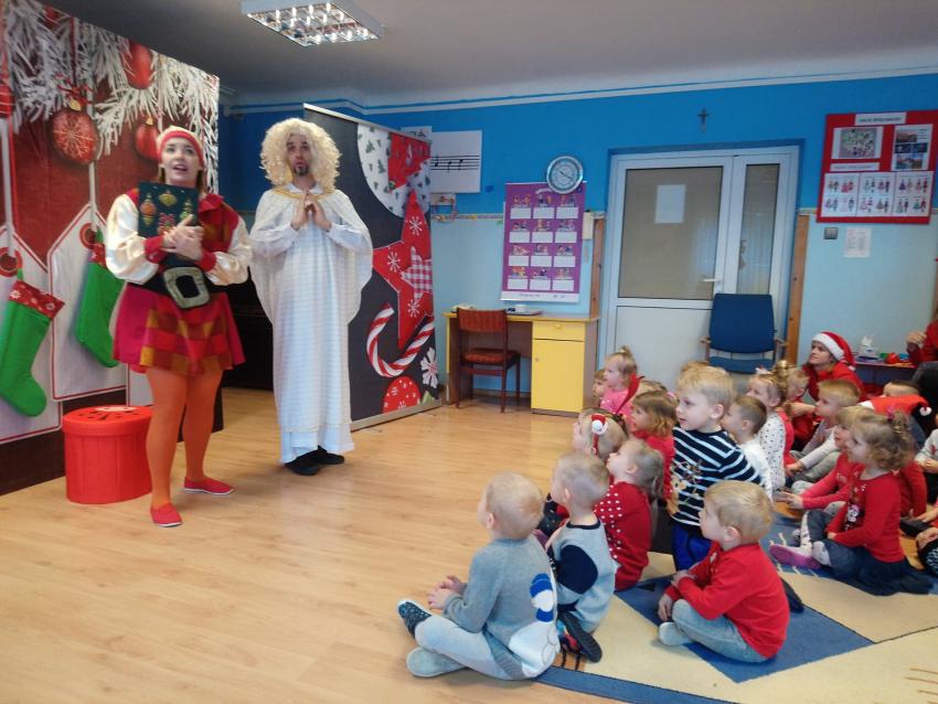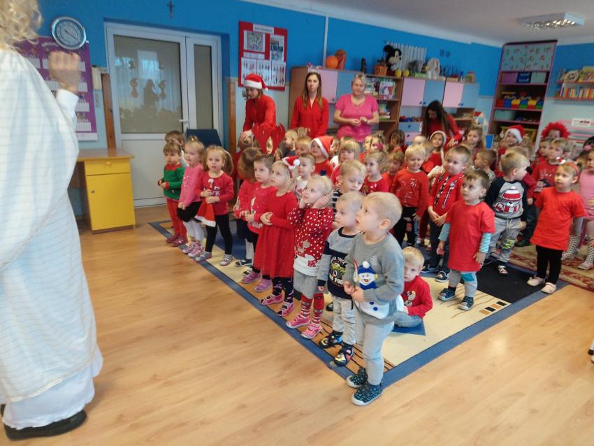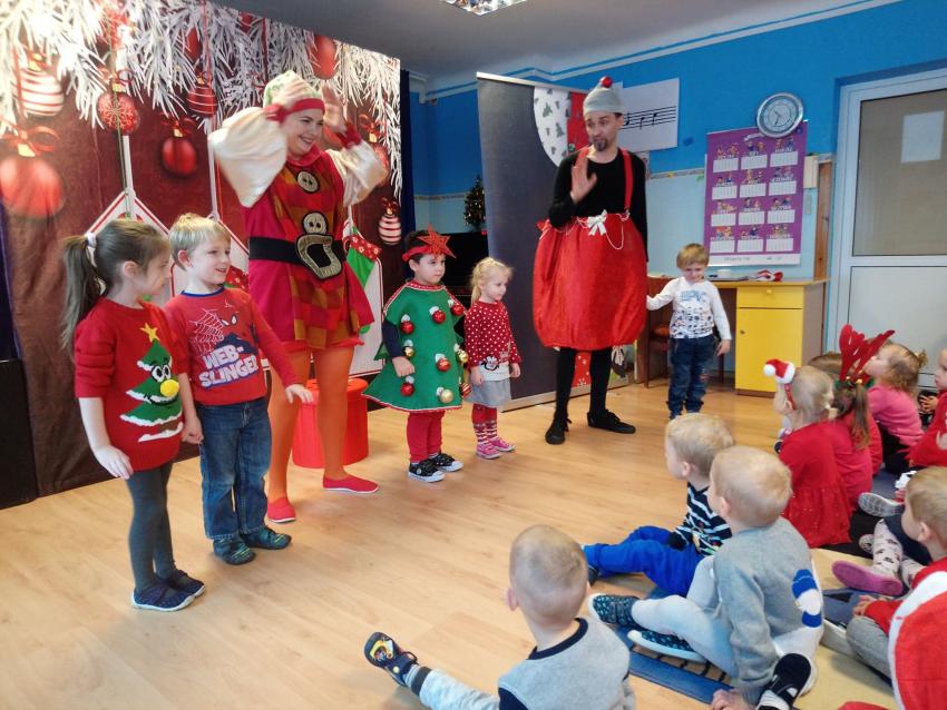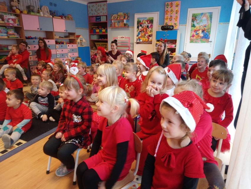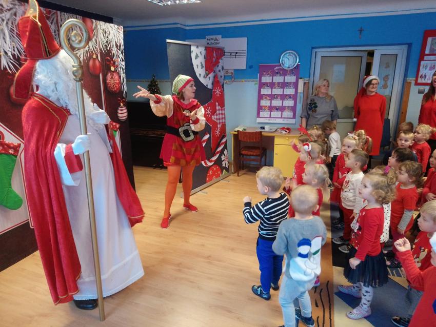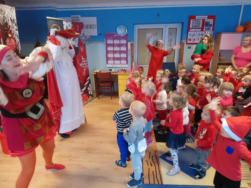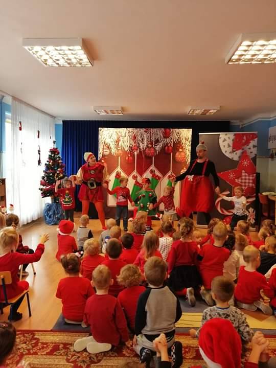 Do naszego przedszkola uczęszczają same grzeczne przedszkolaki! 6 grudnia mieliśmy ogromną  przyjemność obejrzeć spektakl teatralny pt. „Grajka Mikołajka” w wykonaniu teatru TAK. Długo oczekiwany gość – Święty Mikołaj wywołał uśmiech na twarzach przedszkolaków. Nasze dzieci wyglądały jak małe Mikołaje, ponieważ wszystkie ubrane były wyjątkowo – „mikołajkowo”. Miło spędzony czas uświetniły wspólne zdjęcia oraz prezenty, na które każdy przedszkolak czekał z utęsknieniem. Dzieci z radością zaprosiły Świętego Mikołaja za rok, obiecując, że czekając na niego będą bardzo grzeczne.