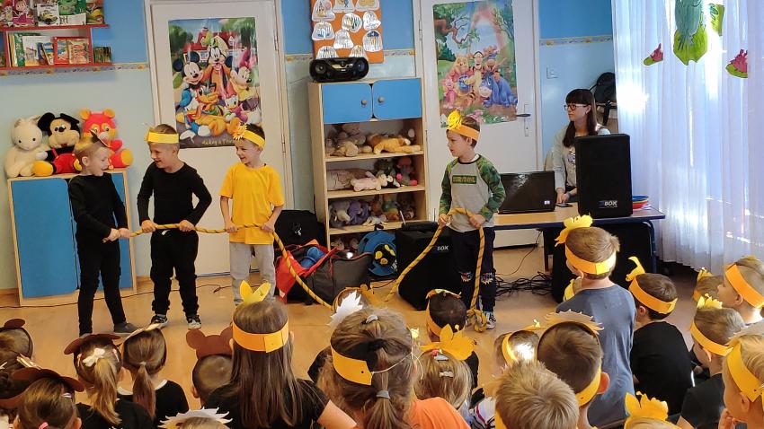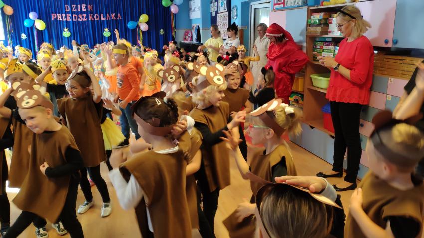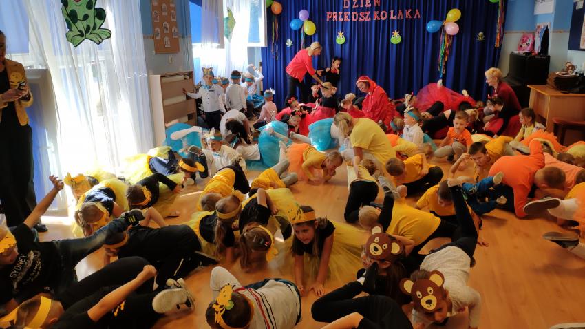 W piątek 20 września obchodziliśmy niezwykłe święto - dzień przedszkolaka. Był to dzień pełen radości dla wszystkich dzieci. Z okazji tej w naszym przedszkolu został zorganizowany BAL PRZEDSZKOLAKA, który został poprowadzony przez animatorów. Każda grupa przygotowała się do udziału w balu poprzez ubranie przepięknych grupowych strojów. Podczas balu wszystkie przedszkolaki świetnie się bawiły przy znanych i lubianych hitach muzyki popularnej. Wspólnych tańców nie było końca. Animatorzy przeprowadzili także parę zabaw, które jak najbardziej przypadły do gustu dzieciom. Było bardzo kolorowo i wesoło. Zapraszamy do obejrzenia zdjęć