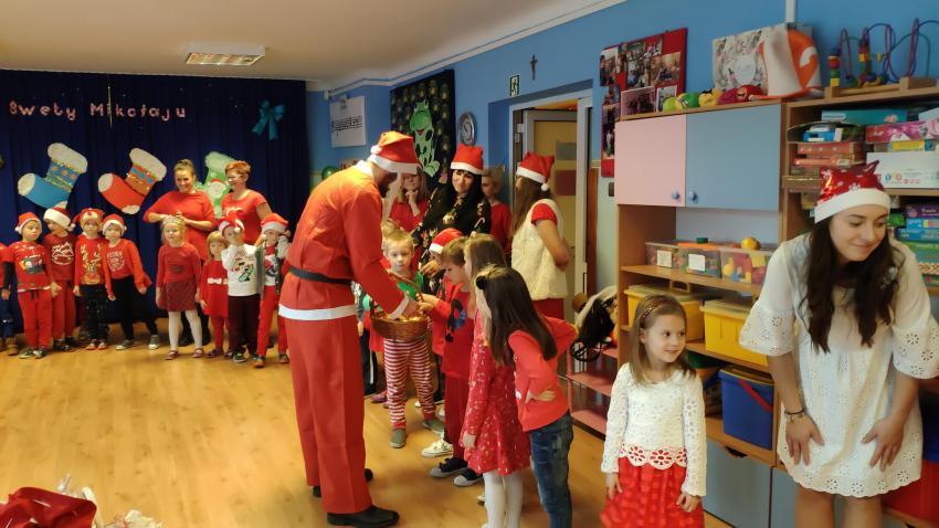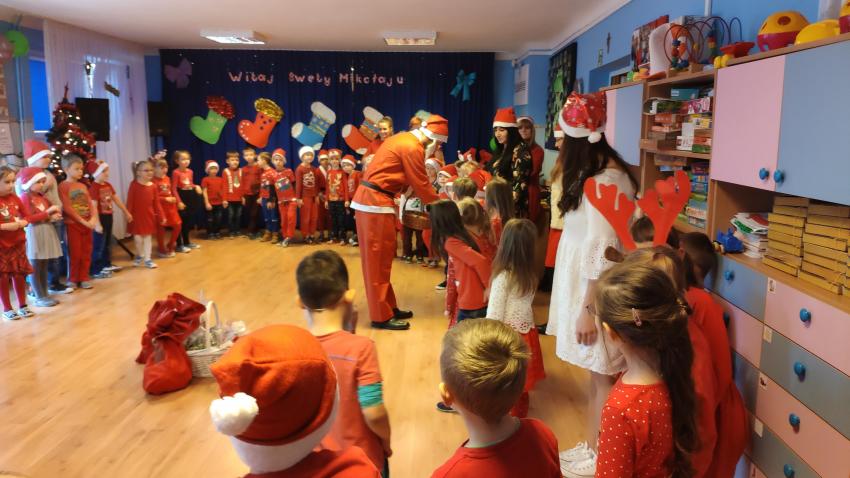 Dnia 6 grudnia 2019 roku w naszym przedszkolu odbyła się impreza mikołajkowa. Tego dnia Mikołaj odwiedził wszystkie dzieci przebywające w naszej placówce. Głównym celem mikołajek była integracja uczniów poprzez wspólne gry, zabawy, śpiewanie piosenek i konkursy oraz dostarczenie dzieciom radości poprzez obdarowanie ich prezentami.