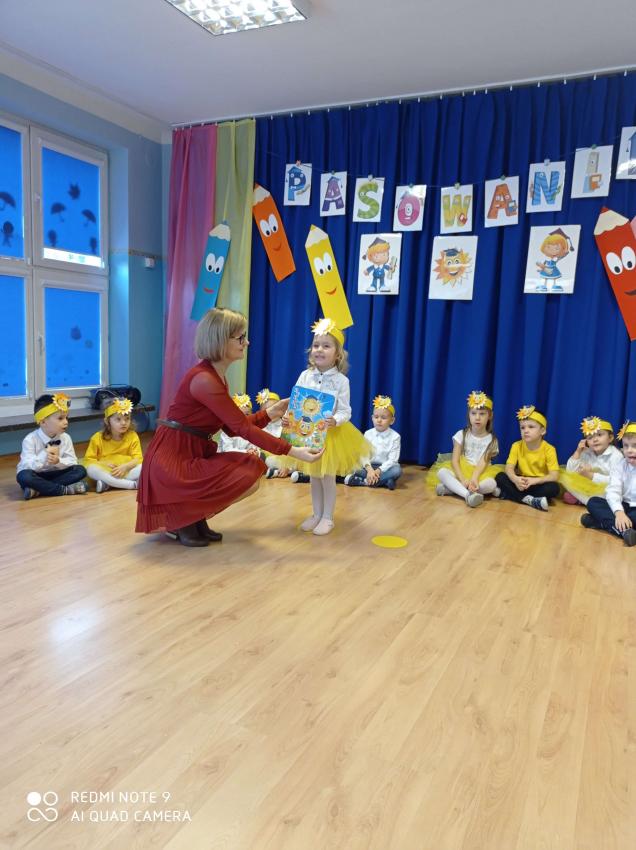"Pasowanie na przedszkolaka" w naszej grupie odbyło się 19.11.2020r. (czwartek), to pierwsza wyjątkowa uroczystość w życiu dzieci, które we wrześniu tego roku po raz pierwszy rozpoczęły swoją przygodę z przedszkolem. Dla najmłodszych było to ogromne przeżycie, ale trzymały się bardzo dzielnie. Z uśmiechami na twarzach recytowały wierszyki i śpiewały piosenki . Pani Dyrektor za pomocą „czarodziejskiego ołówka" dokonała uroczystego „Aktu pasowania". Nie zabrakło życzeń, dzieci otrzymały dyplomy . Uwieńczeniem uroczystości był pyszny tort. Na pewno był to niezapomniany dzień, pełen emocji i miłych wrażeń zarówno dla dzieci, jak i dla nas.