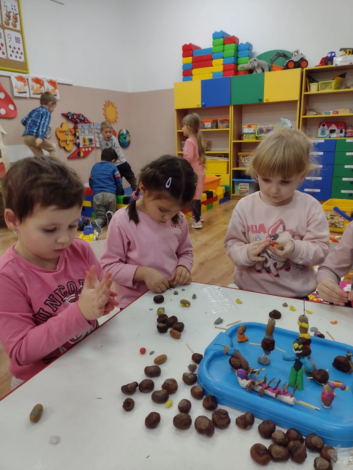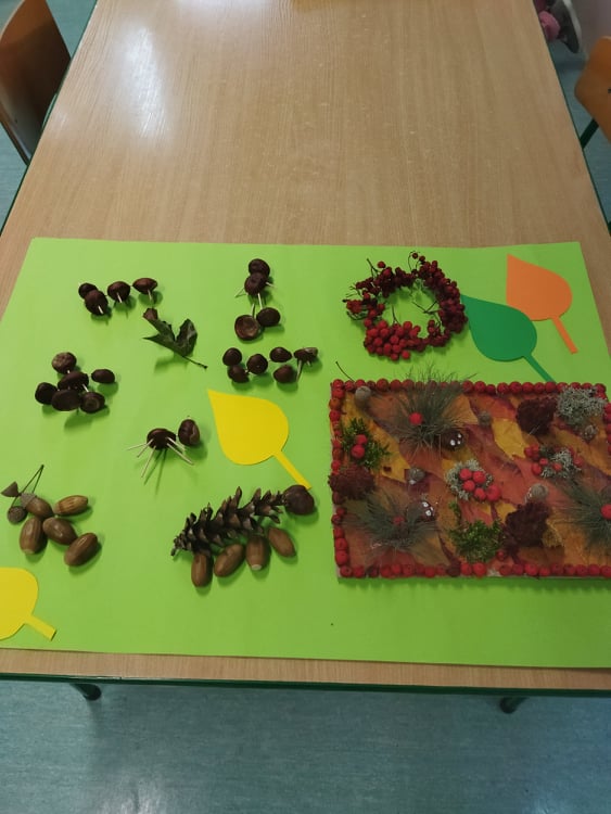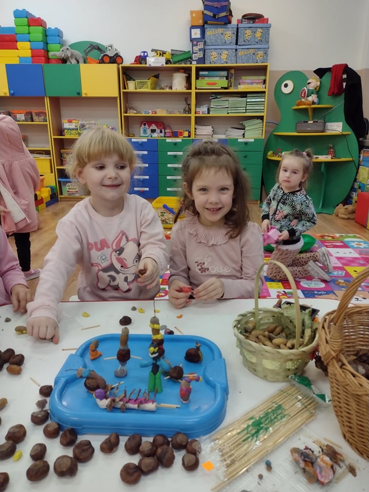 - grupa II i III wykonały zadanie „Kasztanowy zawrót głowy”- ludziki z kasztanów, żołędzi i jarzębiny;
