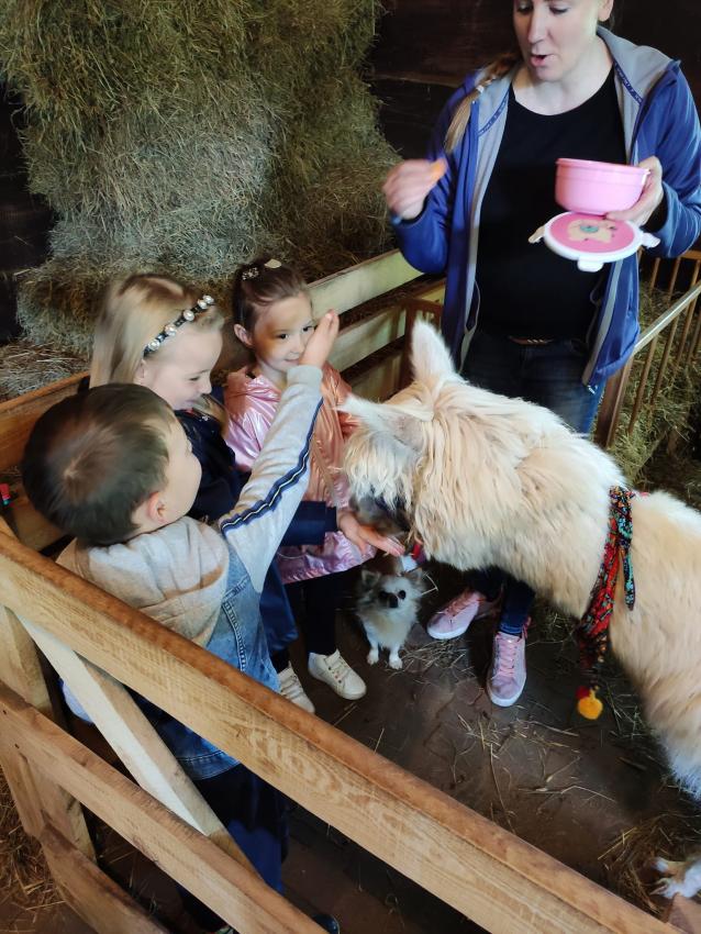 Grupa VI - Zajączki uczciła to najważniejsze dla wszystkich dzieci święto wycieczką do ZAGRODY "ALE HECA" w Jedlni Letnisko. Dzieci poznały tam dwie, cudowne alpaki - Przebojowego głodomora Ferdynanda i skromnego, kochanego Rysia, które mogły pogłaskać i narakmić smakołykami. Skorzystały także z relaksujących hamaków i samodzielnie usmażyły kiełbaski na ognisku. Wszystkiego Najlepszego Zajączki, bądźcie zawsze tak cudownymi dzieciakami, jak jesteście dziś!