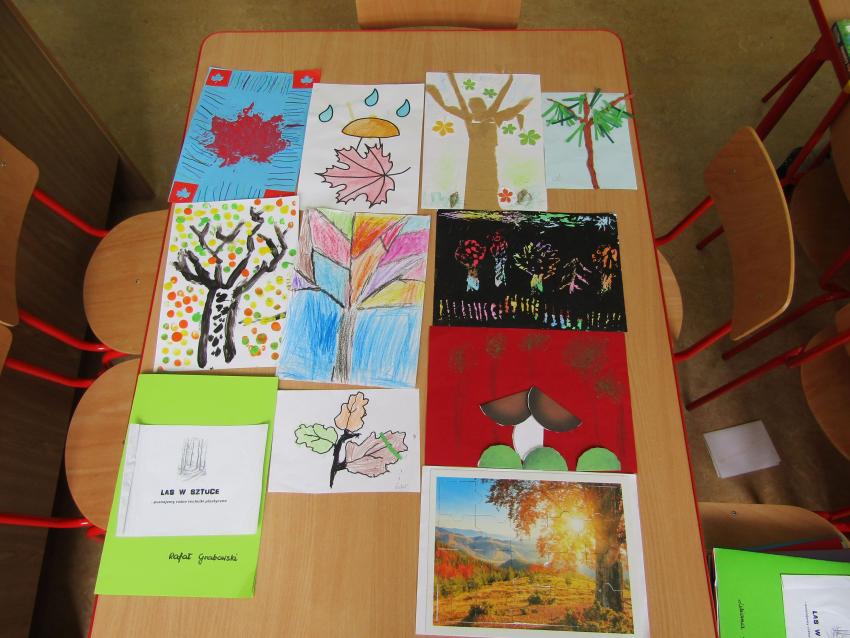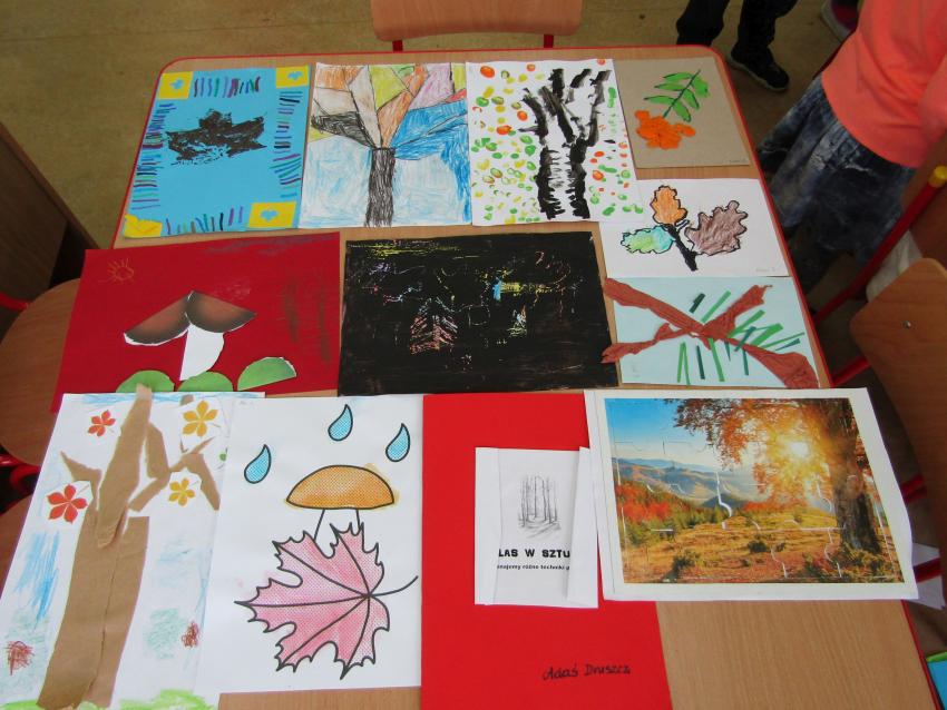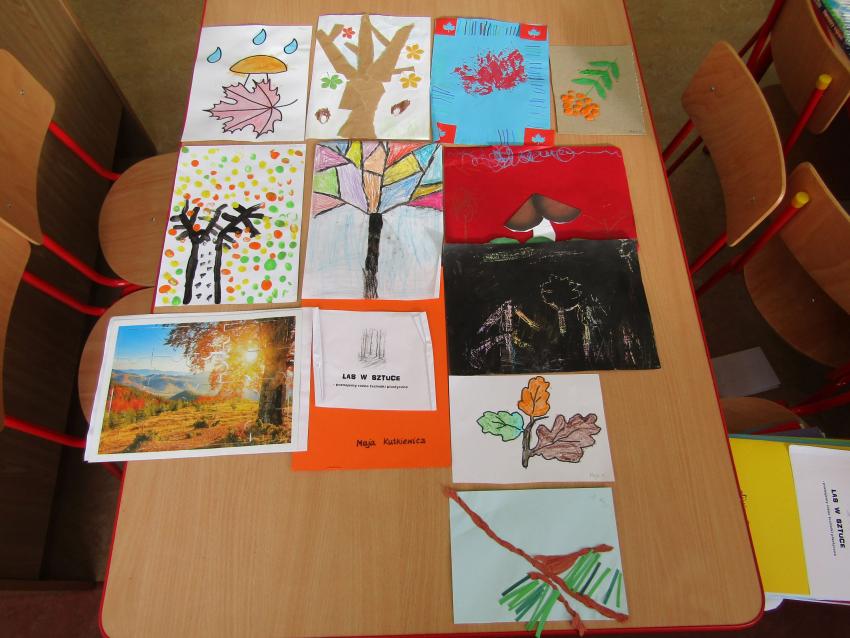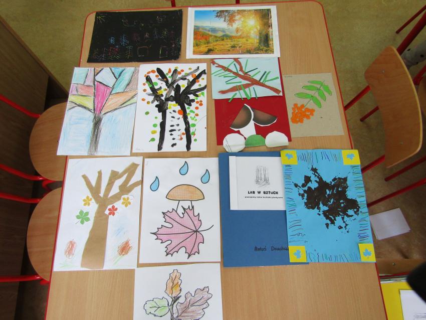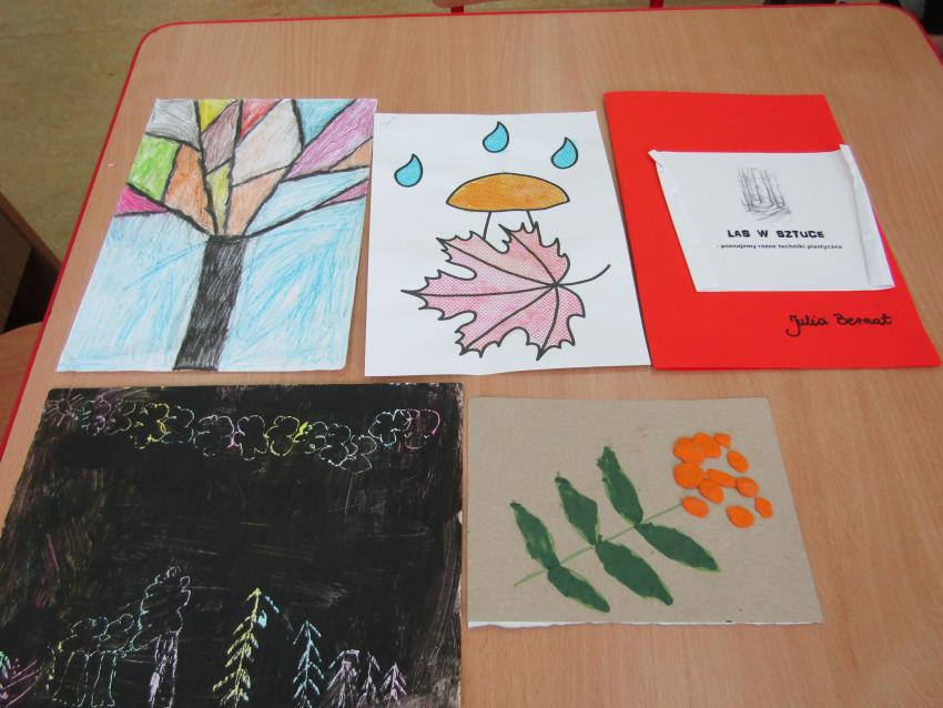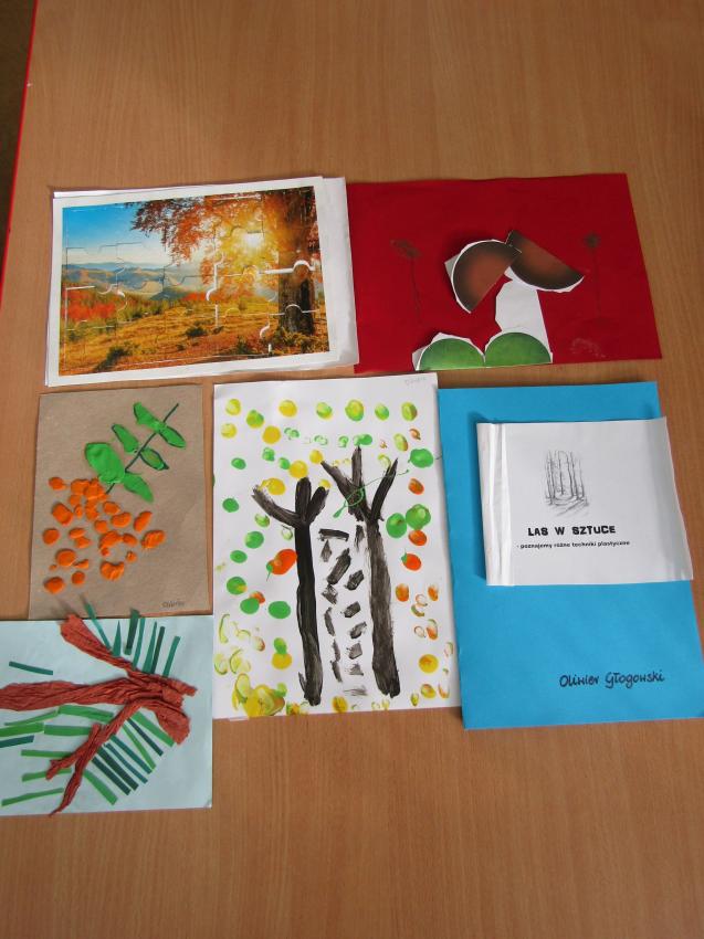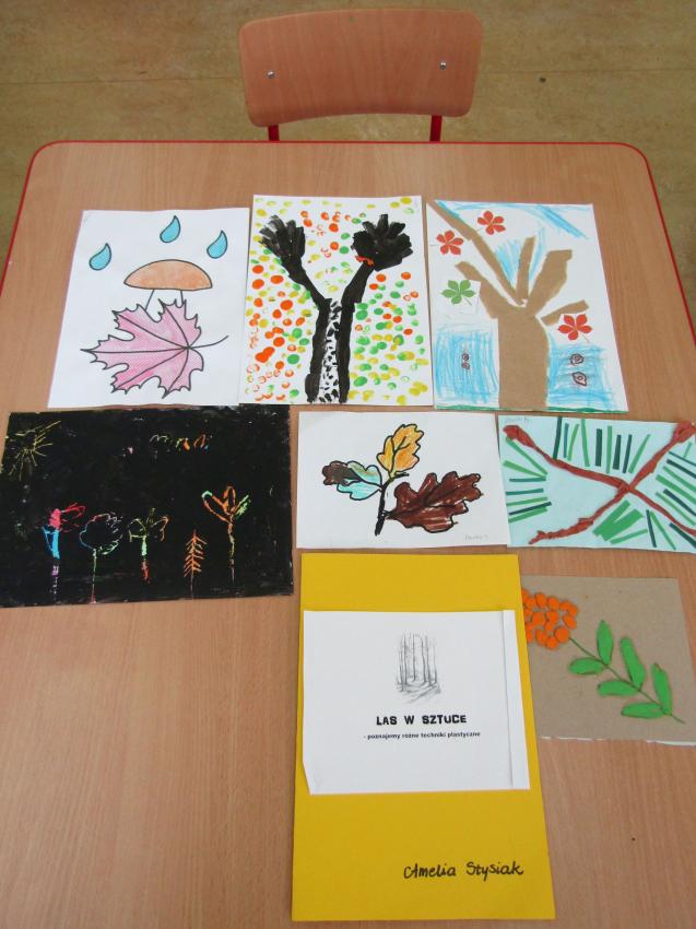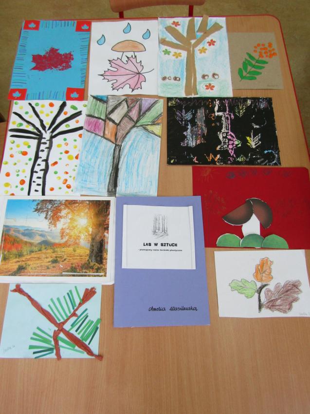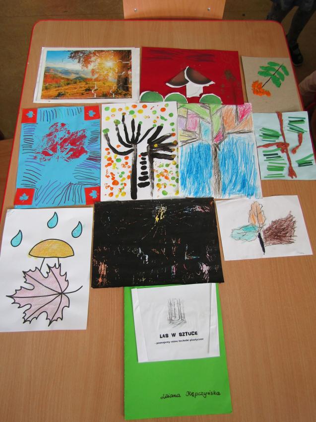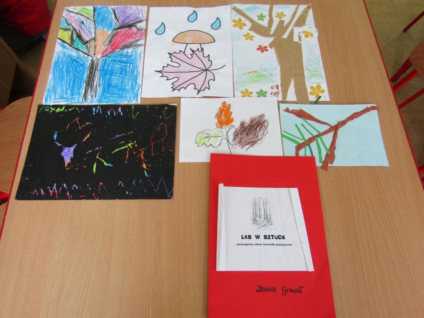 W ramach realizacji projektu "W zaczarowanym świecie drzew" wspólnie z dziećmi postanowiliśmy stworzyć indywidualne albumy z pracami plastycznymi pt. "Las w sztuce". Była to doskonała okazja do sprawdzenia się w nowych technikach plastycznych, a przy tym wspaniała zabawa. Na chwilę poczuliśmy się prawdziwymi artystami.