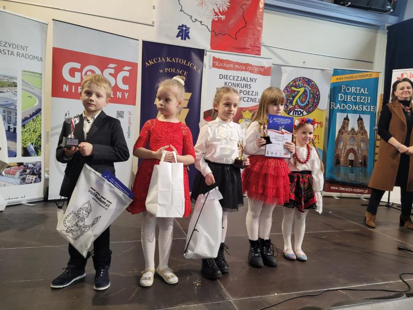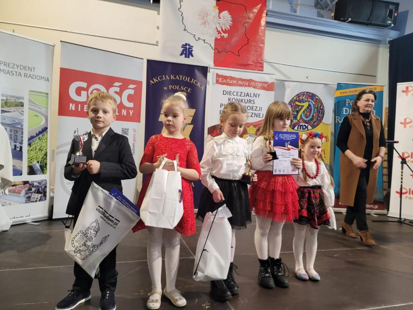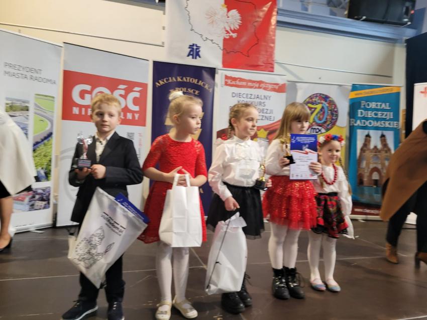 Dzieci, które zajęły pierwsze miejsca przeszły do etapu diecezjalnego konkursu .