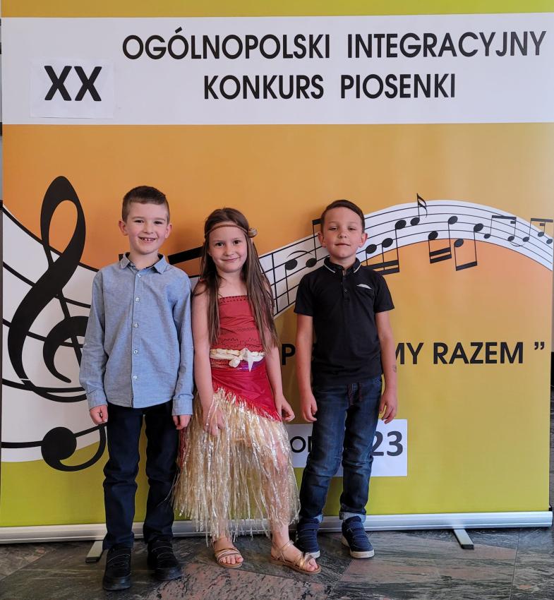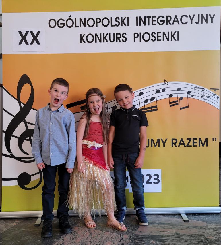 Gosia Krupa, Franek Kowal i Wojtek Rembowski z grupy Zajączki reprezentowali nasze Przedszkole, śpiewając piosenki: "Pół kroku stąd", "Nie bój się chcieć" i "Otulankę"