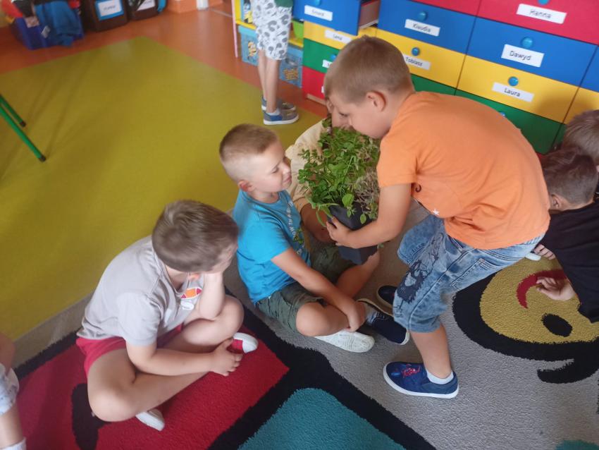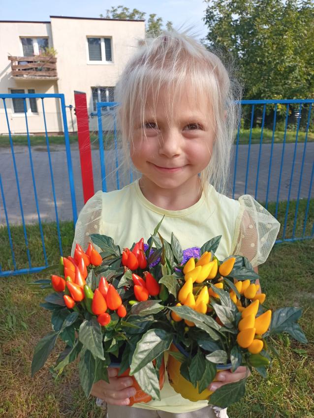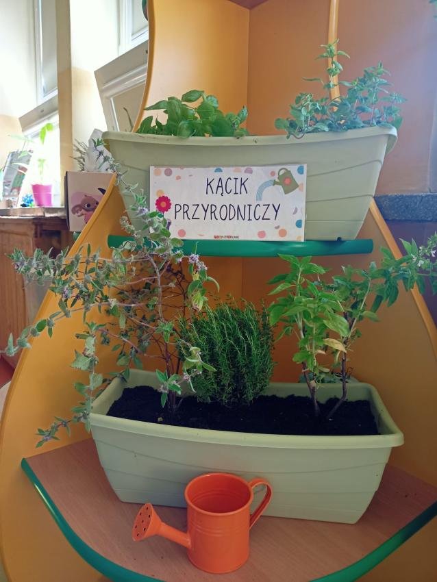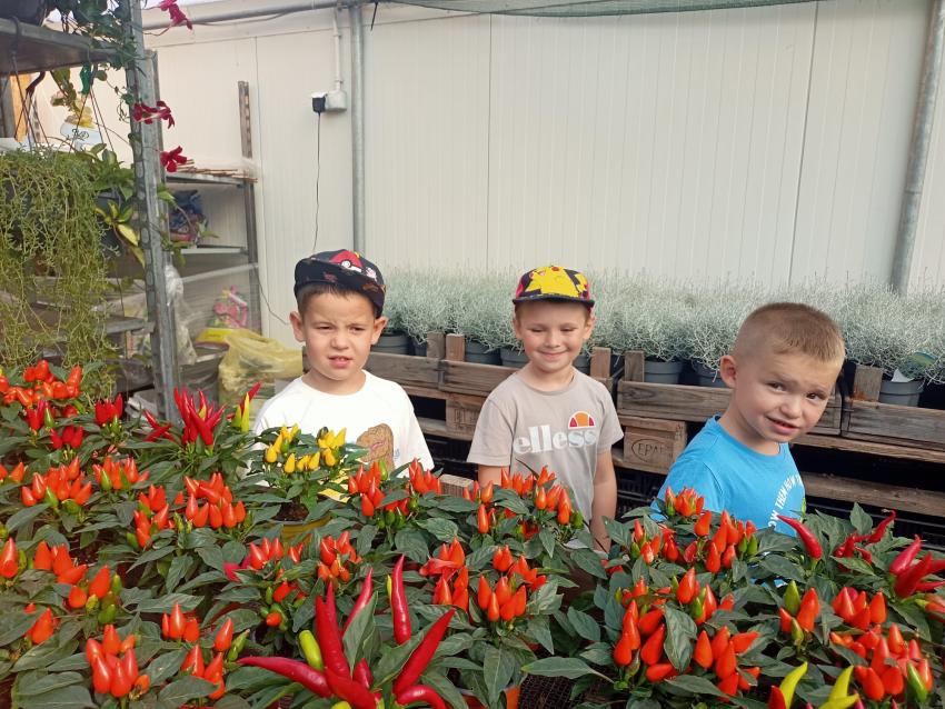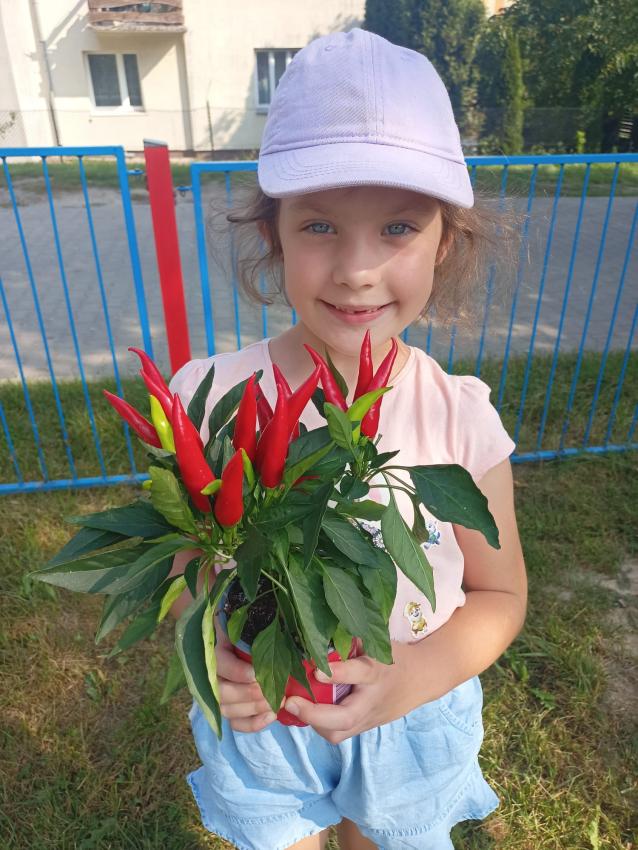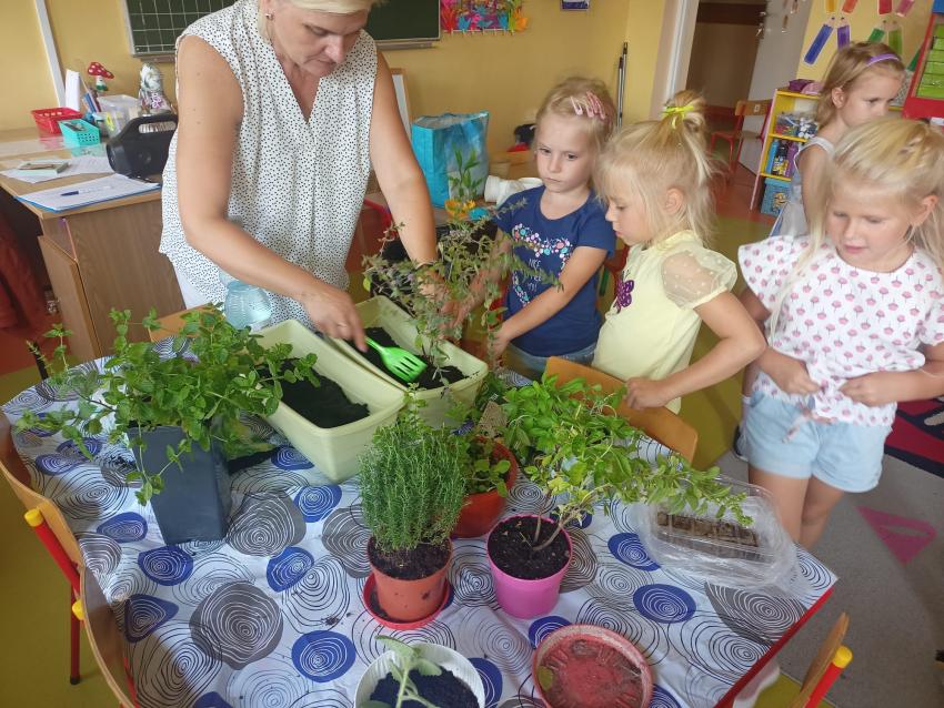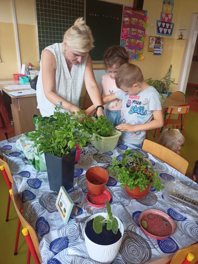 3. W naszej sali powstał " Zielnik". Dzieci przyniosły miętę, bazylię, tymianek, które wspólnie sadziliśmy. Udaliśmy się też do pobliskiego Centrum Ogrodniczego i kupiliśmy piękne, ozdobne papryczki.