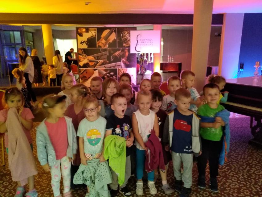 W dniu 22.09.2023 r. dzieci z grupy Supersmyki, Kotki, Krasnoludki, Muchomorki i Tygryski wybrały się na koncert muzyki klasycznej. Radomska Orkiestra Kameralna pod batutą Pawła Kosa - Nowickiego zapoznała przedszkolaki z muzyką Fryderyka Chopina .