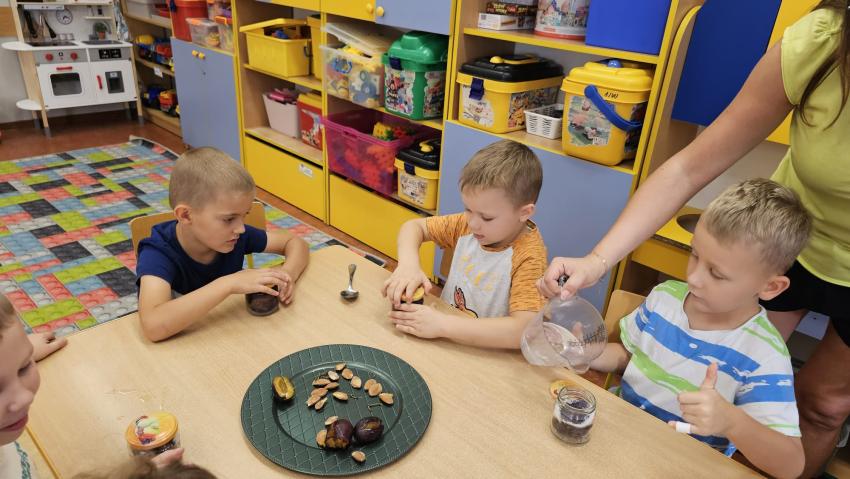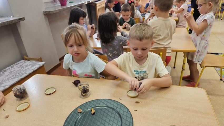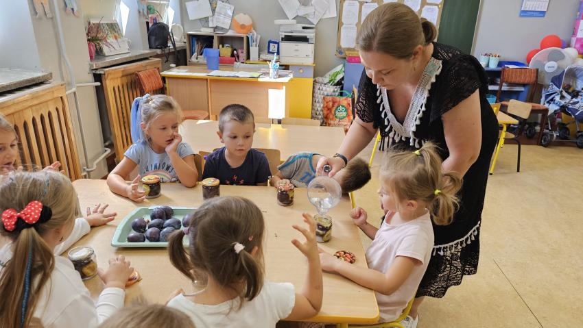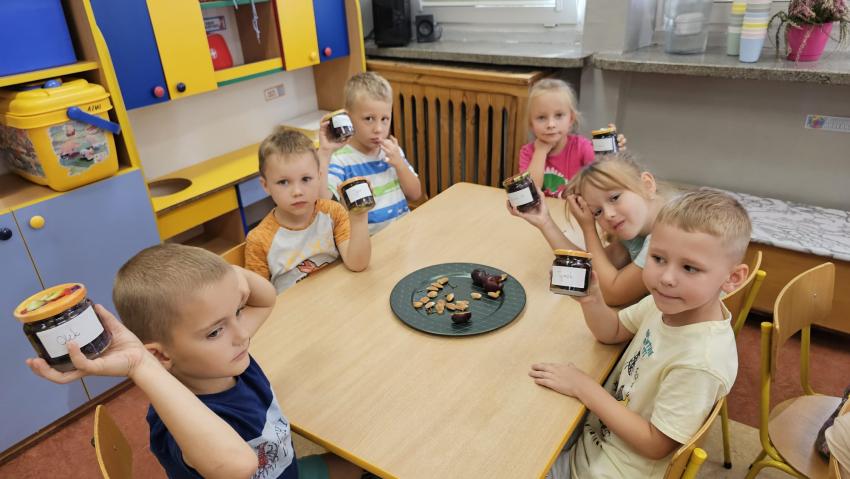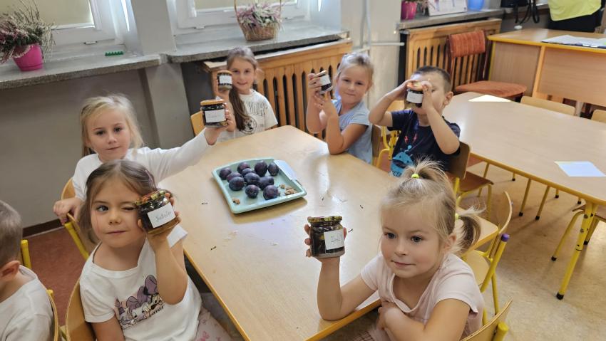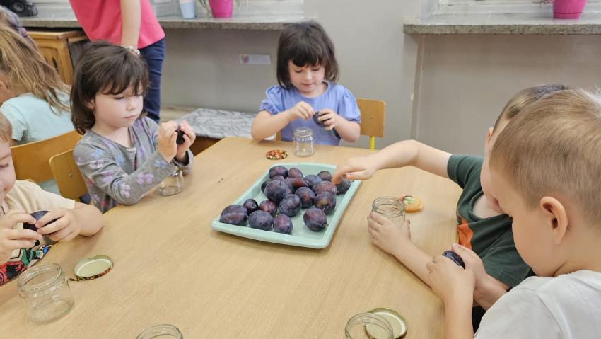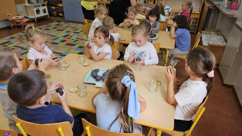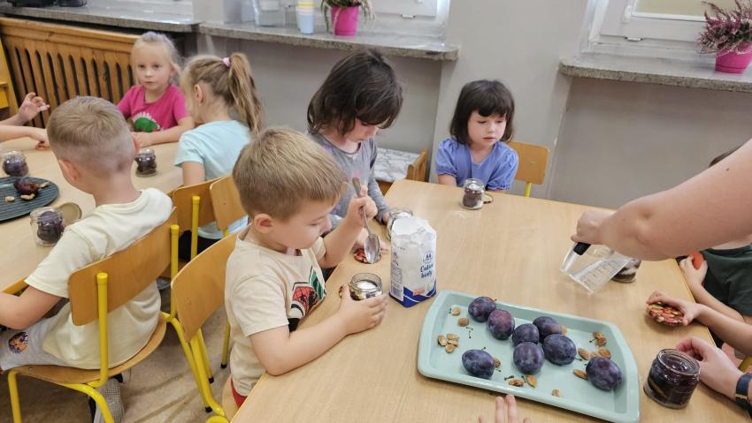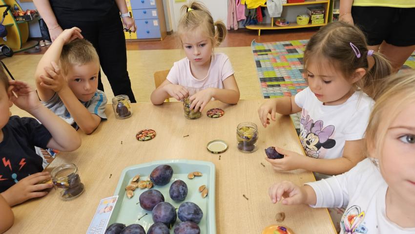 Krasnale realizując pierwsze zdania ?W słoiku zamknięte?- przetwory owocowe Ogólnopolskiego Projektu Edukacyjnego "Z darami natury świat nie jest ponury!" dzieci wykonały kompot ze śliwek. Teraz już będziemy wiedzieć jak przenieść smak lata na zimę.