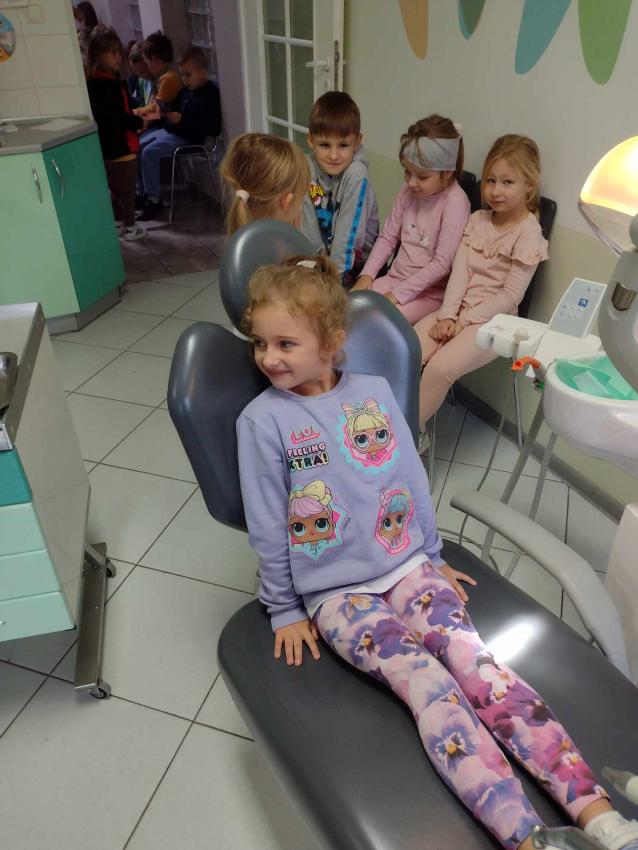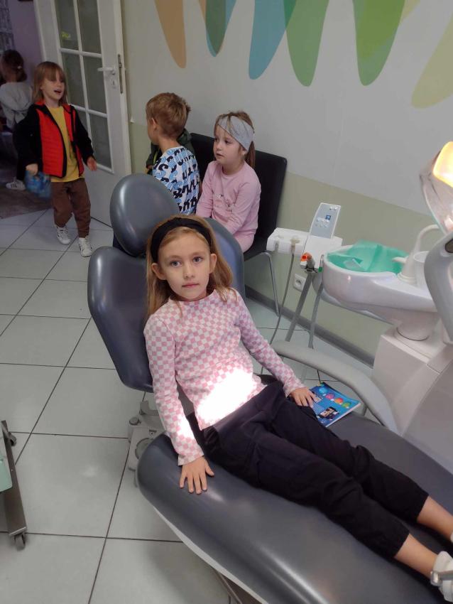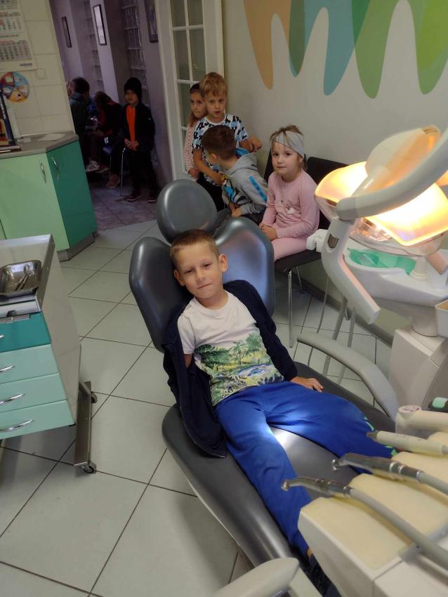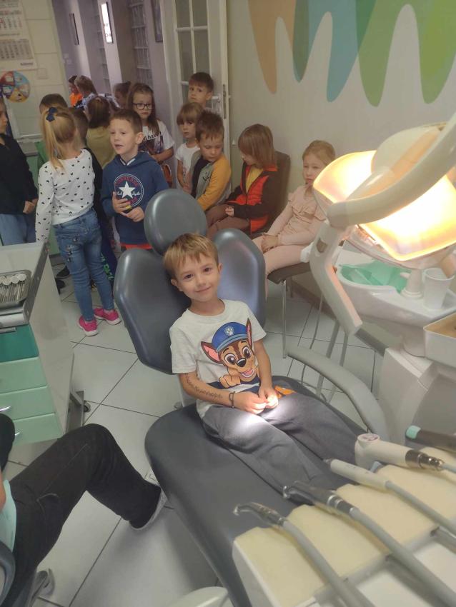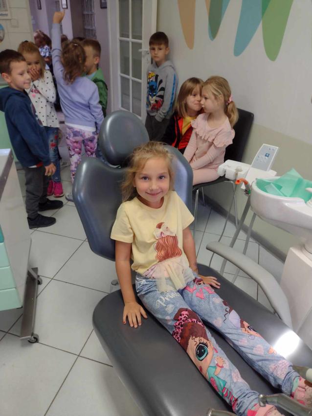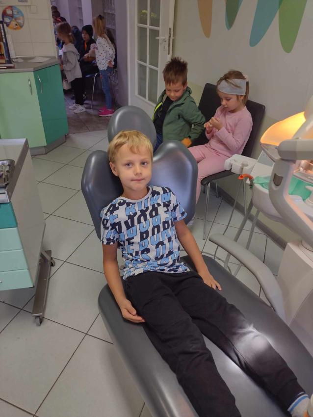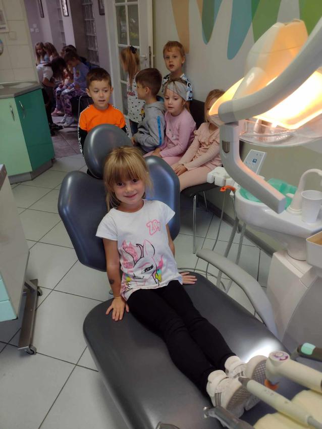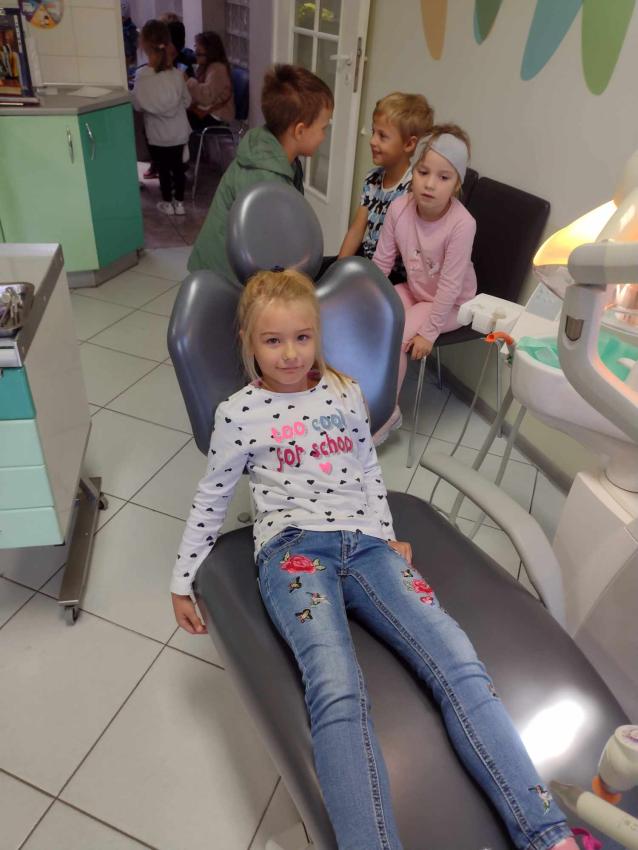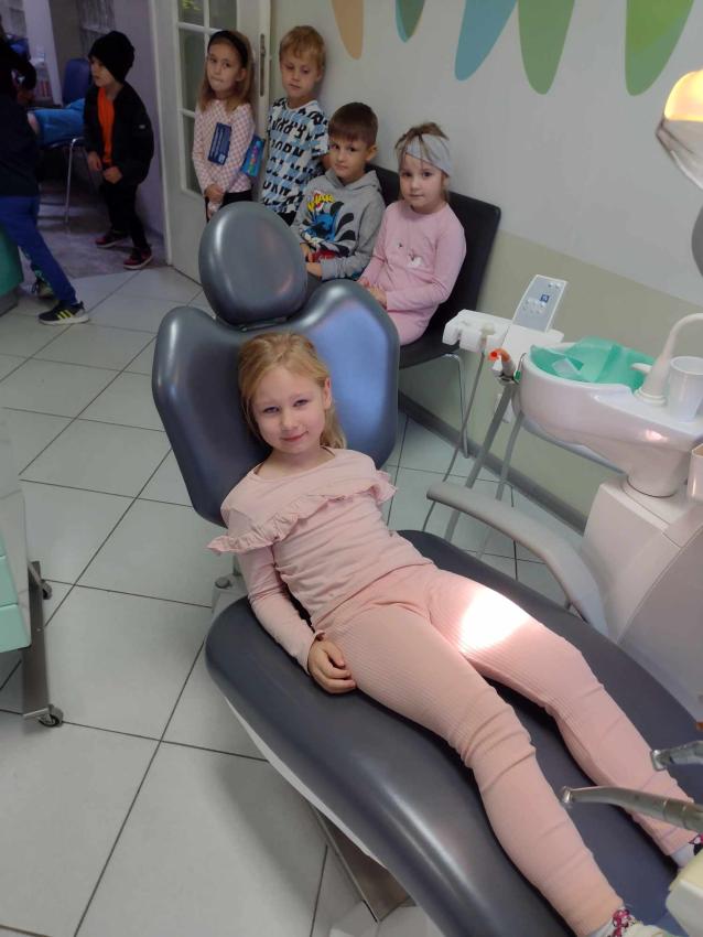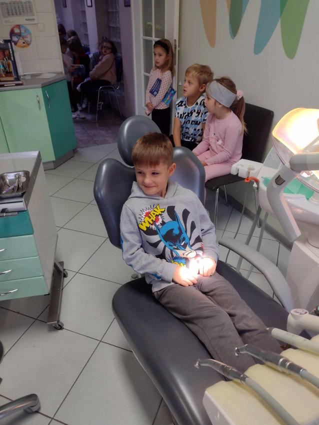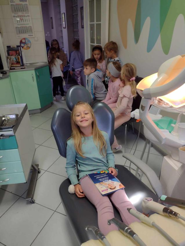 Dzieci z grupy Tygrysków były na przeglądzie zębów w gabinecie stomatologicznym przy ul. Wodnej. Po rozmowie na temat jak prawidłowo dbać o higienę jamy ustnej, wszystkie dzieci odważnie usiadły na fotelu dentystycznym. Każde dziecko otrzymało dyplom Dzielnego Pacjenta. Brawo Tygryski!!!