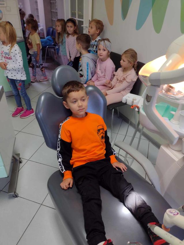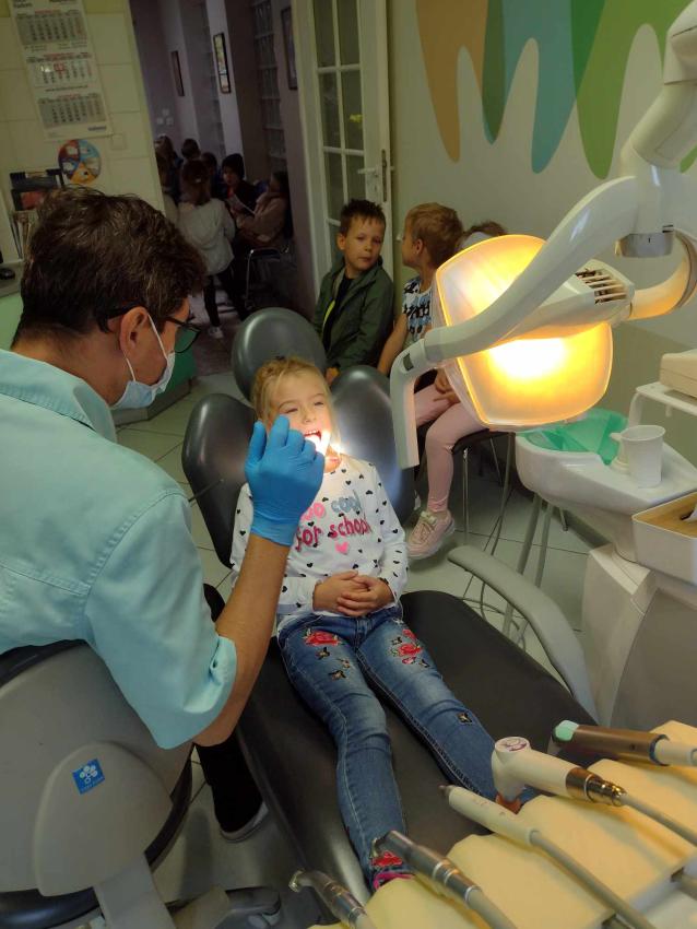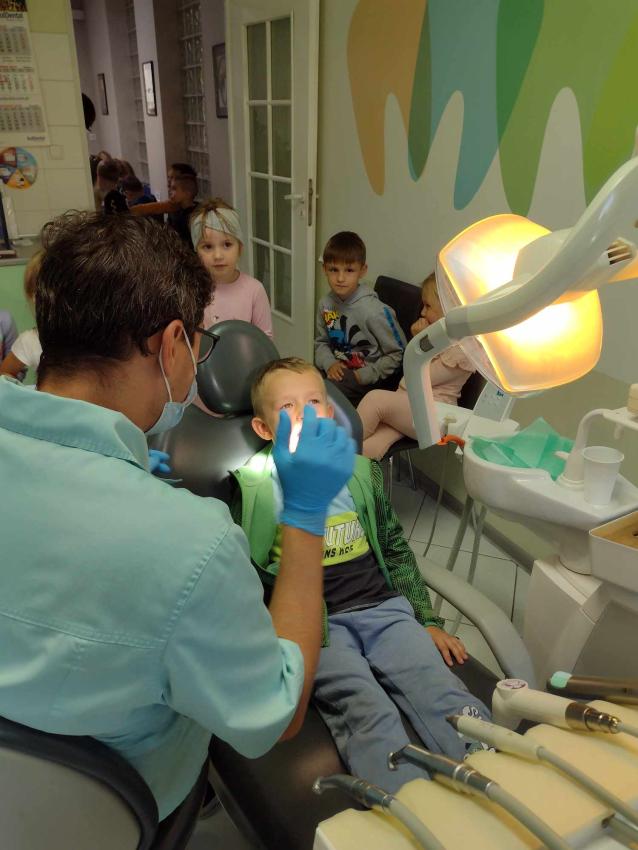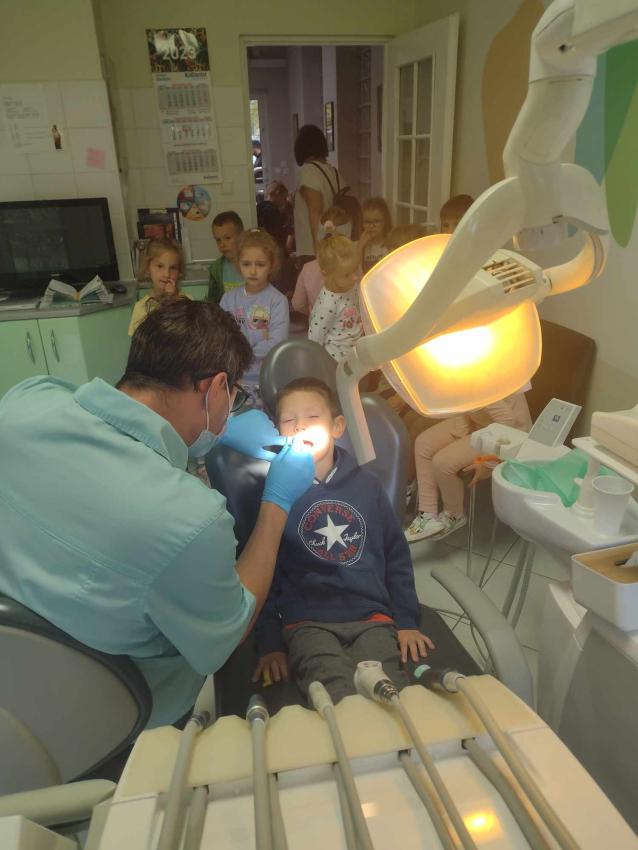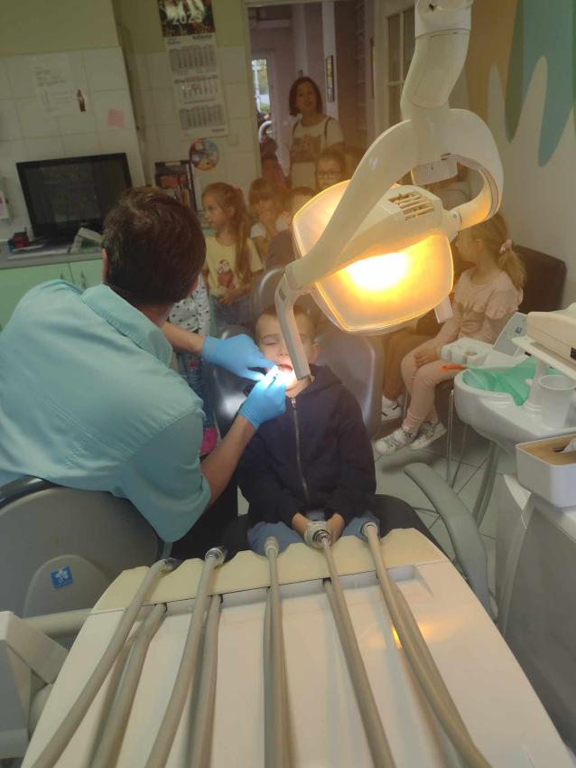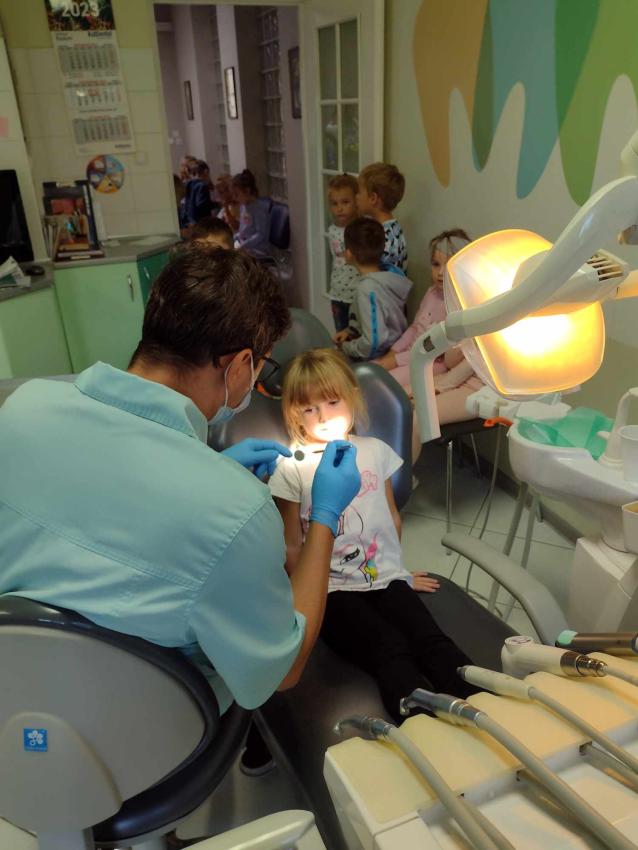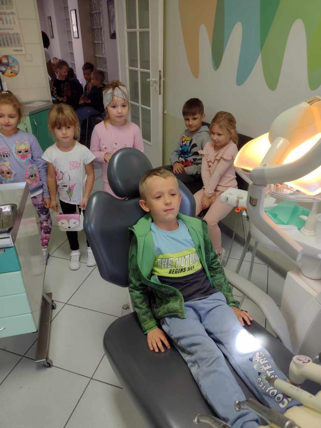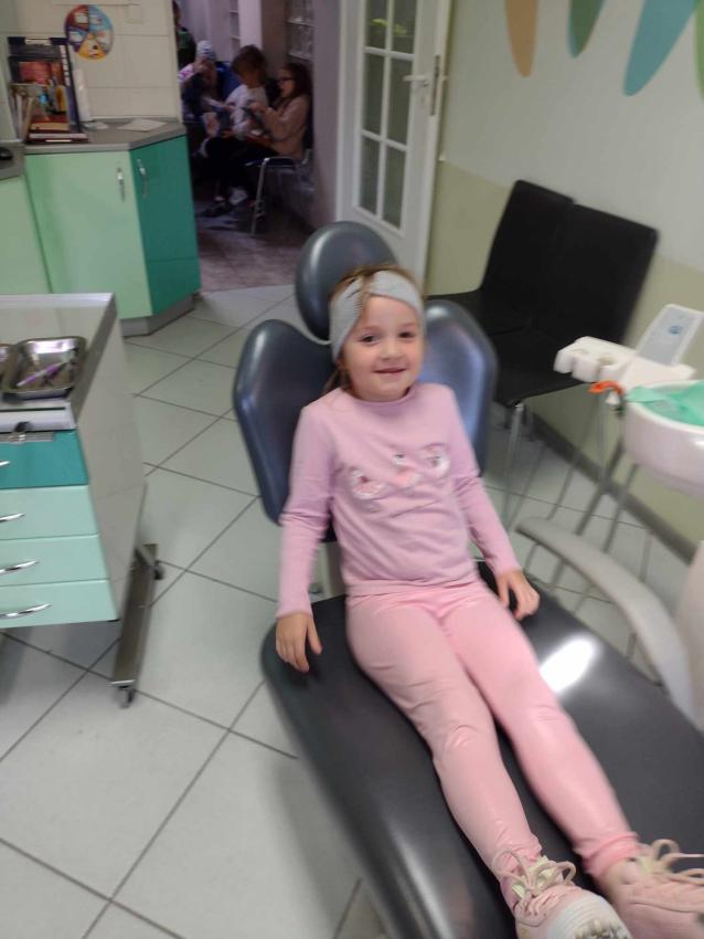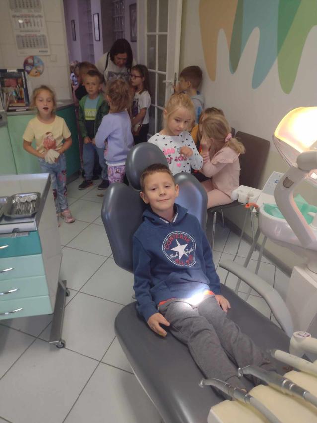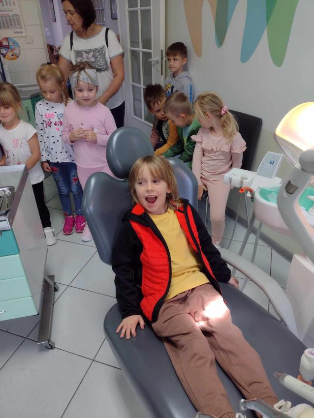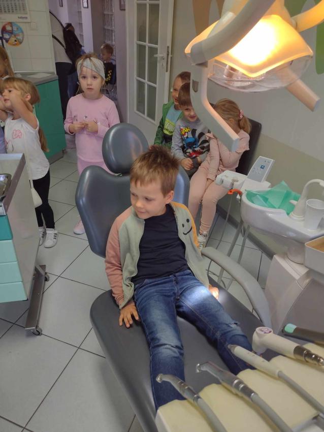 Dzieci z grupy Tygrysków były na przeglądzie zębów w gabinecie stomatologicznym przy ul. Wodnej. Po rozmowie na temat jak prawidłowo dbać o higienę jamy ustnej, wszystkie dzieci odważnie usiadły na fotelu dentystycznym. Każde dziecko otrzymało dyplom Dzielnego Pacjenta. Brawo Tygryski!!!