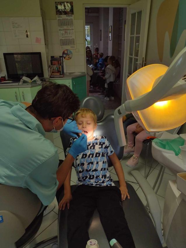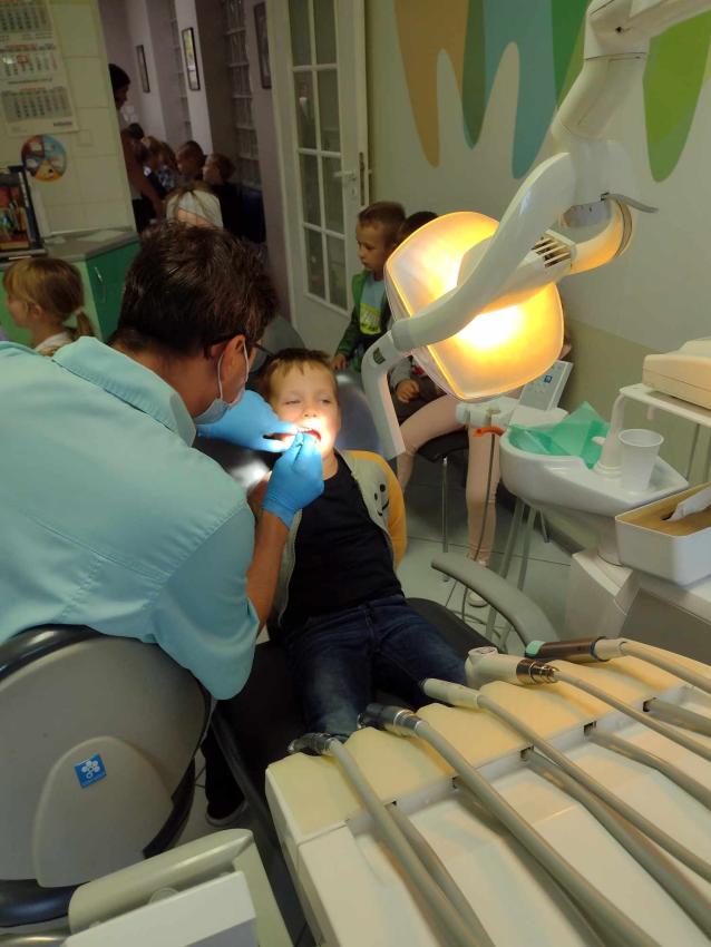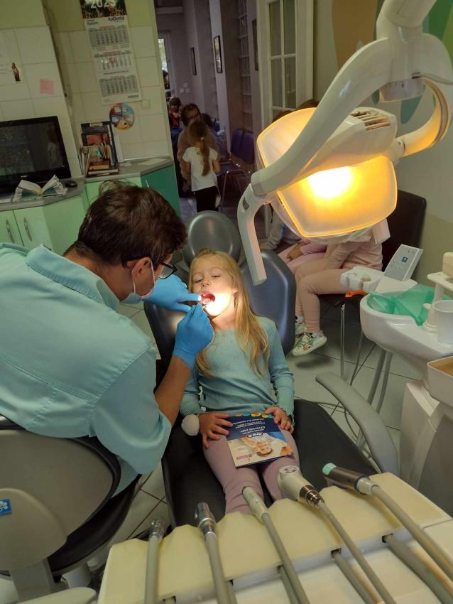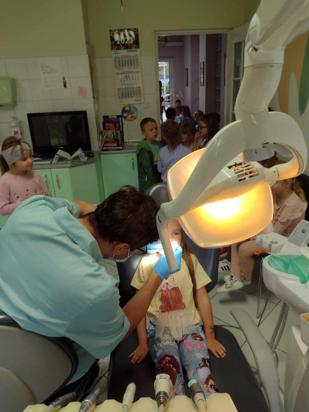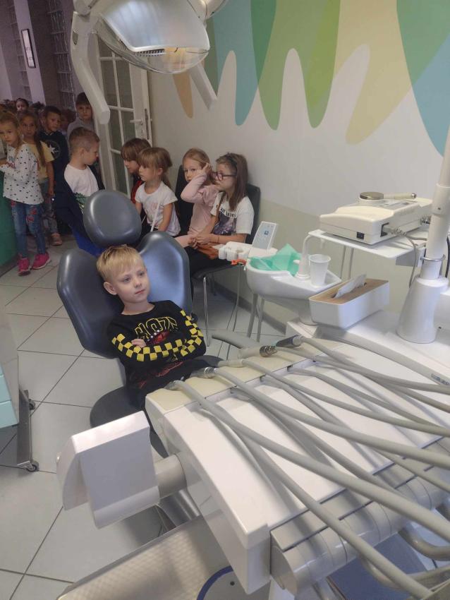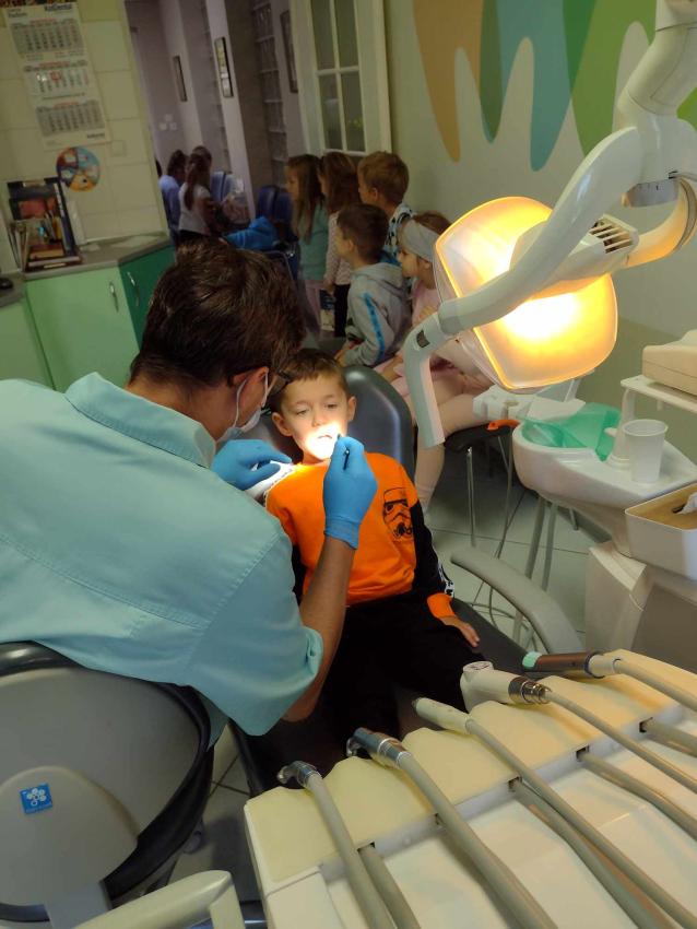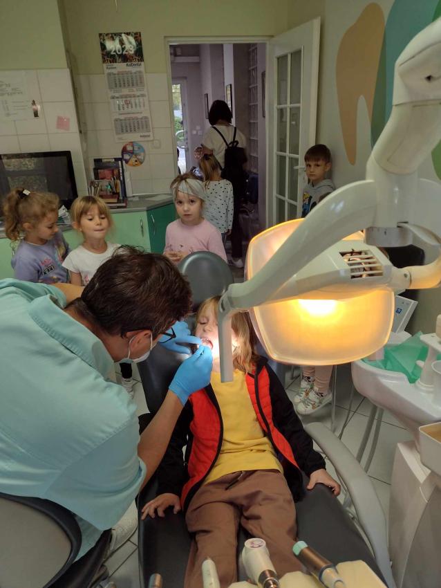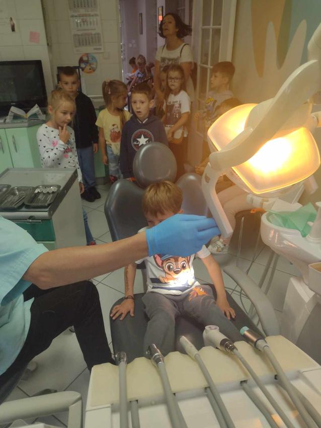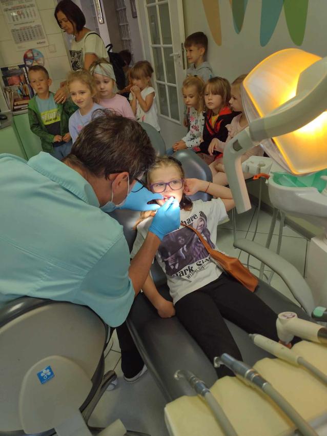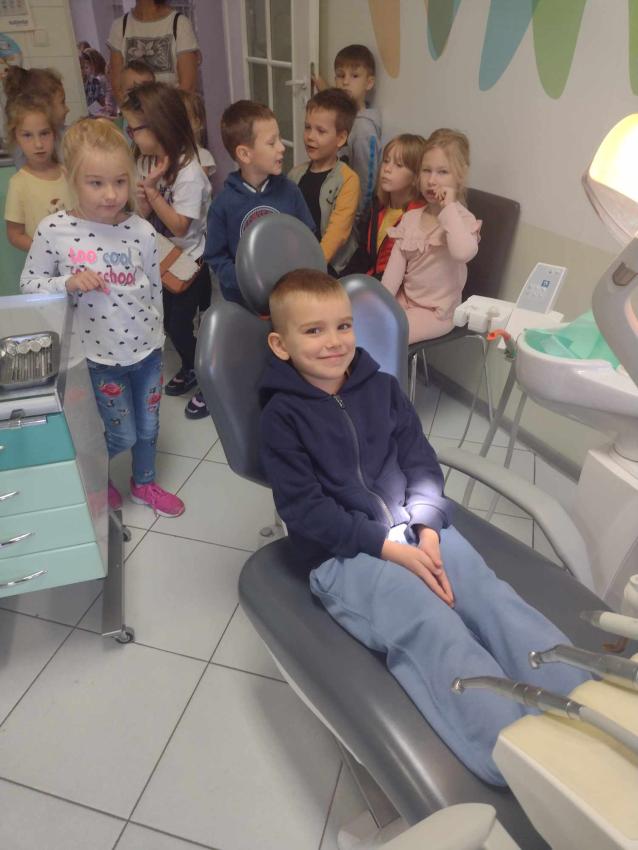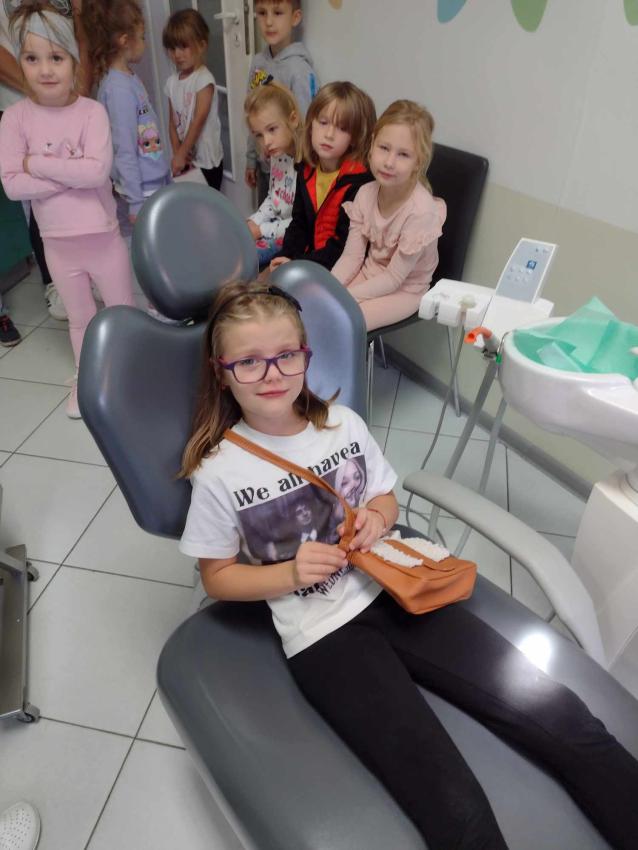 Dzieci z grupy Tygrysków były na przeglądzie zębów w gabinecie stomatologicznym przy ul. Wodnej. Po rozmowie na temat jak prawidłowo dbać o higienę jamy ustnej, wszystkie dzieci odważnie usiadły na fotelu dentystycznym. Każde dziecko otrzymało dyplom Dzielnego Pacjenta. Brawo Tygryski!!!