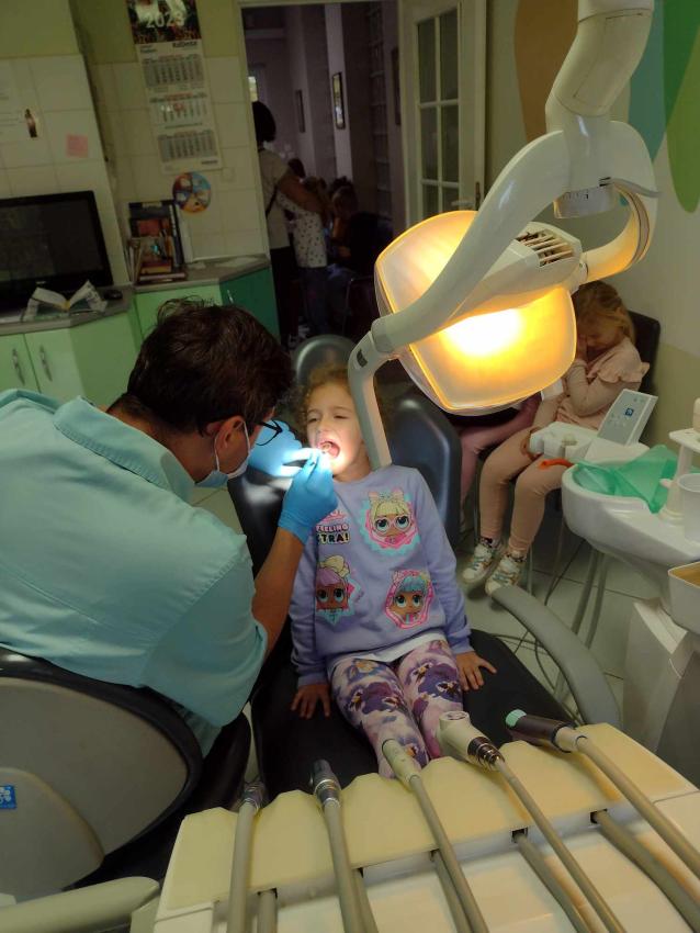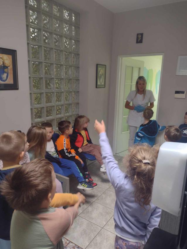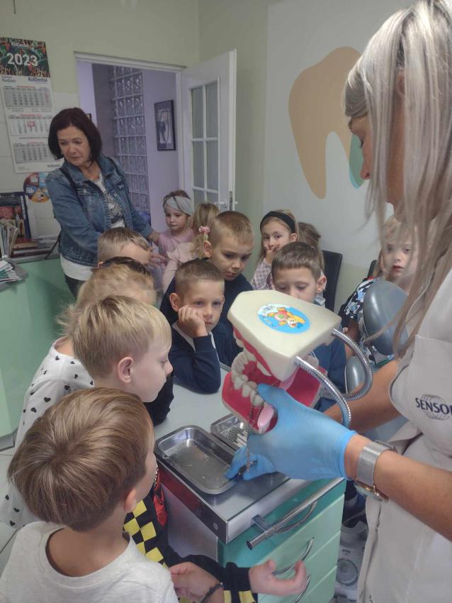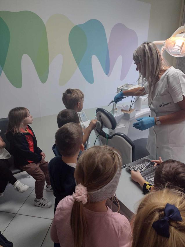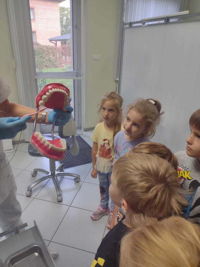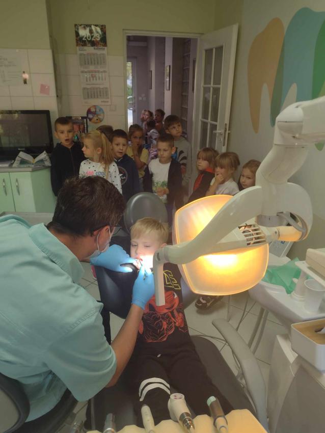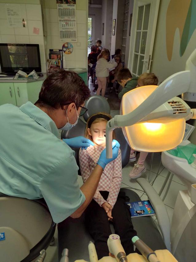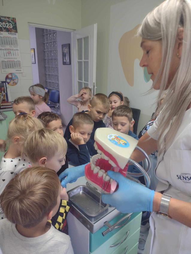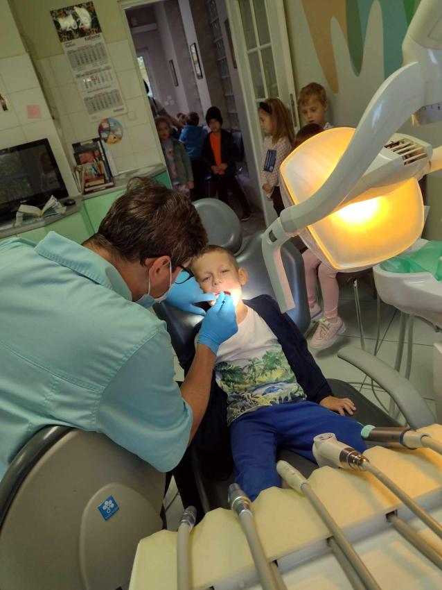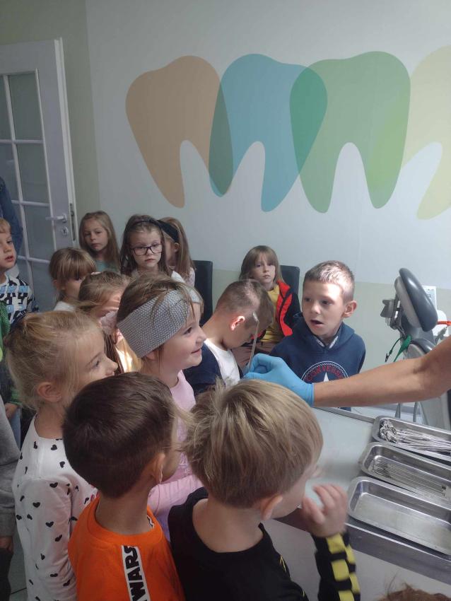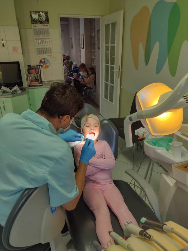 Dzieci z grupy Tygrysków były na przeglądzie zębów w gabinecie stomatologicznym przy ul. Wodnej. Po rozmowie na temat jak prawidłowo dbać o higienę jamy ustnej, wszystkie dzieci odważnie usiadły na fotelu dentystycznym. Każde dziecko otrzymało dyplom Dzielnego Pacjenta. Brawo Tygryski!!!