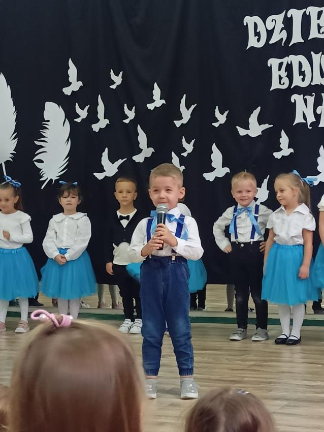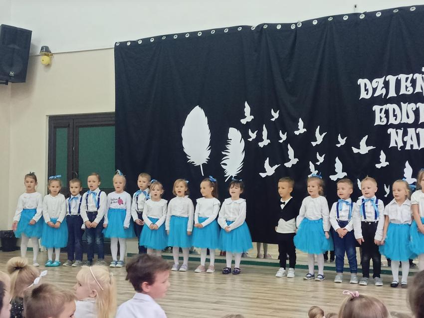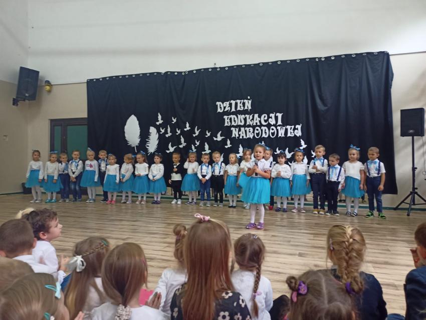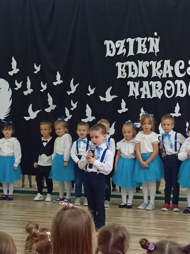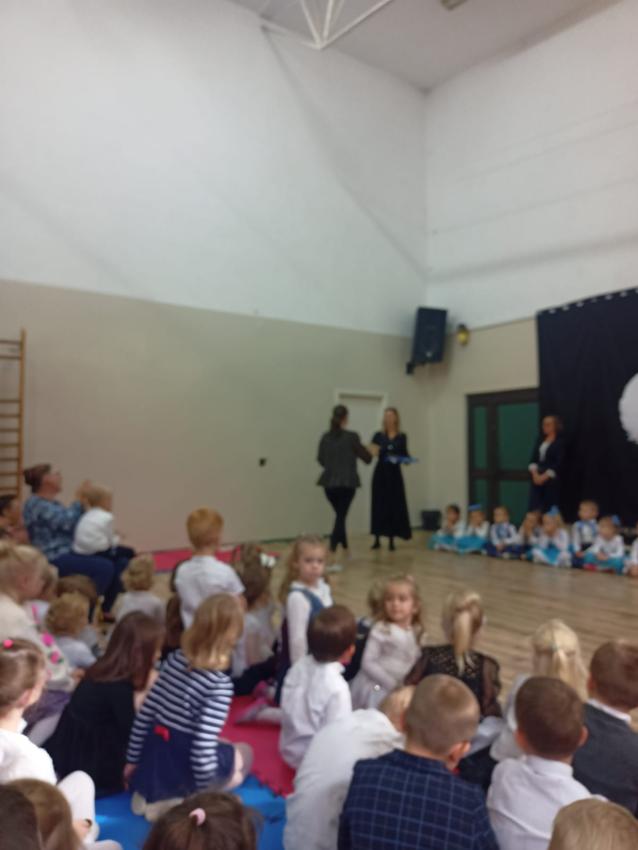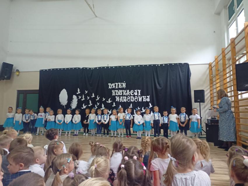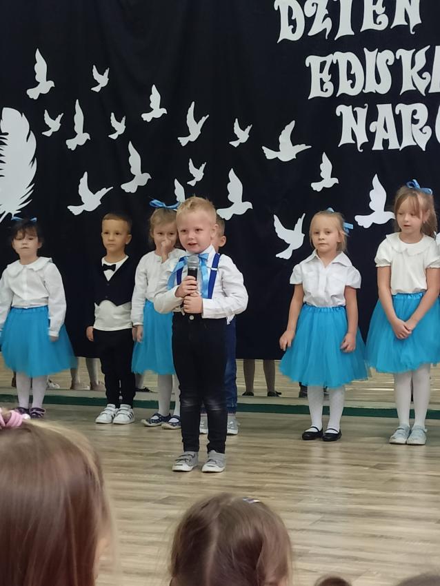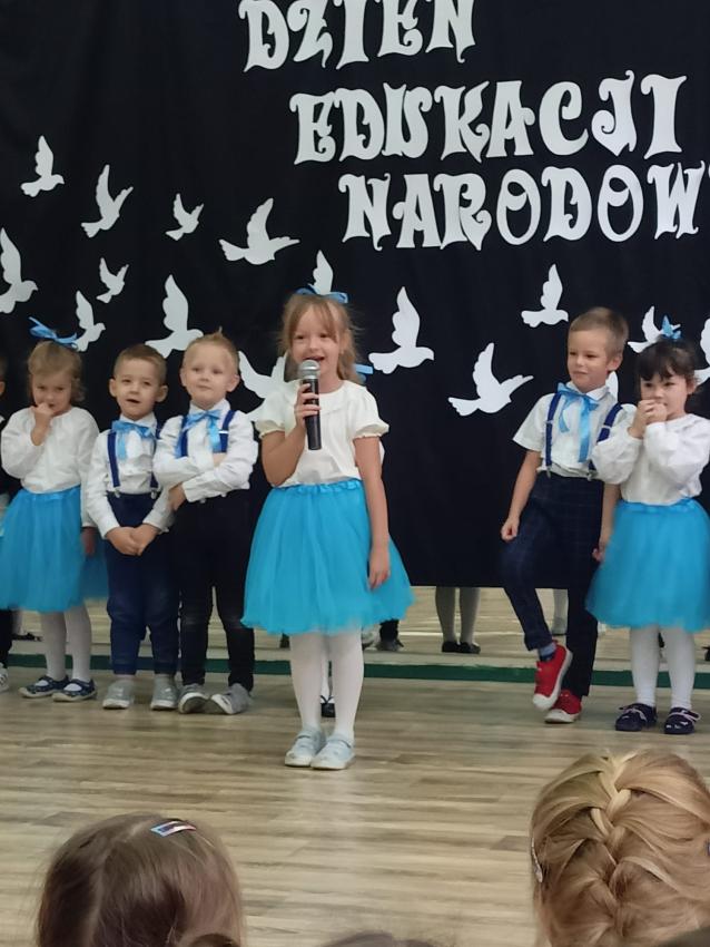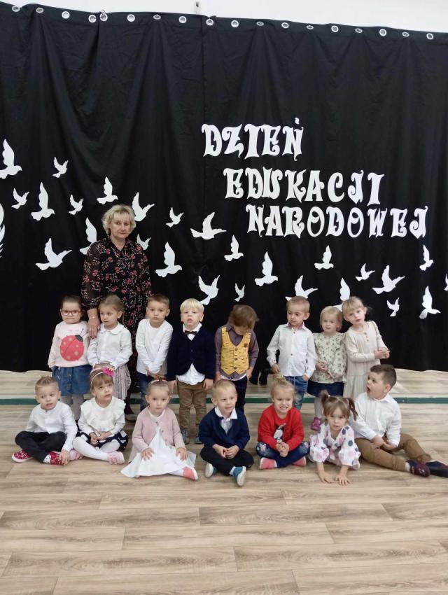 Dziś w Przedszkolu wielkie święto! Dzieci z grupy Krasnoludki, przygotowane przez Panią Annę Pęksyk i Panią Beatę Dziubińską zaprezentowały przed Panią Dyrektor, pracownikami przedszkola i przedszkolakami przedstawienie z okazji Dnia Edukacji Narodowej.