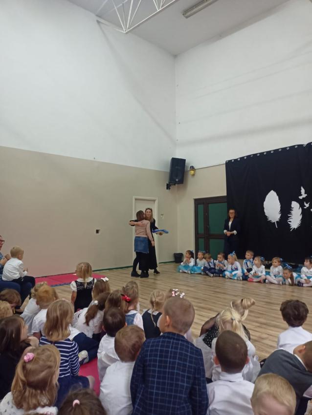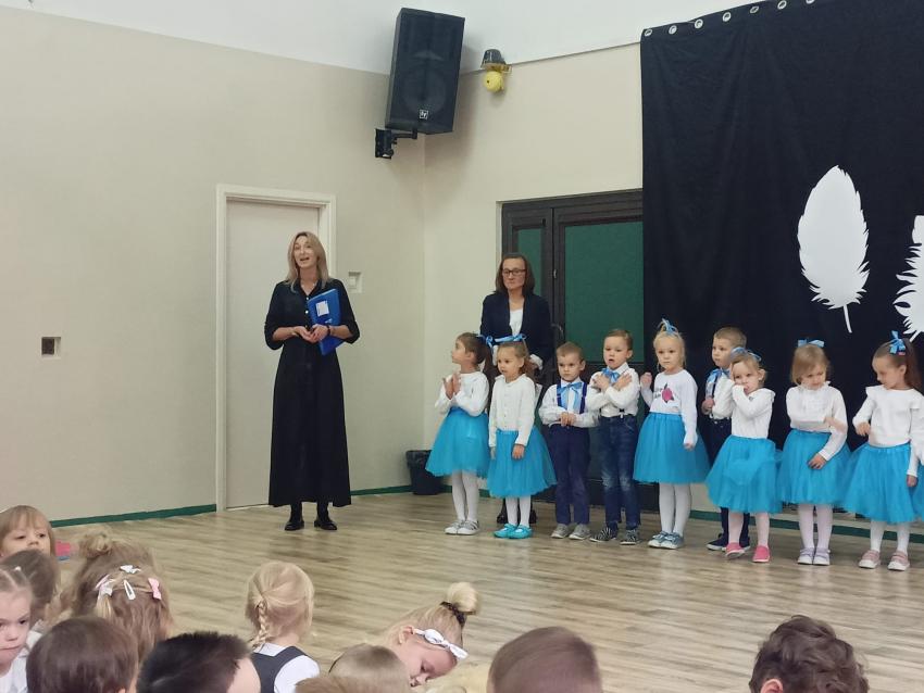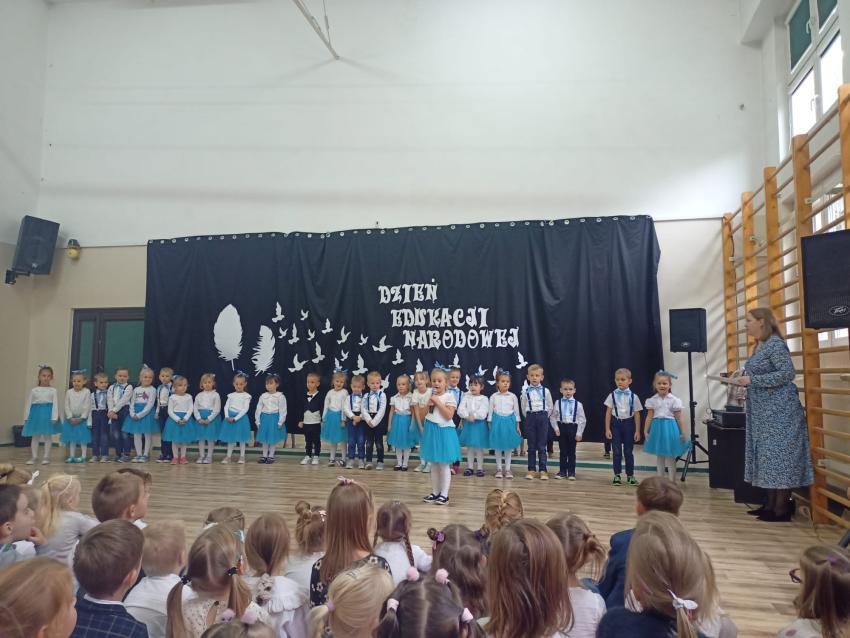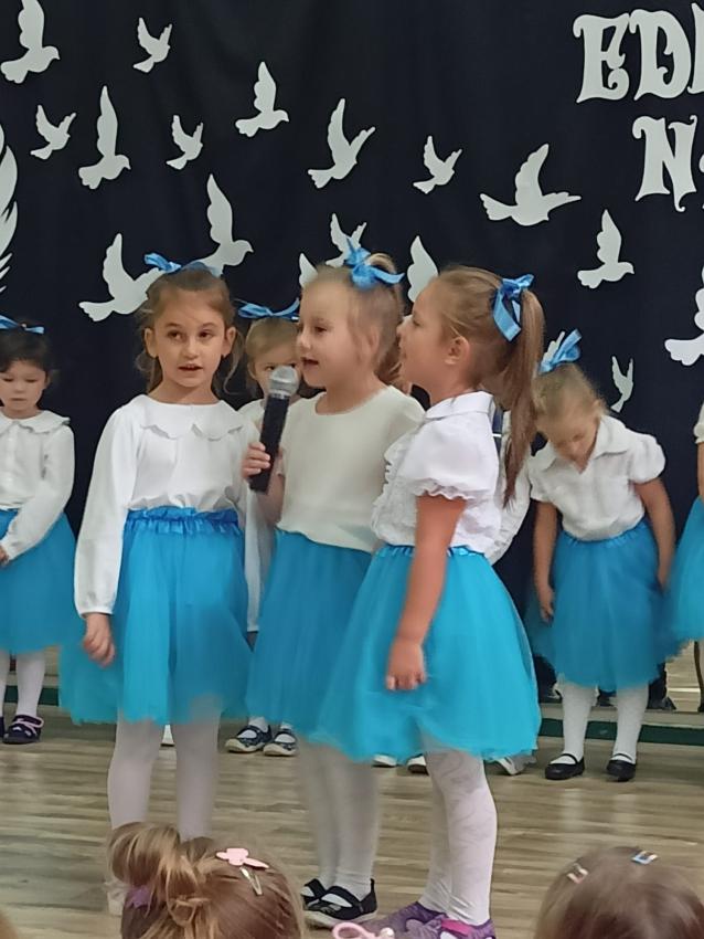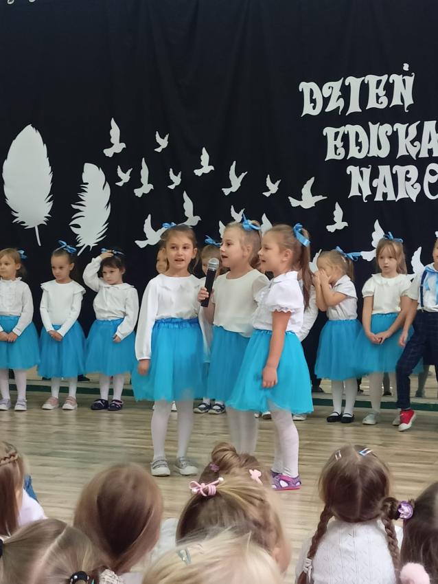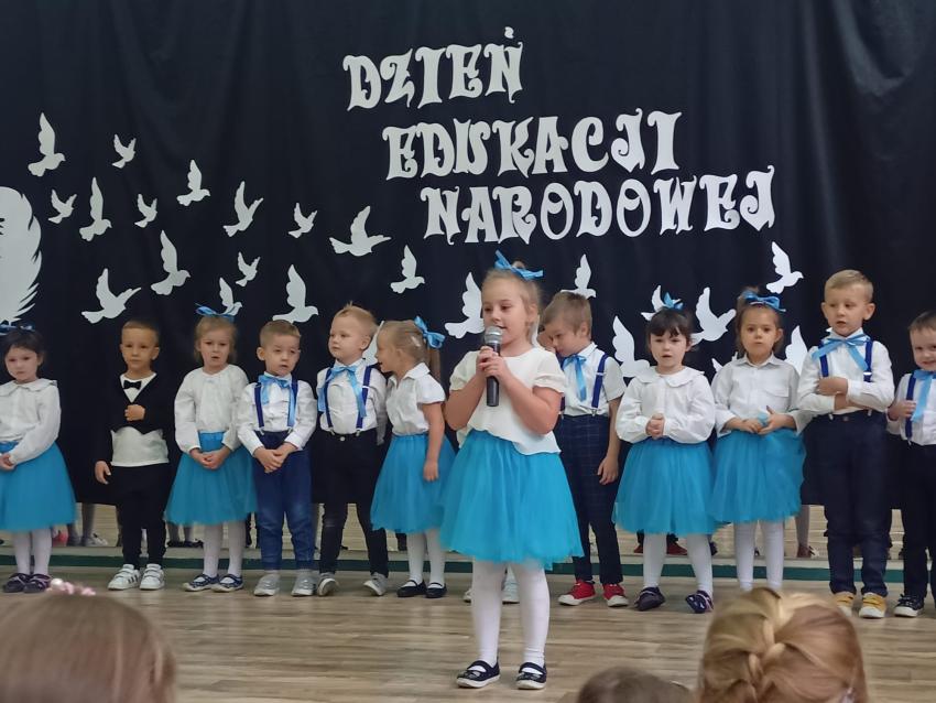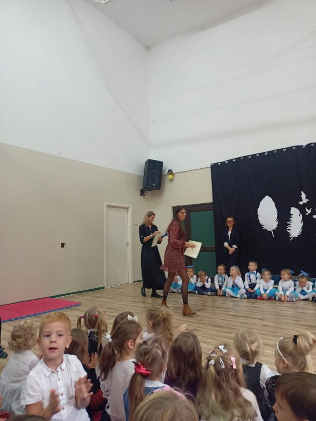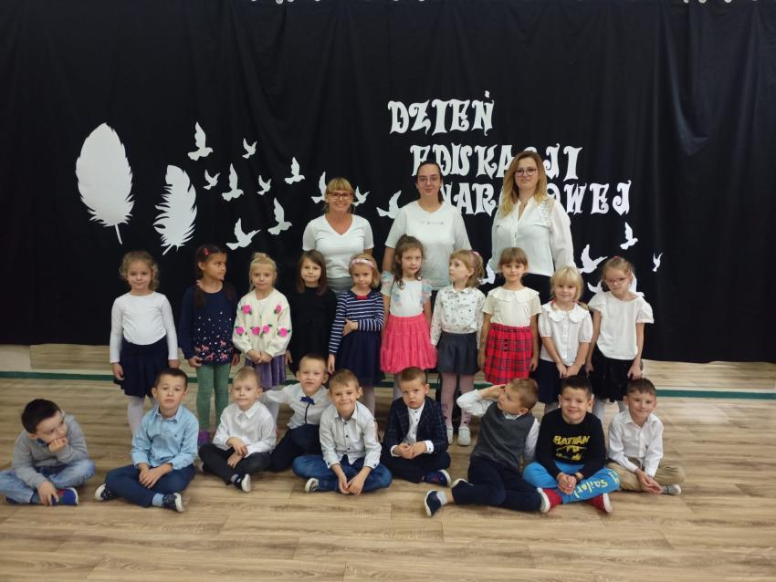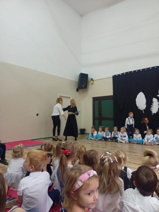 Dziś w Przedszkolu wielkie święto! Dzieci z grupy Krasnoludki, przygotowane przez Panią Annę Pęksyk i Panią Beatę Dziubińską zaprezentowały przed Panią Dyrektor, pracownikami przedszkola i przedszkolakami przedstawienie z okazji Dnia Edukacji Narodowej.