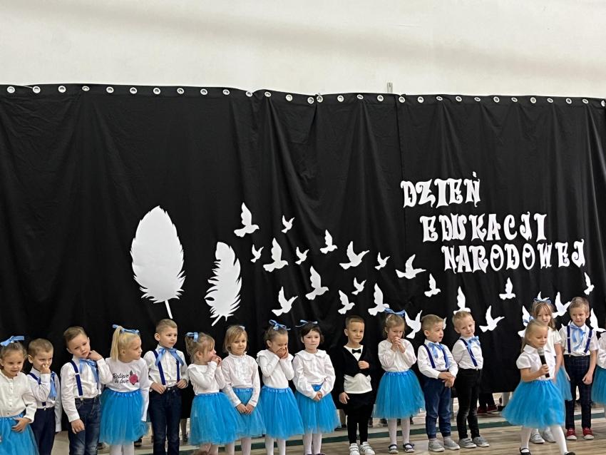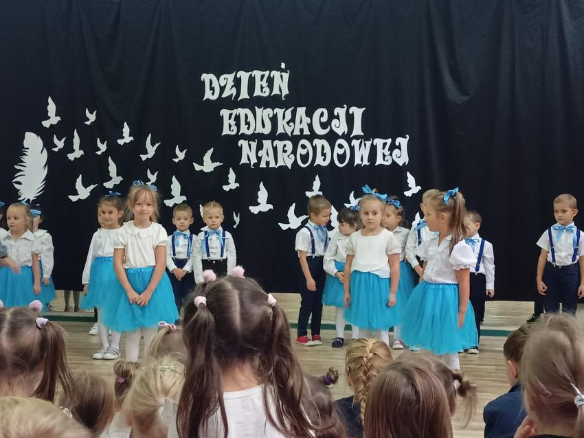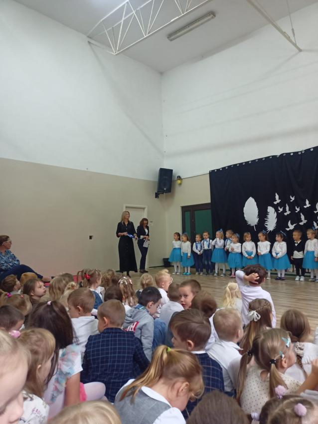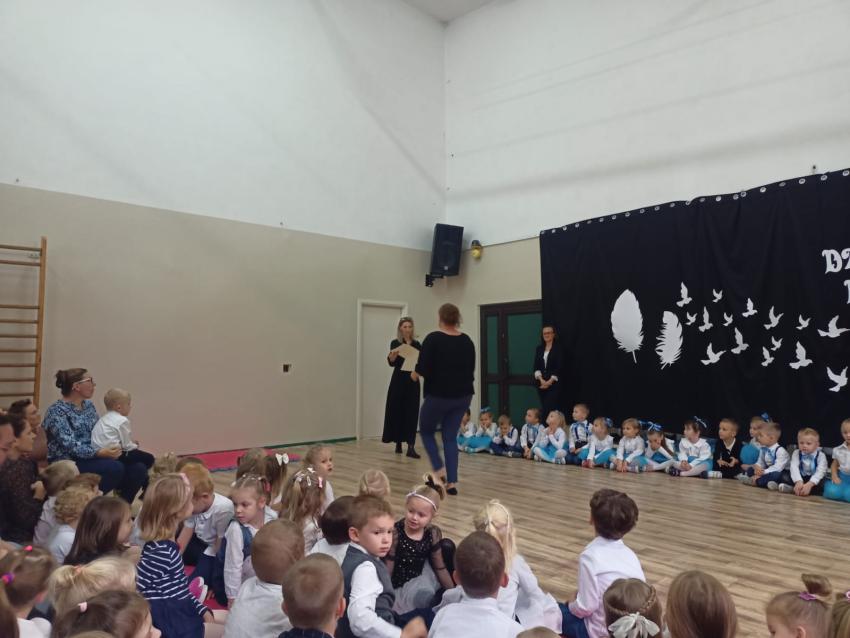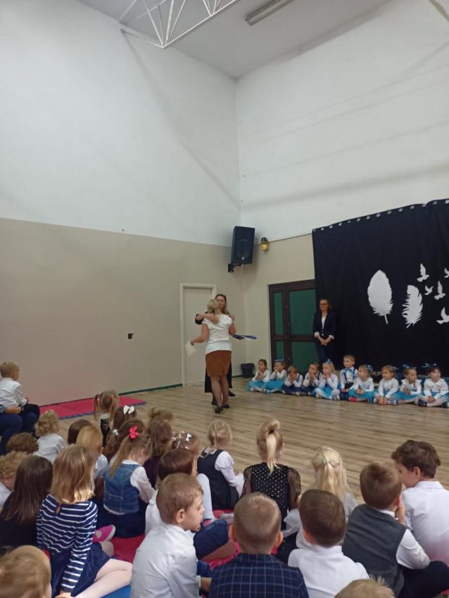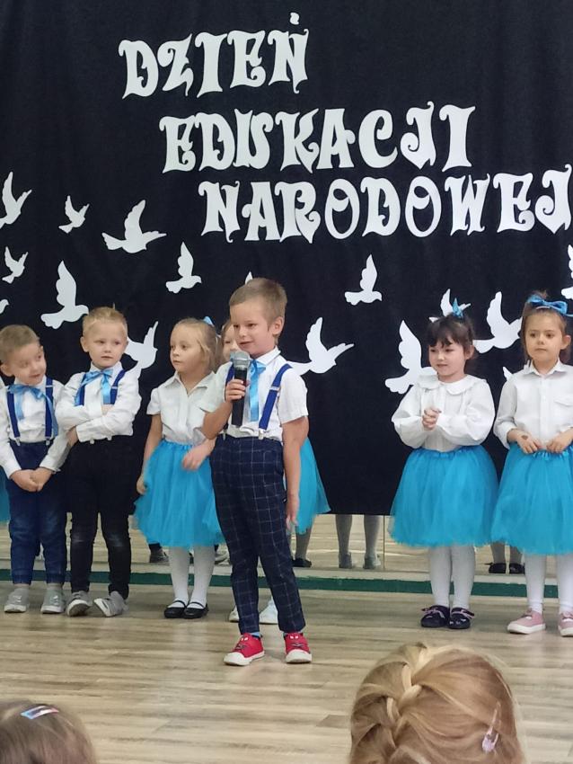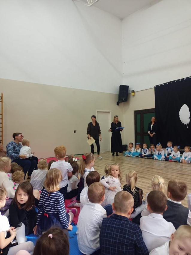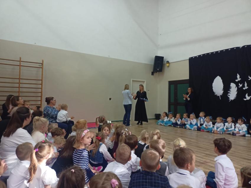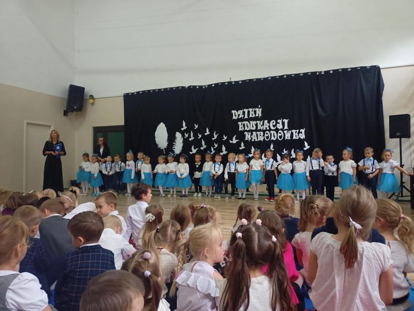 Dziś w Przedszkolu wielkie święto! Dzieci z grupy Krasnoludki, przygotowane przez Panią Annę Pęksyk i Panią Beatę Dziubińską zaprezentowały przed Panią Dyrektor, pracownikami przedszkola i przedszkolakami przedstawienie z okazji Dnia Edukacji Narodowej.