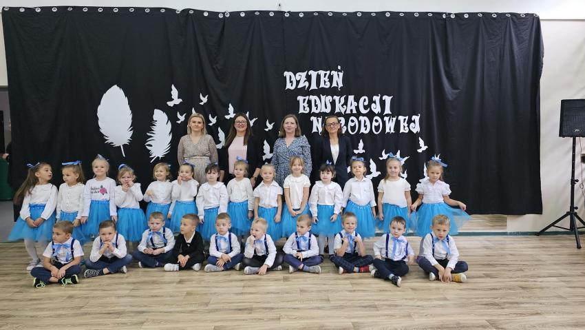 Dziś w Przedszkolu wielkie święto! Dzieci z grupy Krasnoludki, przygotowane przez Panią Annę Pęksyk i Panią Beatę Dziubińską zaprezentowały przed Panią Dyrektor, pracownikami przedszkola i przedszkolakami przedstawienie z okazji Dnia Edukacji Narodowej.