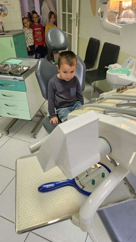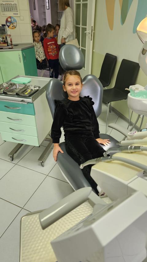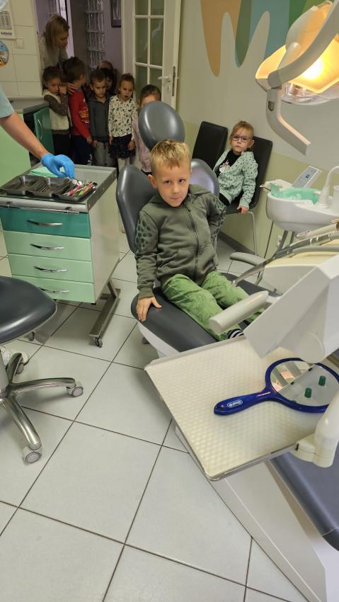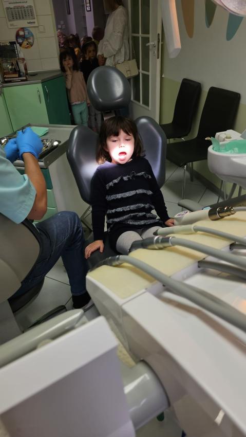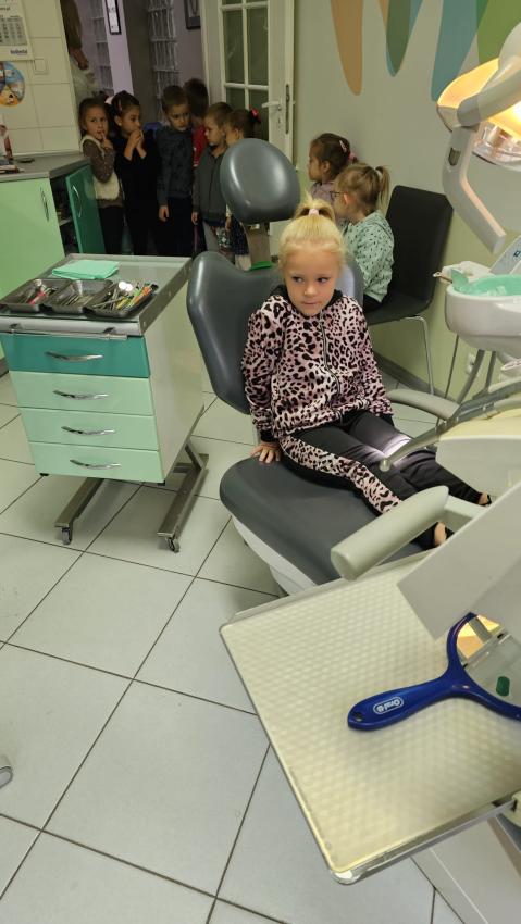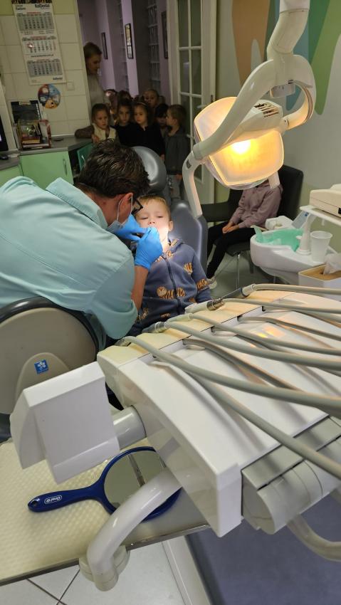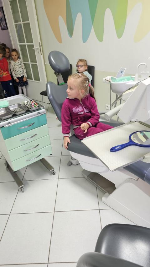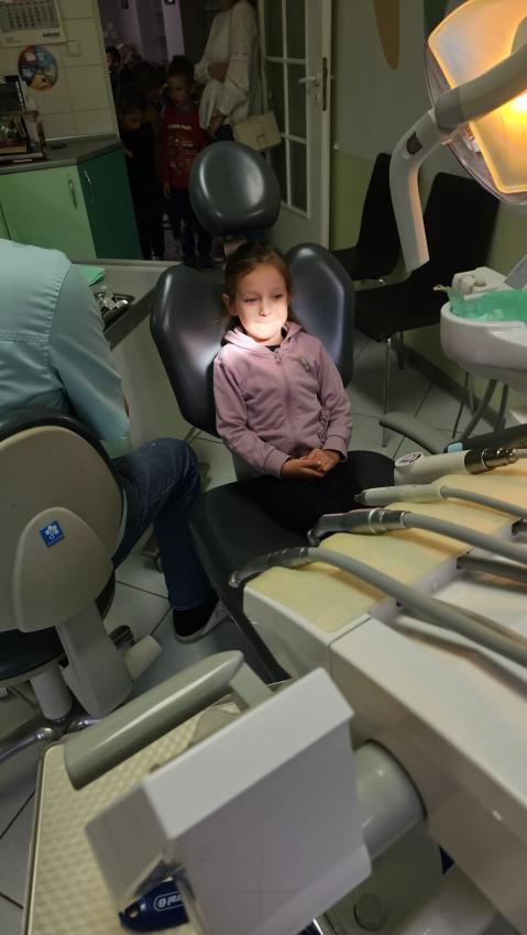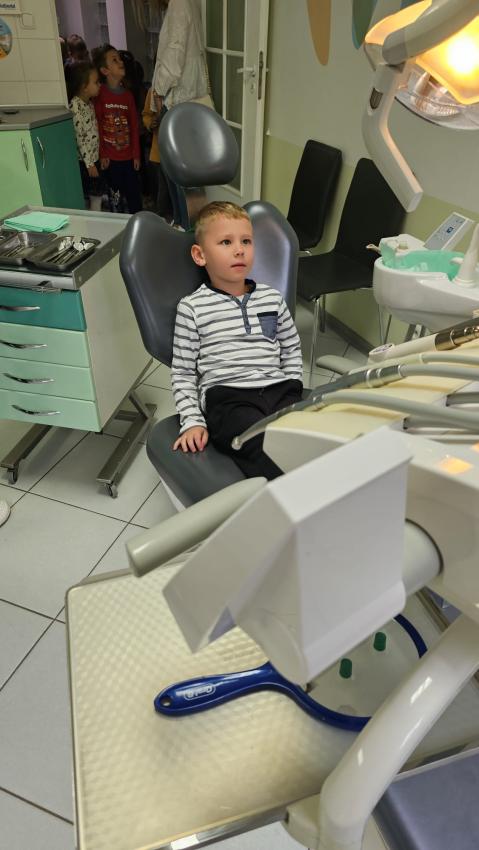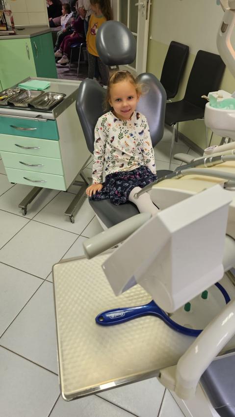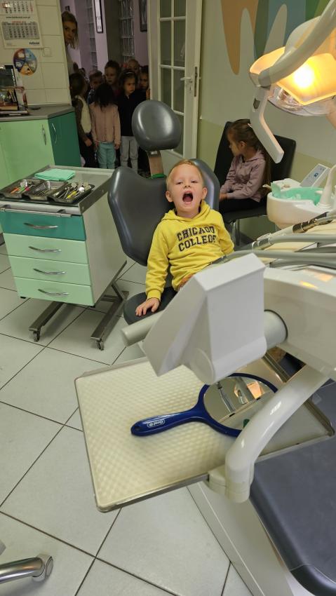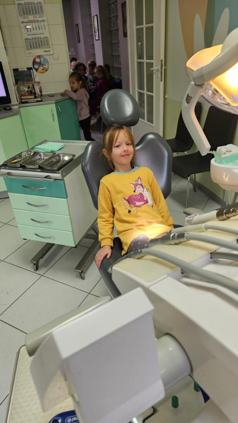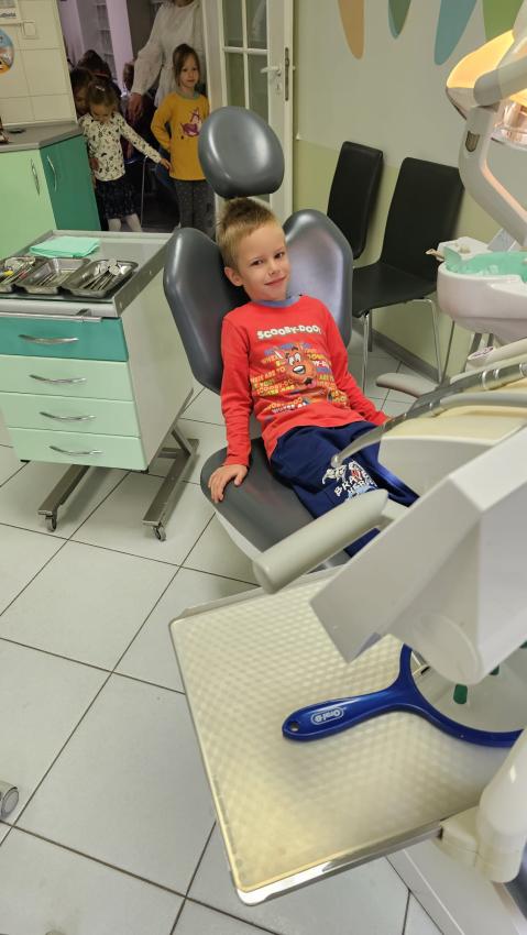 Krasnoludki odwiedziły gabinet dentystyczny. Wszyscy byli bardzo odważni podczas przeglądu stomatologicznego i dumni ze swoich stałych ząbków. Dowiedzieliśmy się również jak dbać o zdrowie swoich ząbków. Dzięki przeglądowi także rodzice Krasnali otrzymali informacje, kto powinien umówić się na dodatkową wizytę u stomatologa. Dziękujemy za poświęcony czas i przekazaną nam wiedzę.