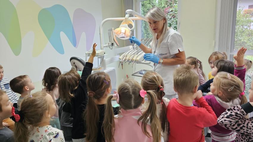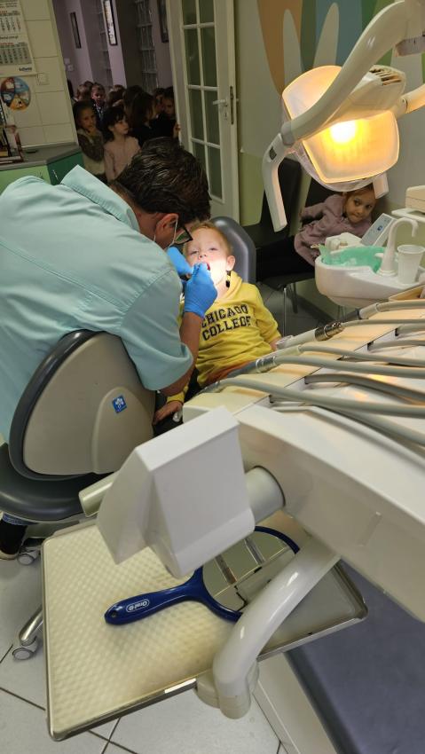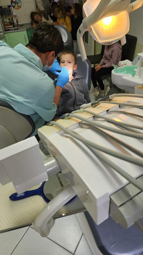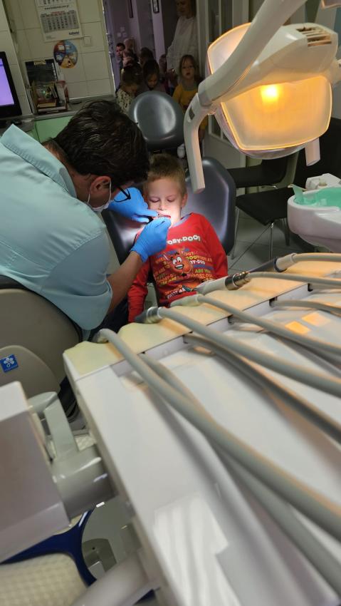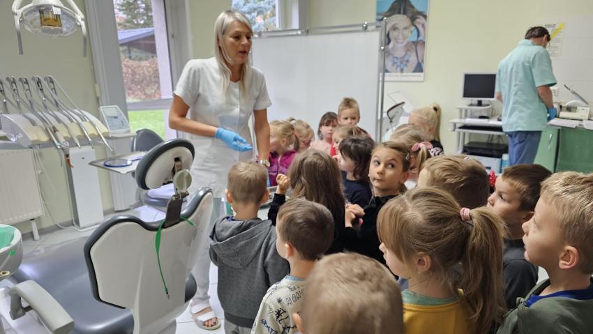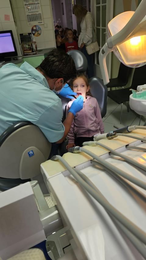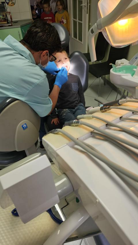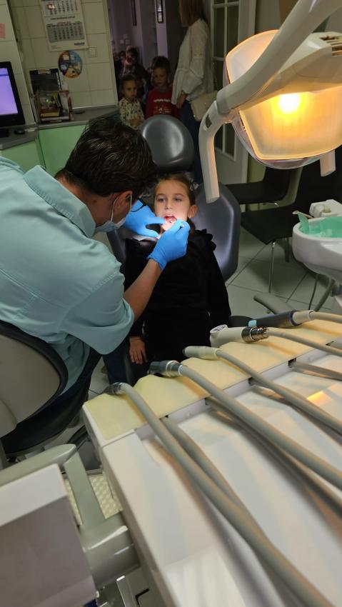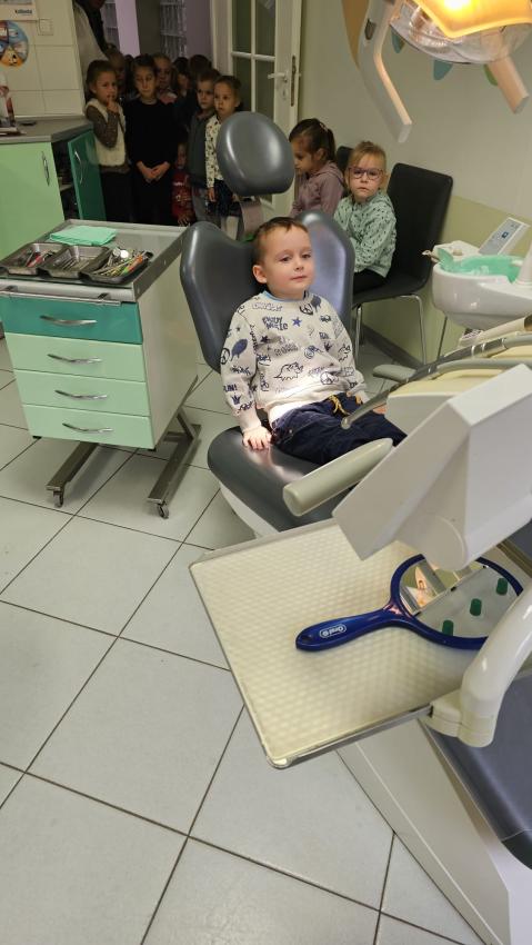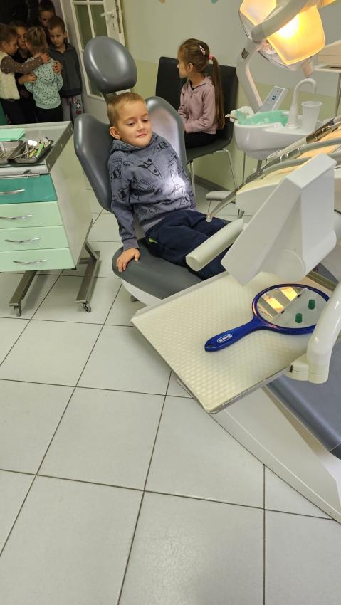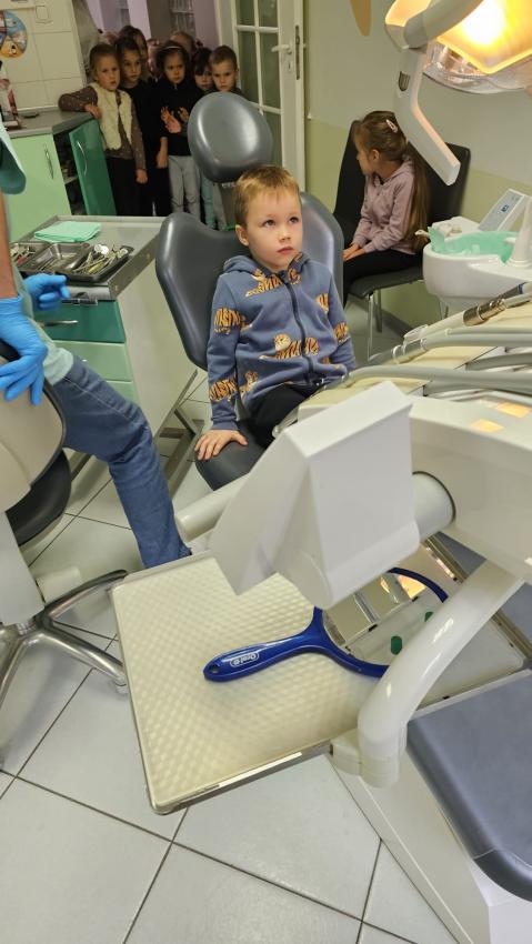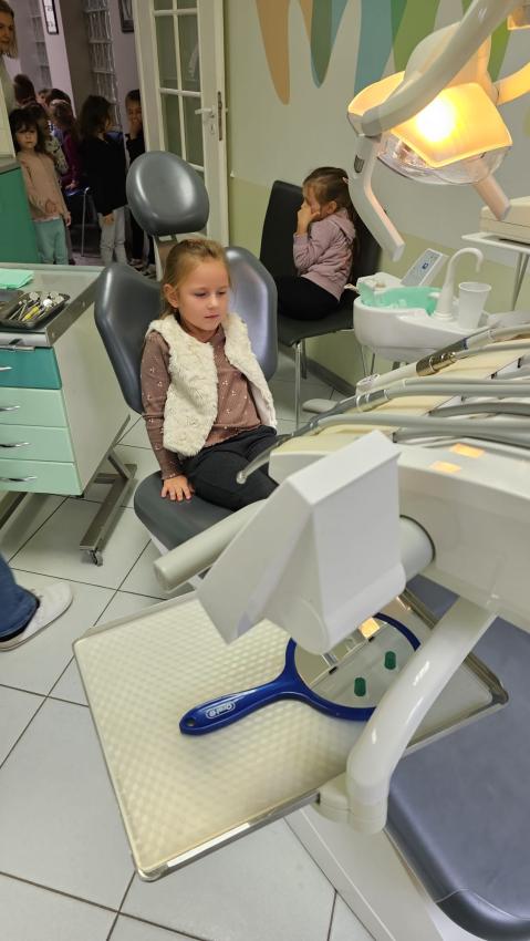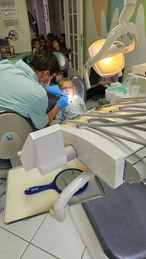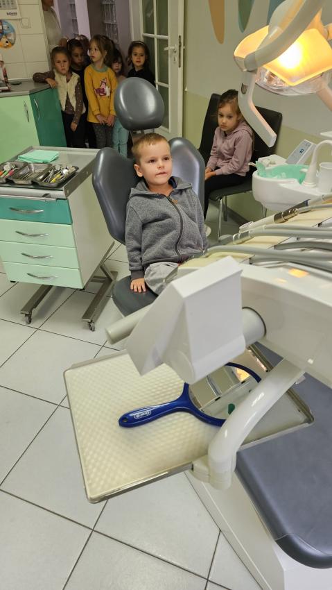 Krasnoludki odwiedziły gabinet dentystyczny. Wszyscy byli bardzo odważni podczas przeglądu stomatologicznego i dumni ze swoich stałych ząbków. Dowiedzieliśmy się również jak dbać o zdrowie swoich ząbków. Dzięki przeglądowi także rodzice Krasnali otrzymali informacje, kto powinien umówić się na dodatkową wizytę u stomatologa. Dziękujemy za poświęcony czas i przekazaną nam wiedzę.