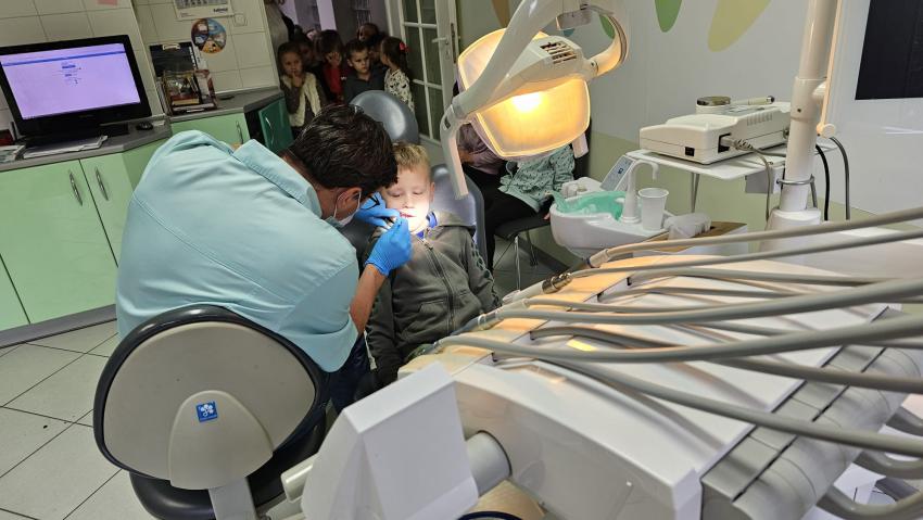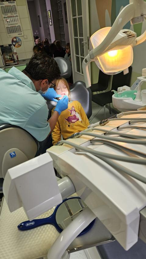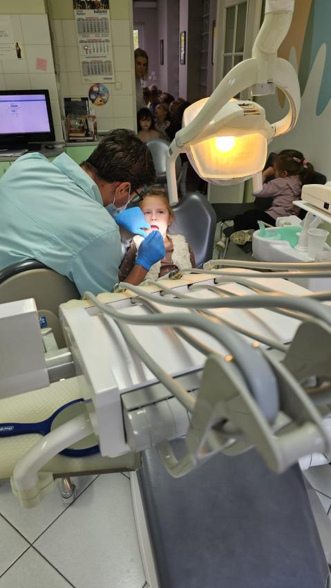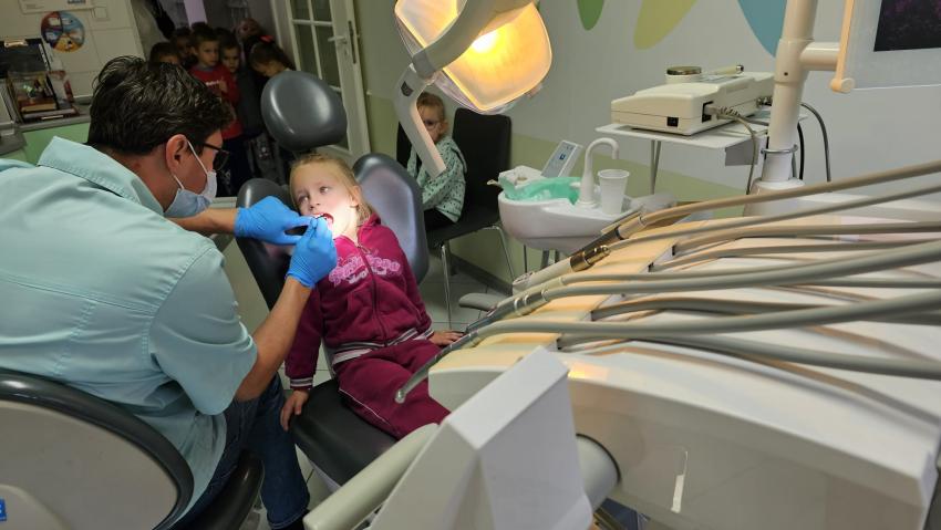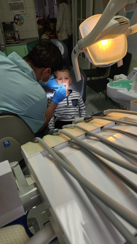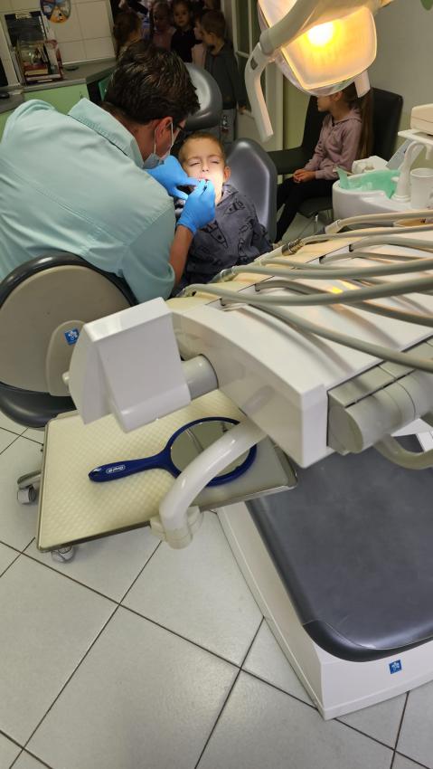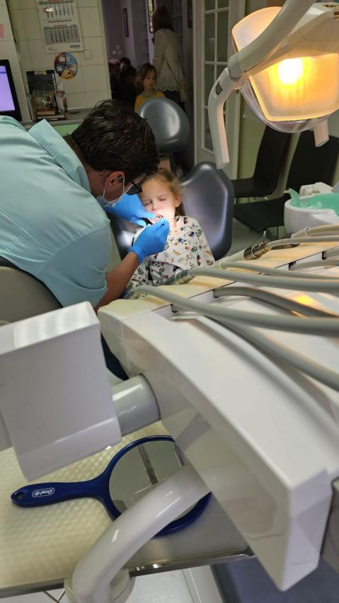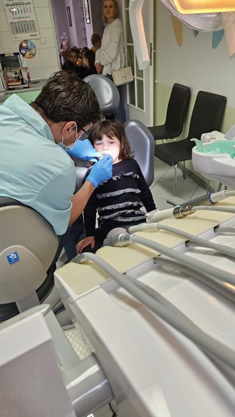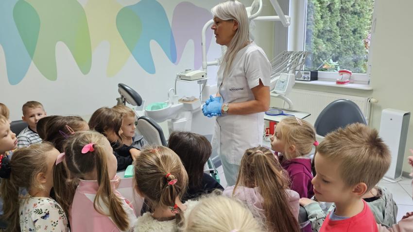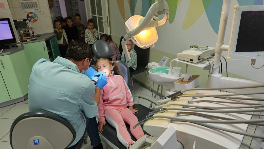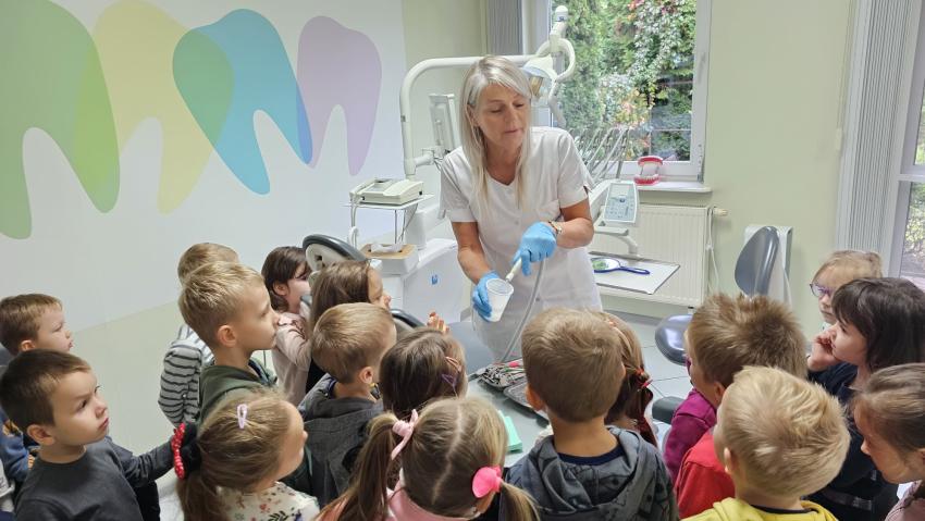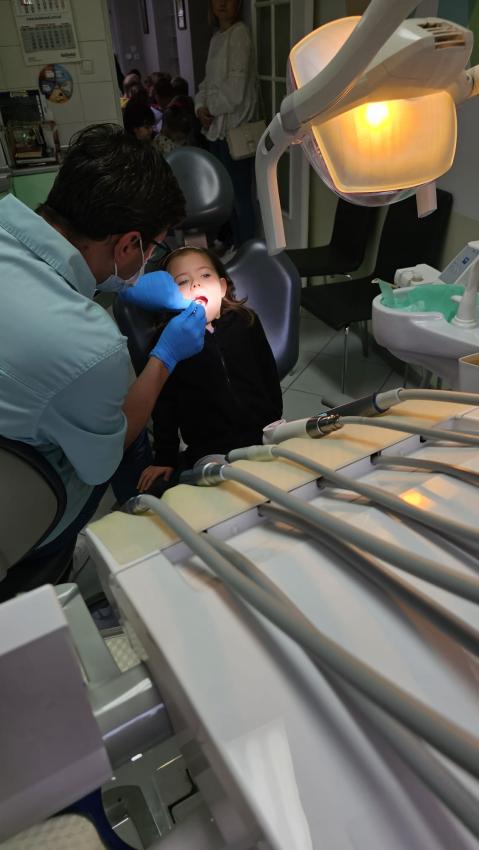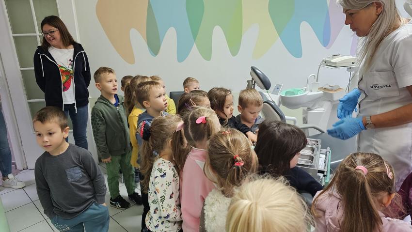 Krasnoludki odwiedziły gabinet dentystyczny. Wszyscy byli bardzo odważni podczas przeglądu stomatologicznego i dumni ze swoich stałych ząbków. Dowiedzieliśmy się również jak dbać o zdrowie swoich ząbków. Dzięki przeglądowi także rodzice Krasnali otrzymali informacje, kto powinien umówić się na dodatkową wizytę u stomatologa. Dziękujemy za poświęcony czas i przekazaną nam wiedzę.
