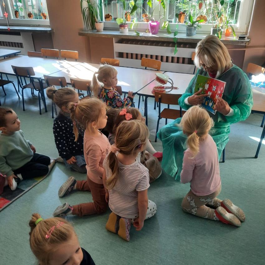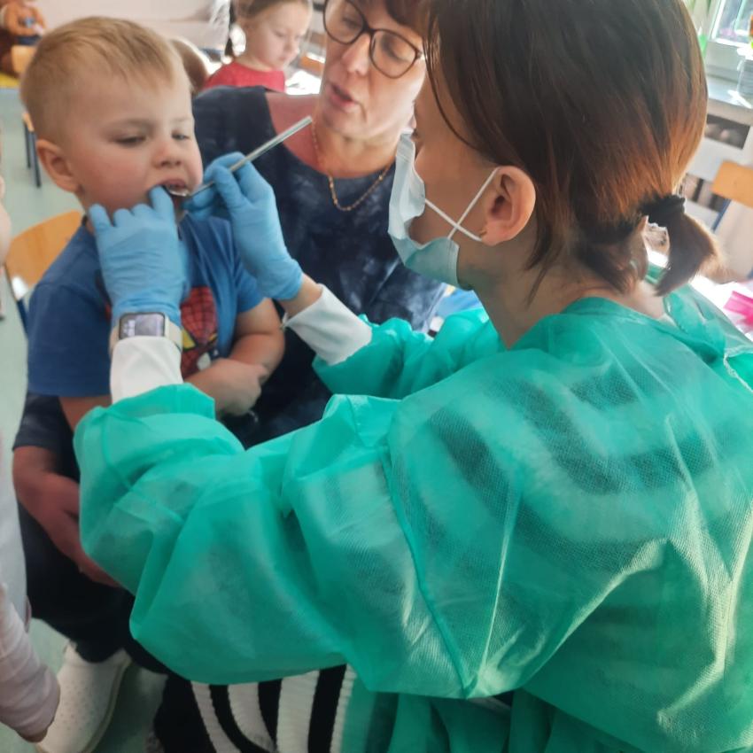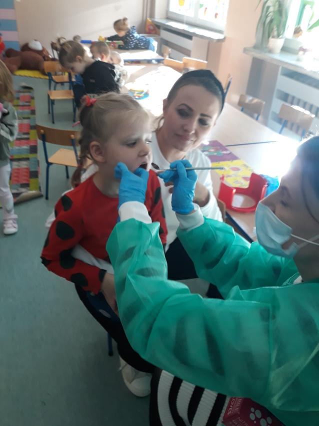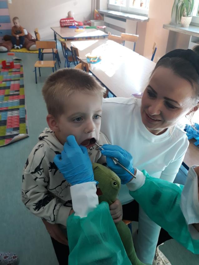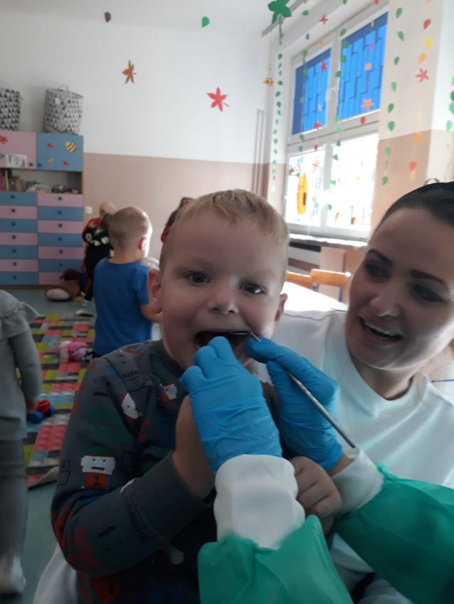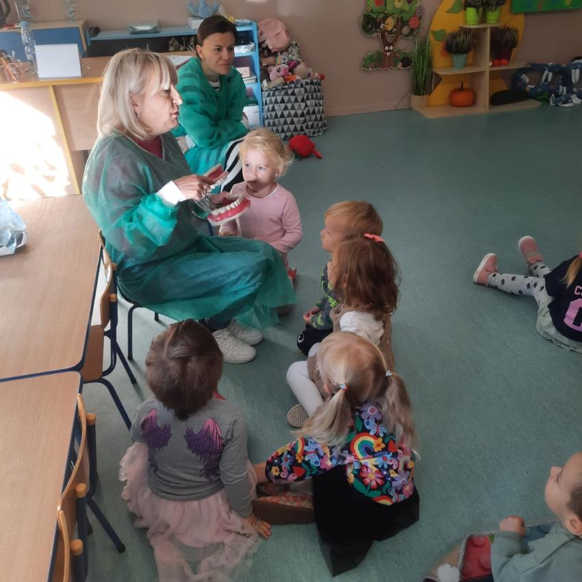 Małe Pszczółki wiedzą już jak dbać o ząbki, by były zdrowe i bielutkie! A wszystko dzięki wizycie Pani Dr Ewy Pory, która im o tym opowiedziała a dodatkowo skontrolowała stan ich ząbków.
