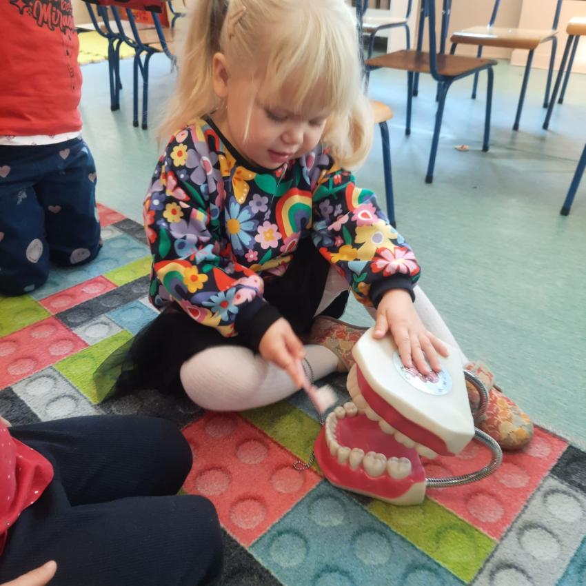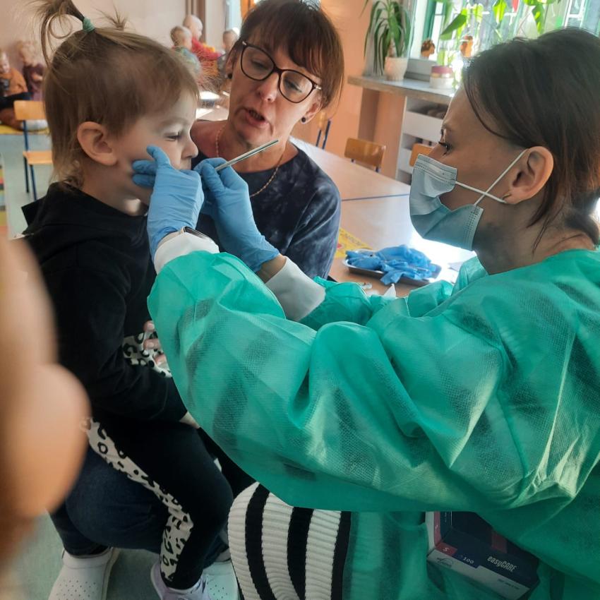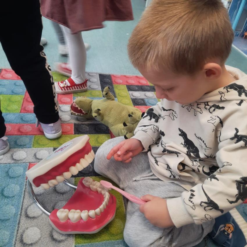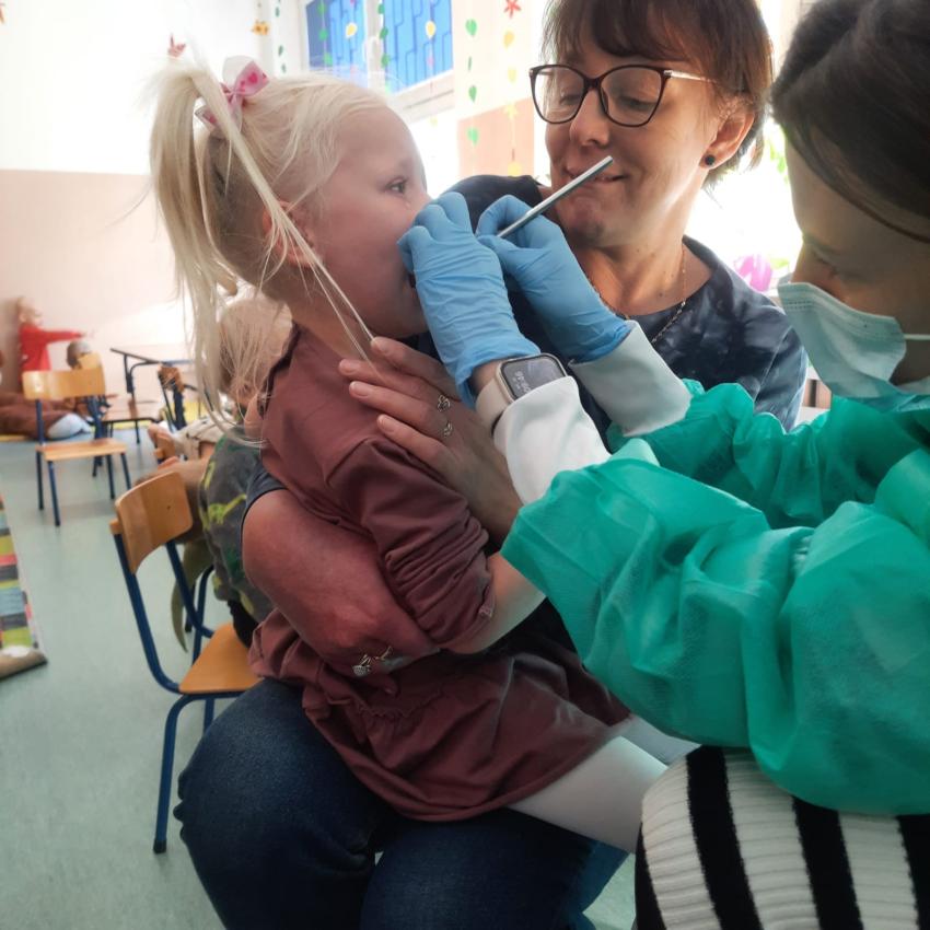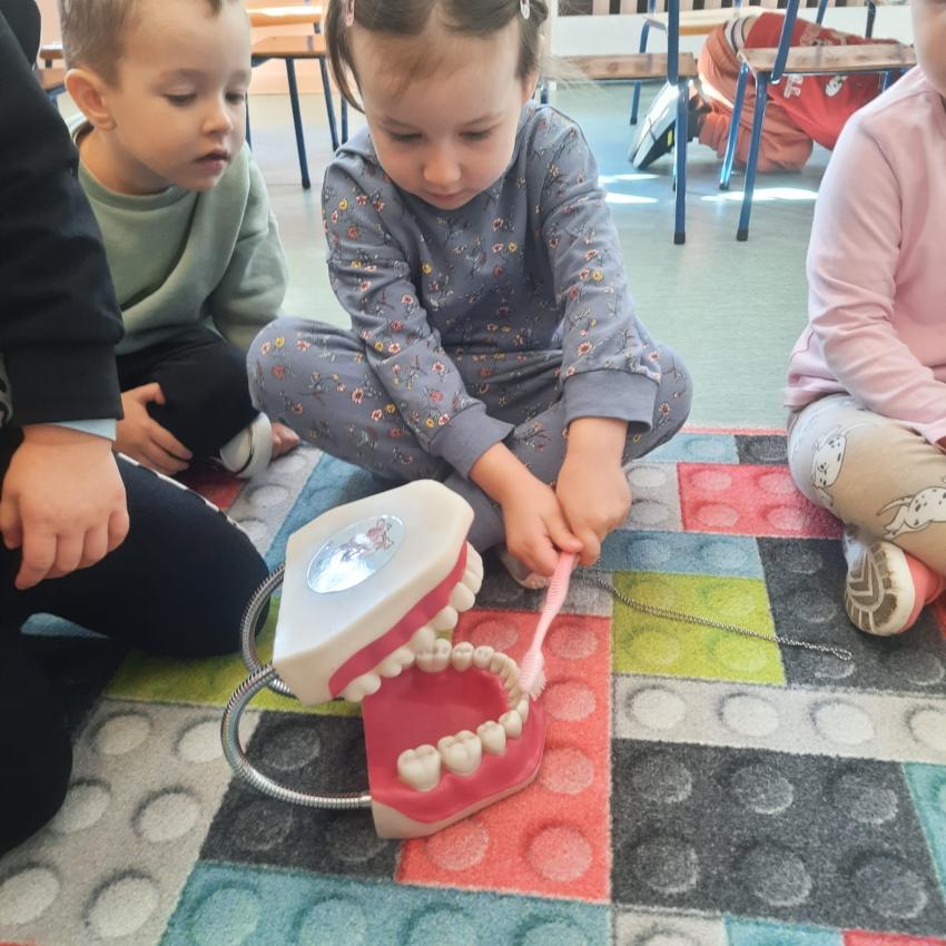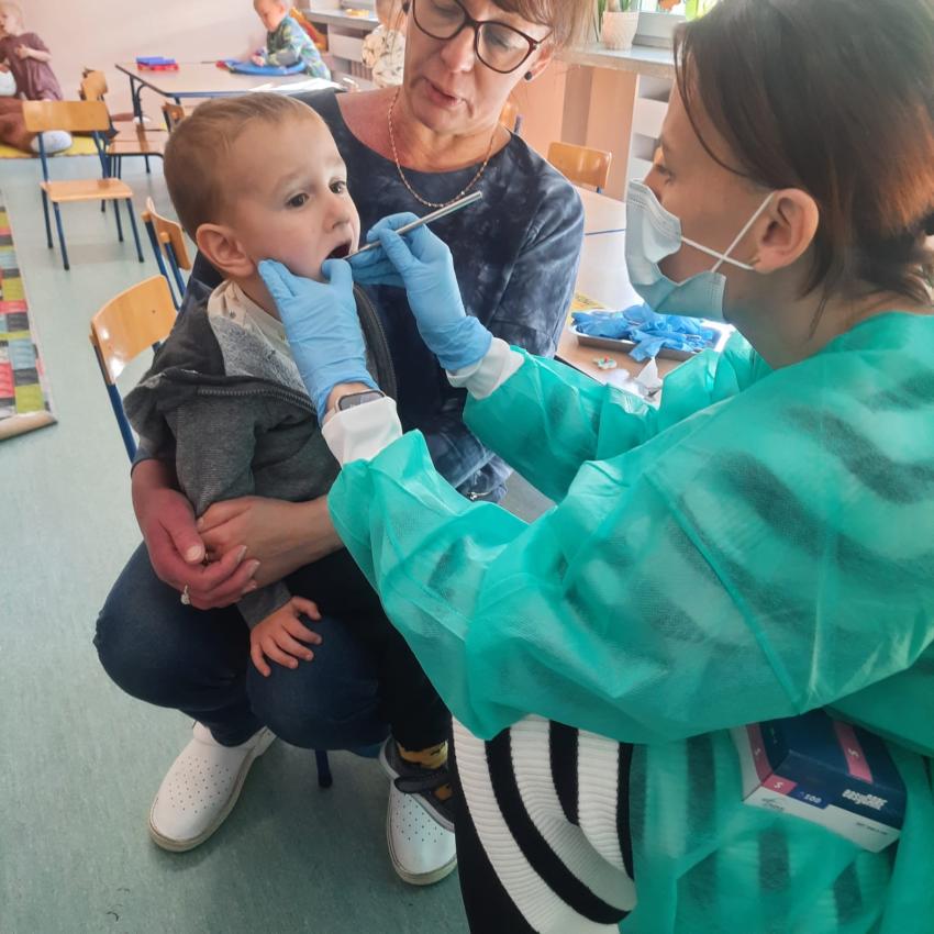 Małe Pszczółki wiedzą już jak dbać o ząbki, by były zdrowe i bielutkie! A wszystko dzięki wizycie Pani Dr Ewy Pory, która im o tym opowiedziała a dodatkowo skontrolowała stan ich ząbków.