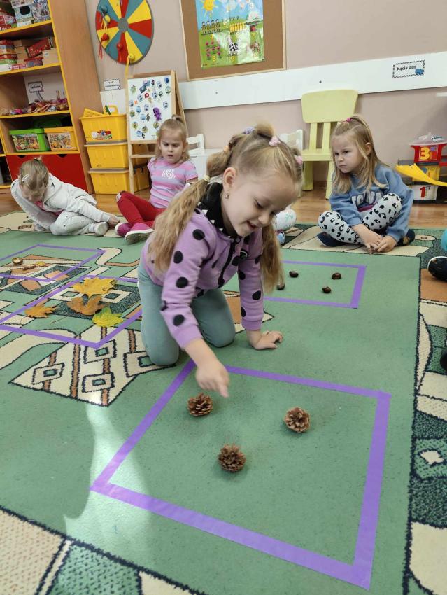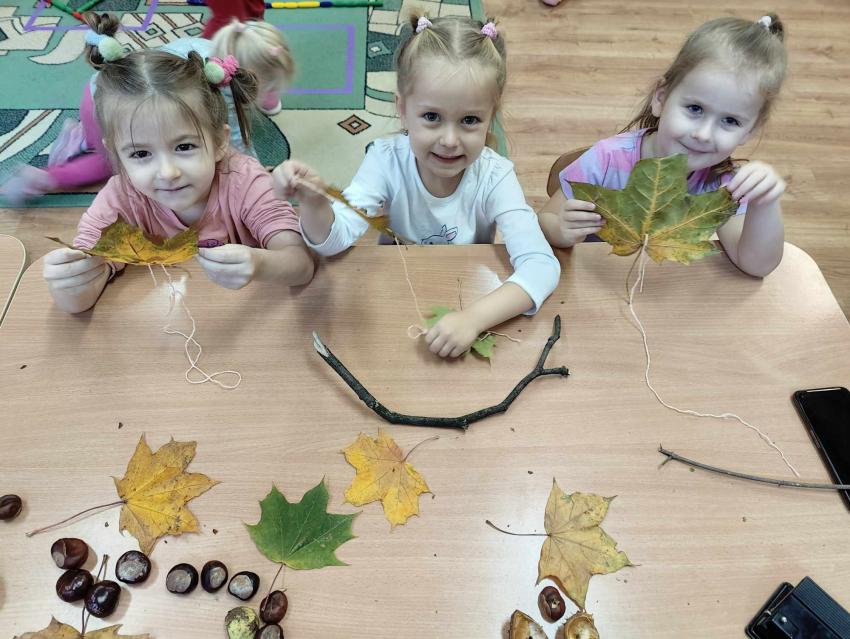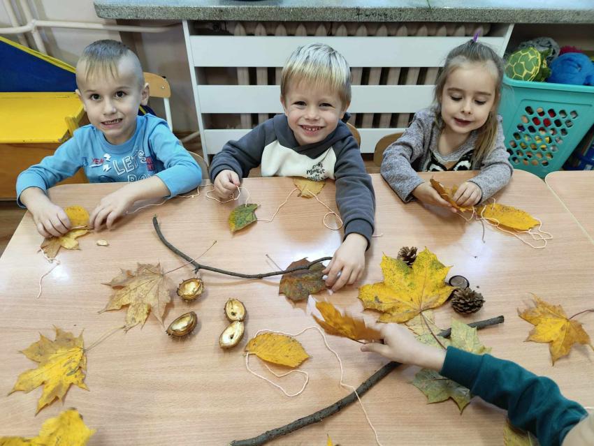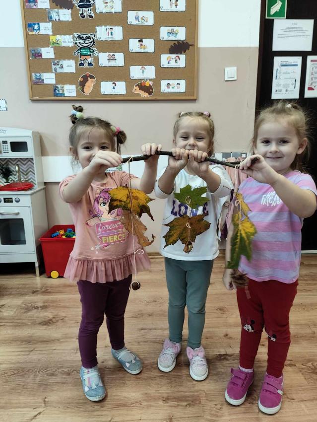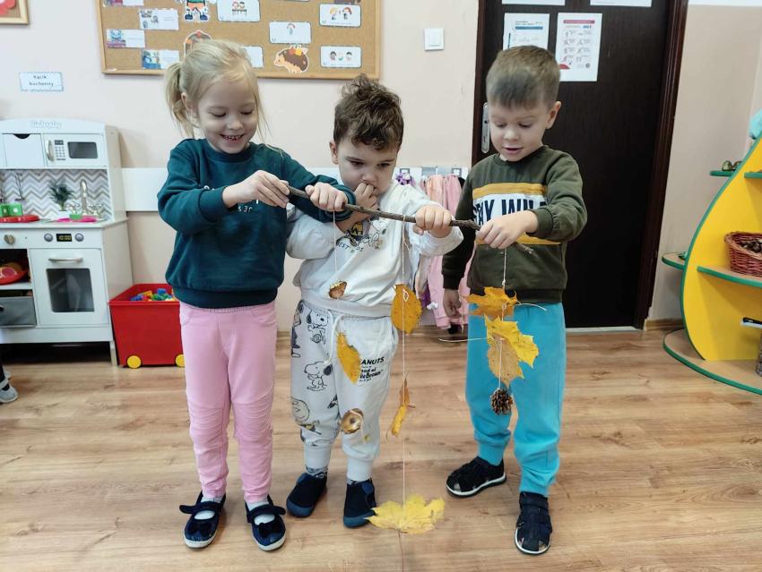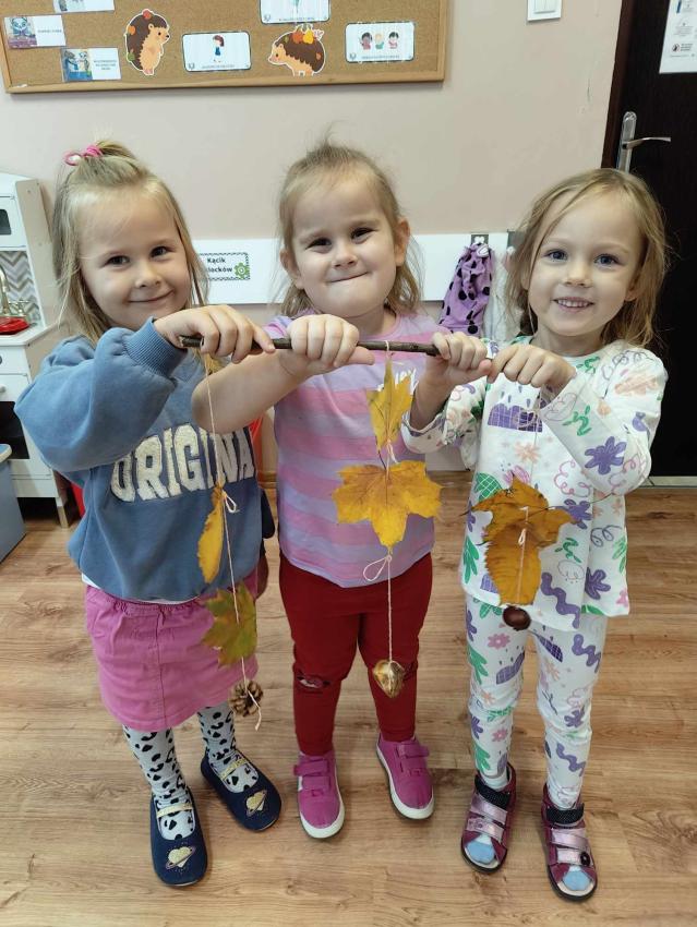 Supersmyki utrwalały pojęcia "więcej", "mniej", "tyle samo" wykorzystując atrybuty jesieni. Zrobiły także "Jesienne mobile" w ramach Ogólnopolskiego Projektu Edukacyjnego ?Z darami natury świat nie jest ponury!?
