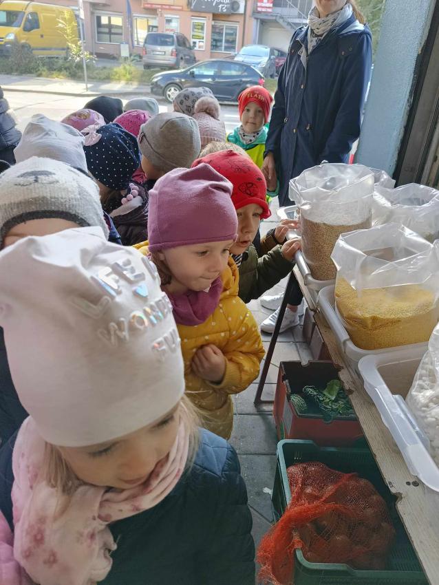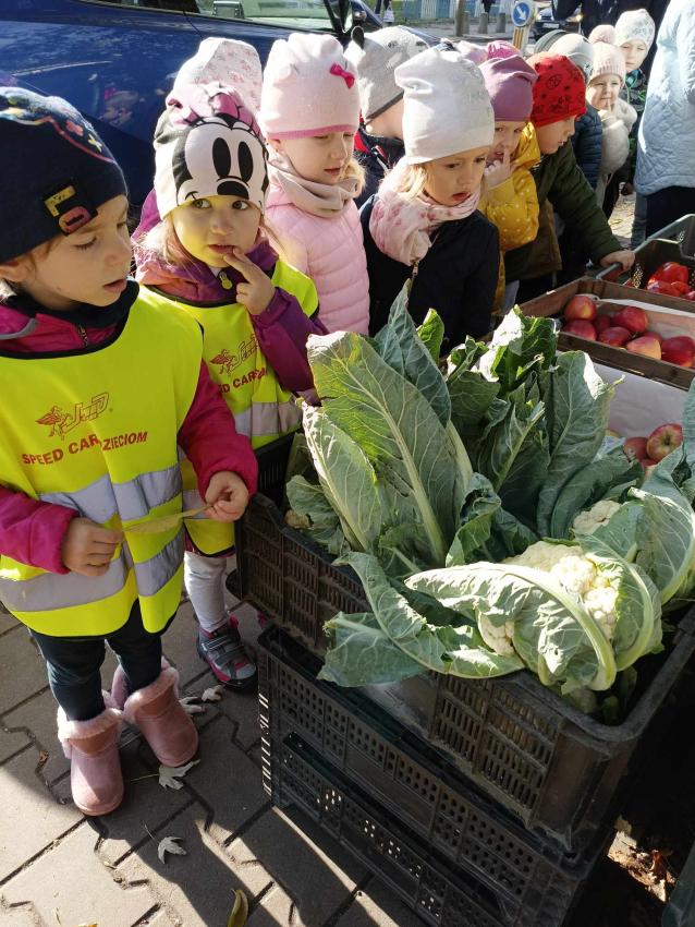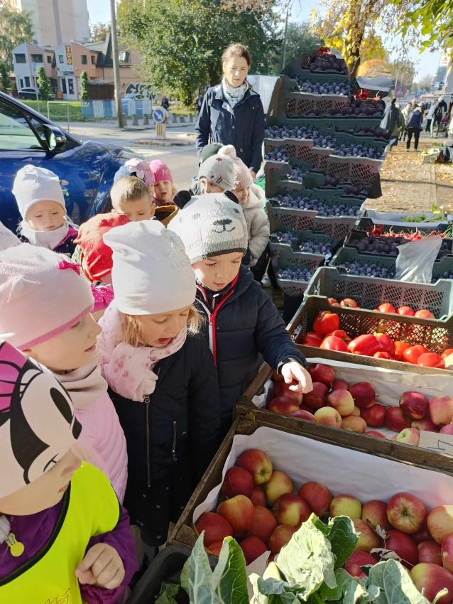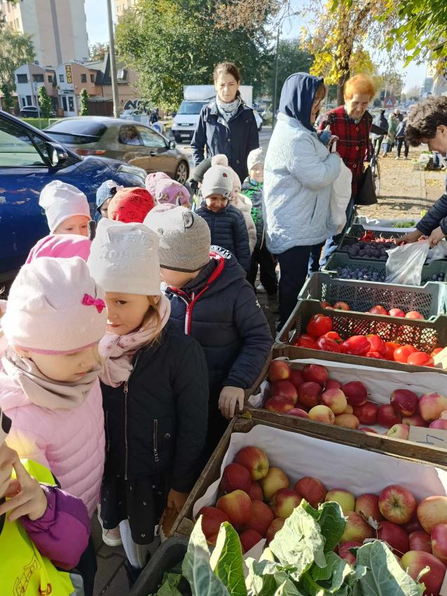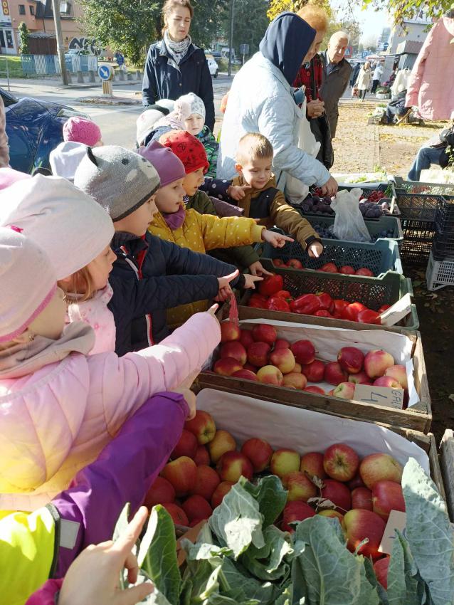 Dzisiaj z grupy Kotków wybrały się na pobliskie targowisko aby zobaczyć jak można przygotować samemu pyszne zapasy na zimę. Przy okazji rozpoznawały i nazywały warzywa i owoce. Mniam.