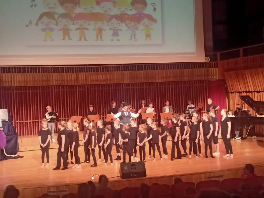 Dzieci z grupy Kotków, Supersmyków, Krasnoludków, Muchomorków i Tygrysków wybrały się do Szkoły Muzycznej na koncert pod tytułem "Wielkie pranie u pana Bemolka". Podczas koncertu dowiedziały się czym jest pięciolinia, klucz wiolinowy, nutka, melodia i rytm. Na scenie nie zabrakło prezentacji gry na instrumentach takich jak: gitara, akordeon, skrzypce, fortepian i wiolonczela. Koncert swoją obecnością uświetniła nowa współprowadząca, pani Nutka. Już nie możemy doczekać się kolejnych koncertów.