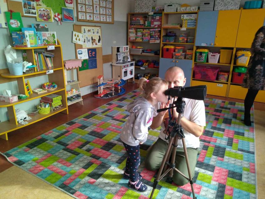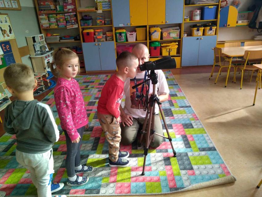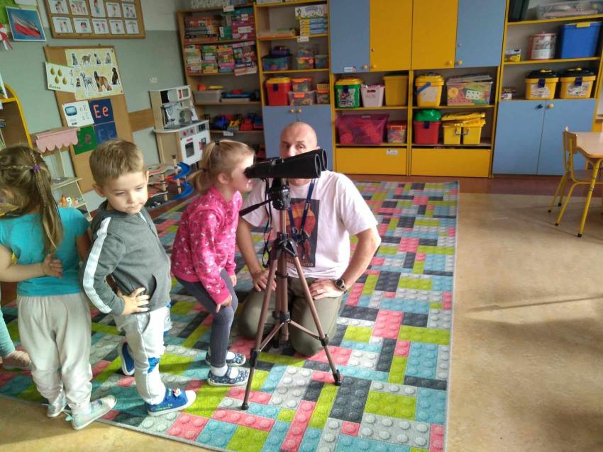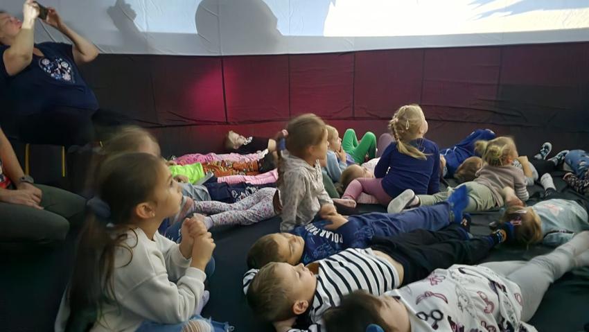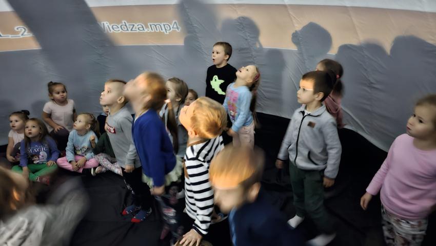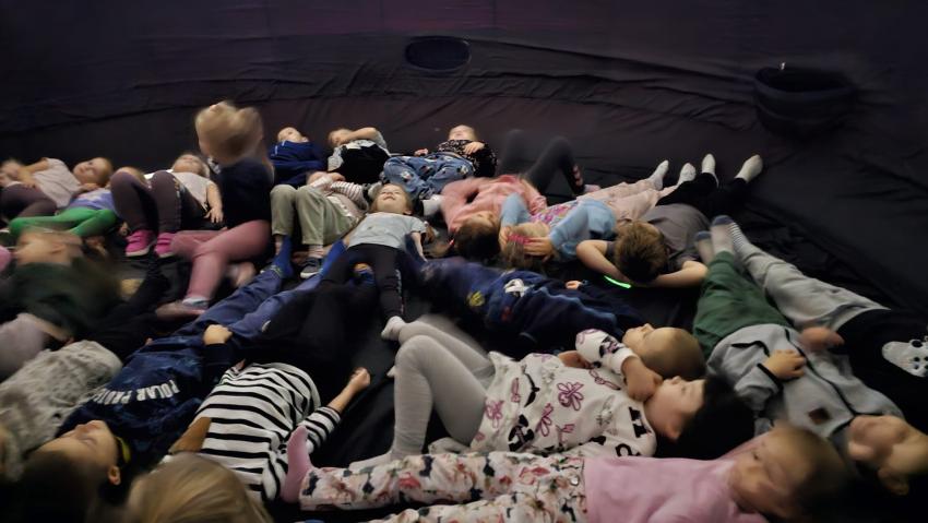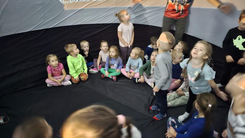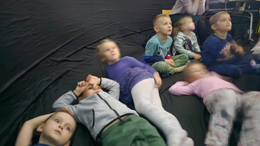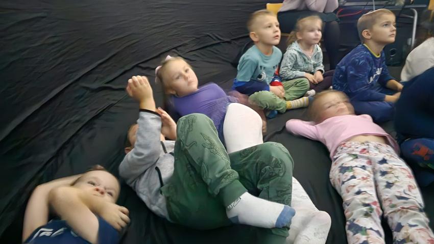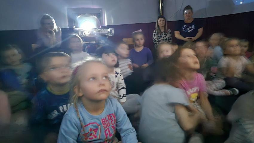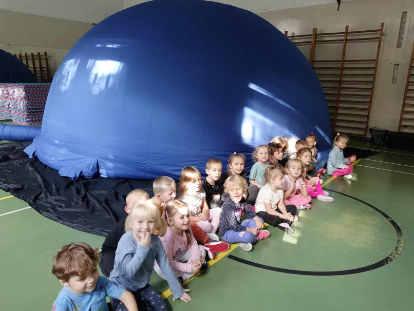 Nasze przedszkole odwiedziło niezwykłe mobilne planetarium wszystkie przedszkolaki, maluchy i starszaki wybrały się w kosmiczną podróż. Maluchy poznały Układ Słoneczny i znajdujące się w nim planety zaś starszaki poznały zjawisko zorzy polarnej.