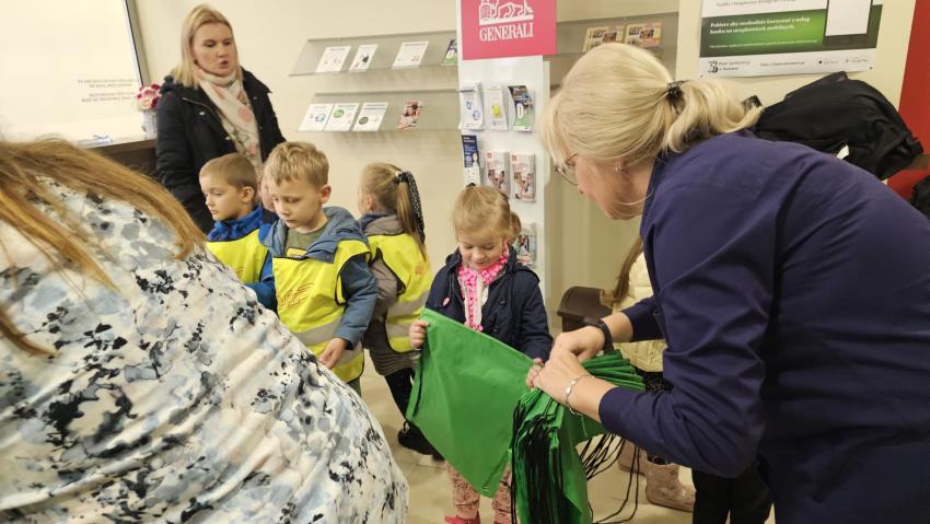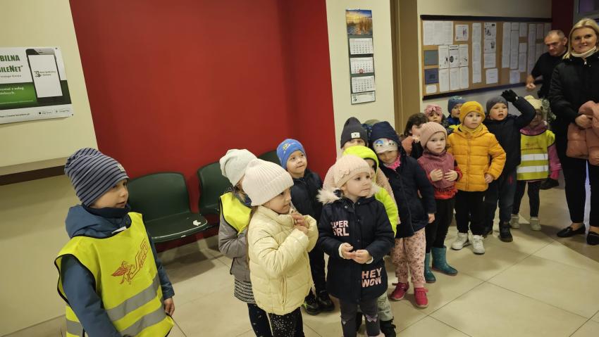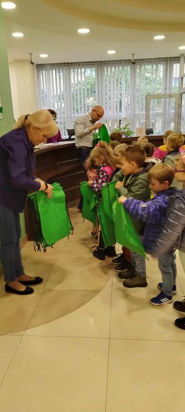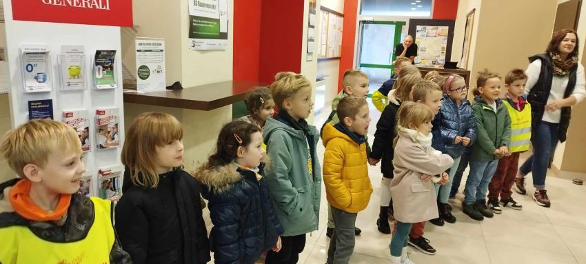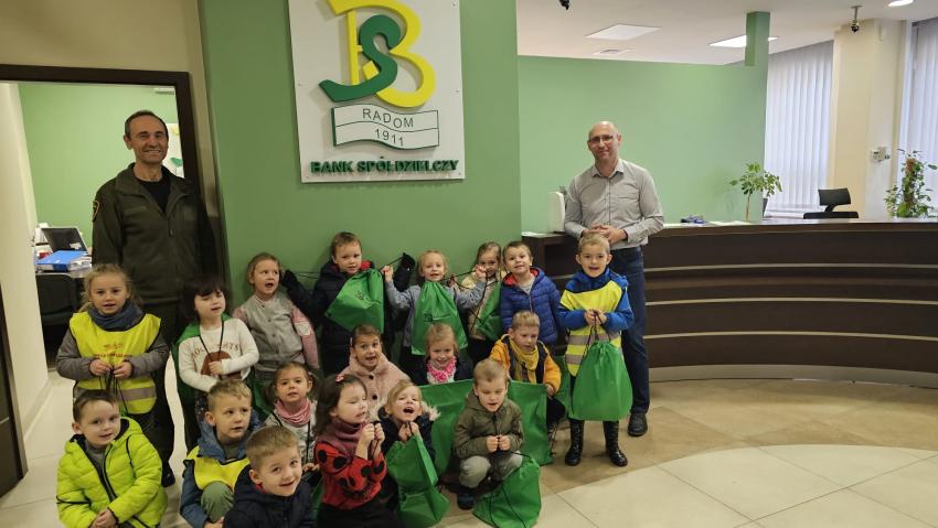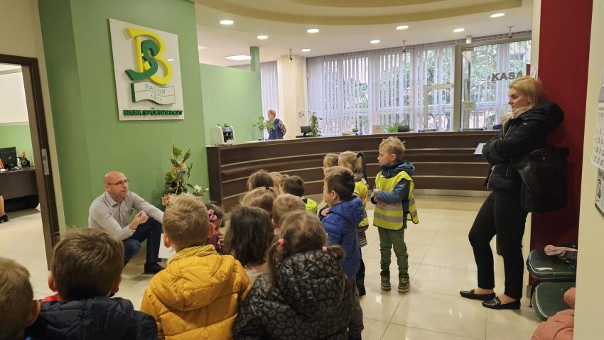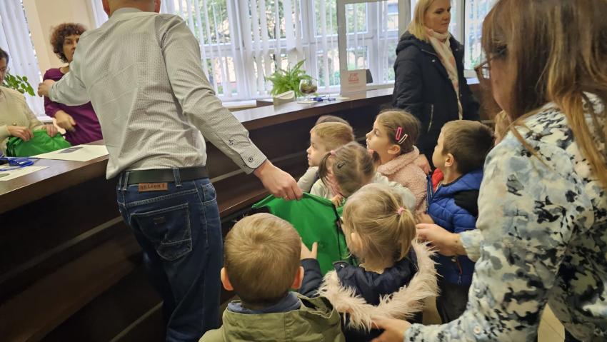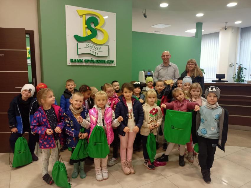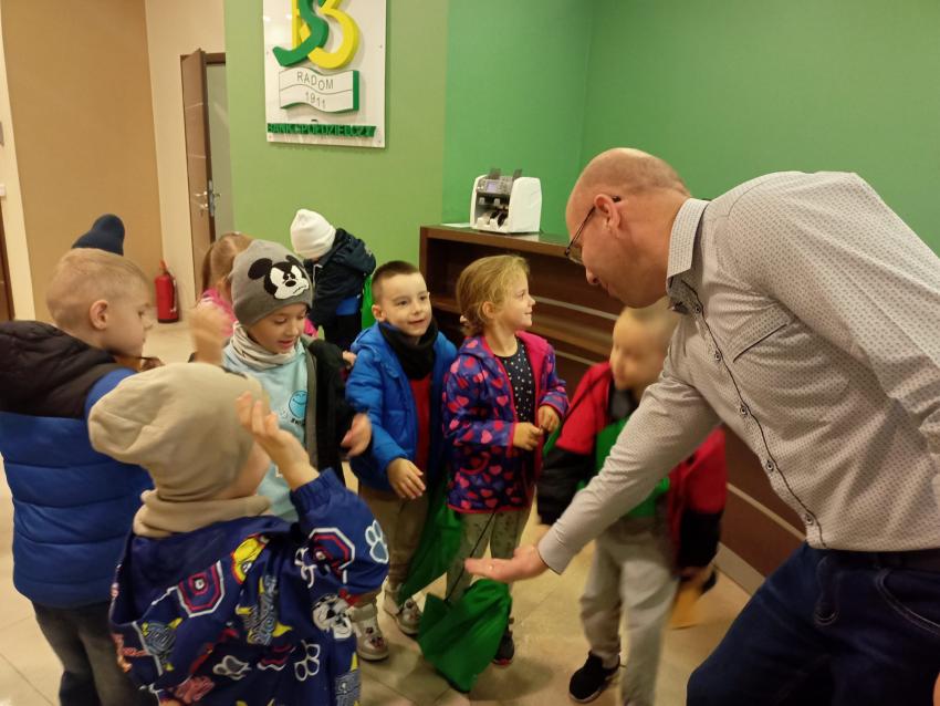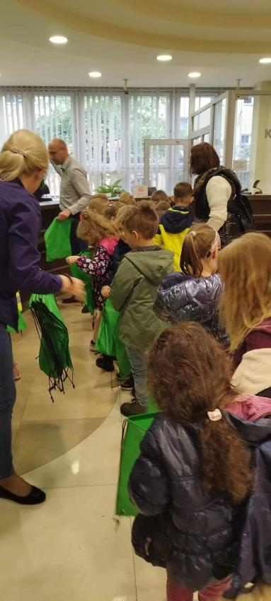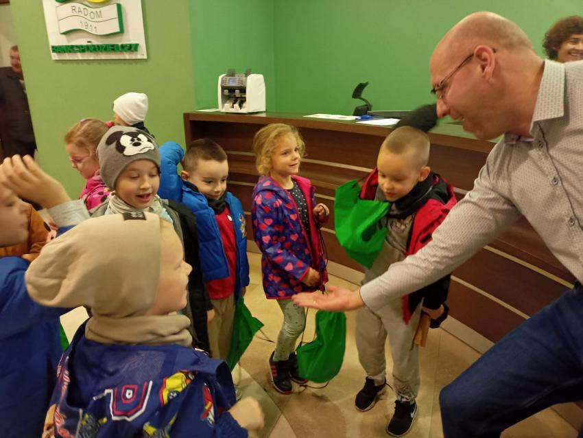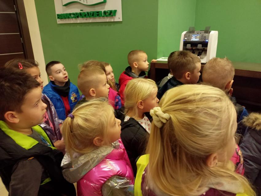 Dzieci z grupy Krasnoludki, Muchomorki i Tygryski odwiedziły Bank Spółdzielczy na ulicy Czachowskiego 21A. Pan Łukasz Myszka opowiedział dzieciom jak działa konto bankowe, wyjaśnił co i gdzie można zrobić w banku oraz pokazał jak szybko są liczone pieniądze w placówce bankowej.