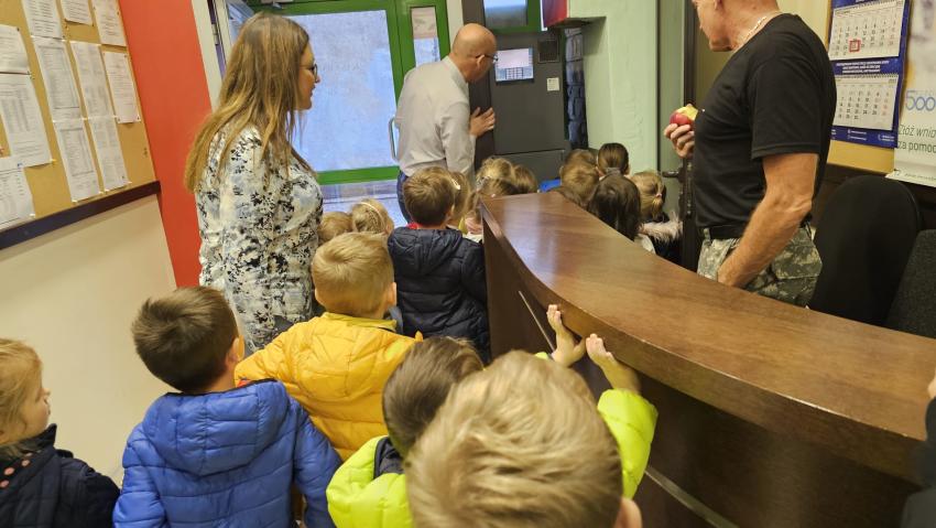 Mieliśmy okazję też obejrzeć bankomat od strony niewidocznej dla wszystkich, a także podjęliśmy próbę rozszyfrowania szyfru do bankomatu. Na dzieci czekała miła niespodzianka-gadżety, które bardzo przypadły wszystkim do gustu.