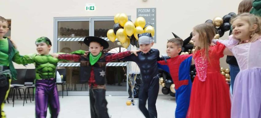 Tygryski i Supersmyki na zabawie karnawałowej w Niepublicznym Przedszkolu Kraina Radości