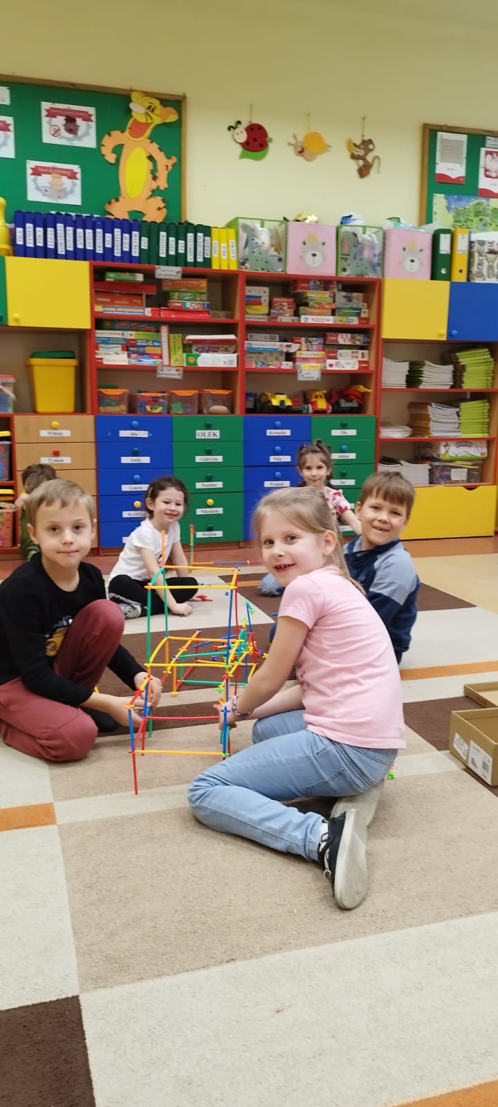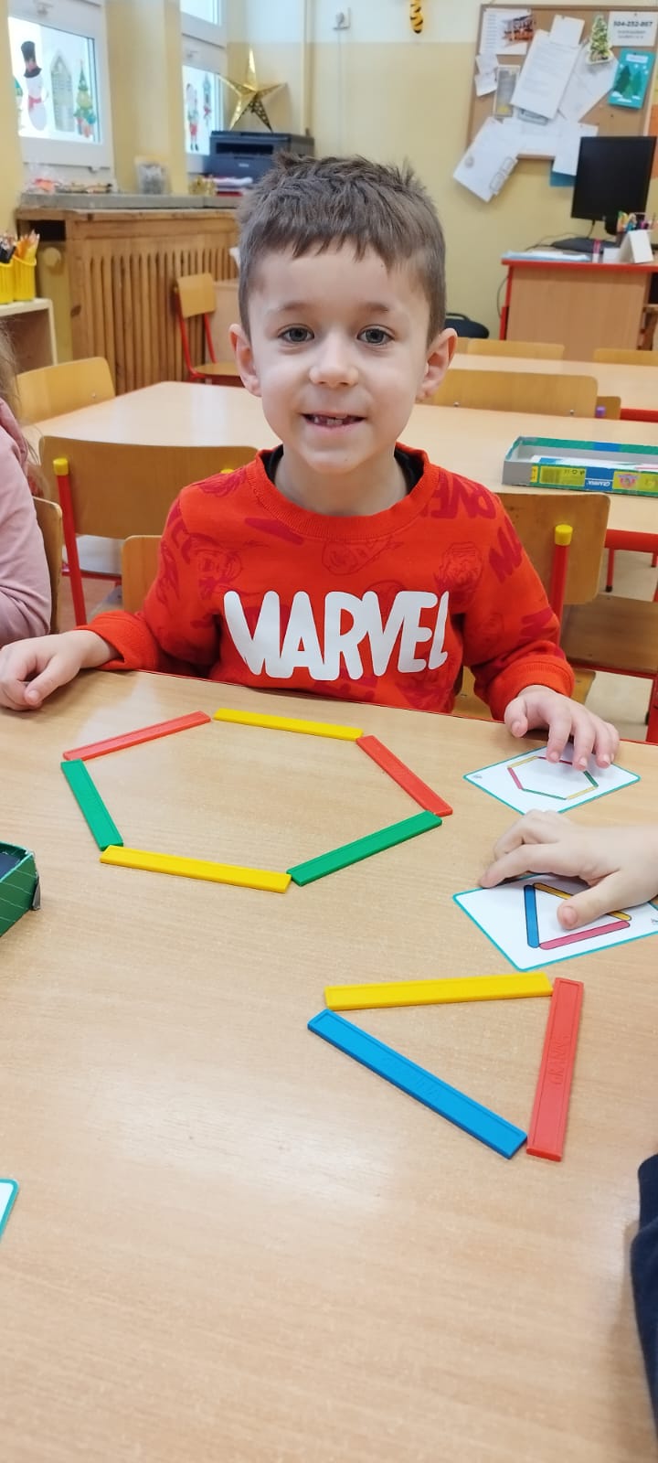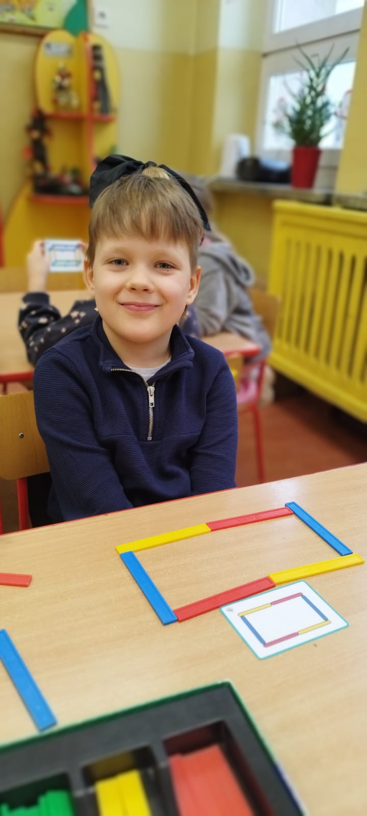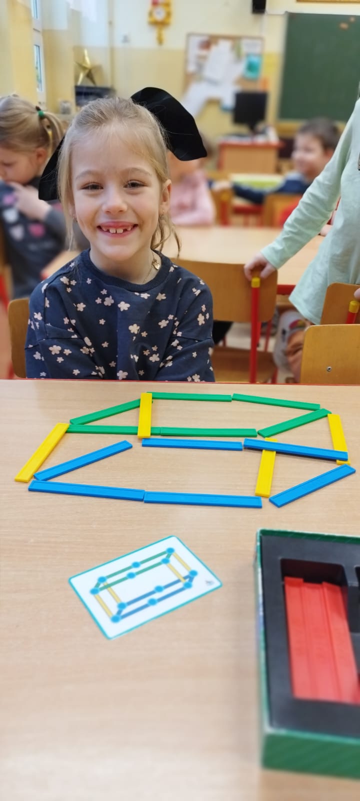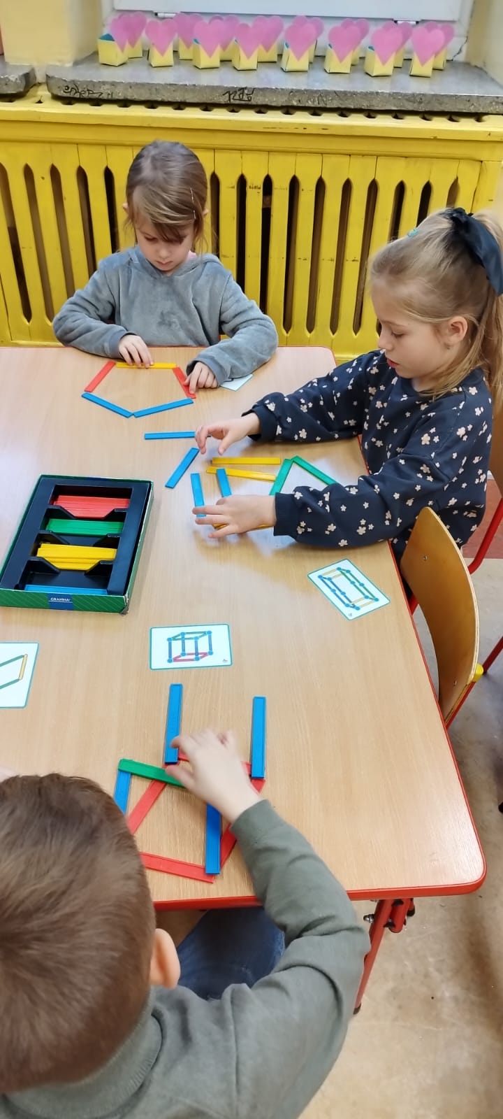 W ramach ogólnopolskiego projektu "Kreatywna matematyka" dzieci z grupy Tygryski wykonały matematyczne łamigłówki z wykorzystaniem patyczków. Dzieci musiały przełożyć tak jeden patyczek, aby np. z cyfry 3 postała cyfra 2. To była cudowna logiczna przygoda dla naszych zerówkowiczów. Dodatkowo układaliśmy z patyczków figury, zarówno te podstawowe, jak i bardziej skomplikowane.