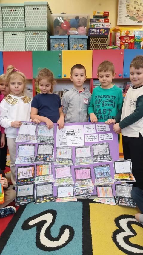 Dzisiaj w naszym przedszkolu obchodzono Dzień Bezpiecznego Internetu. Dzieci oglądały edukacyjną bajkę "Mój przyjaciel Necio", słuchały piosenki Z internetem świat jest bliski oraz rozmawiały z Paniami o bezpiecznym korzystaniu z multimediów. Dodatkowo przedszkolaki wykonały prace plastyczne oraz plakaty .