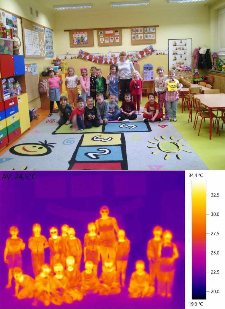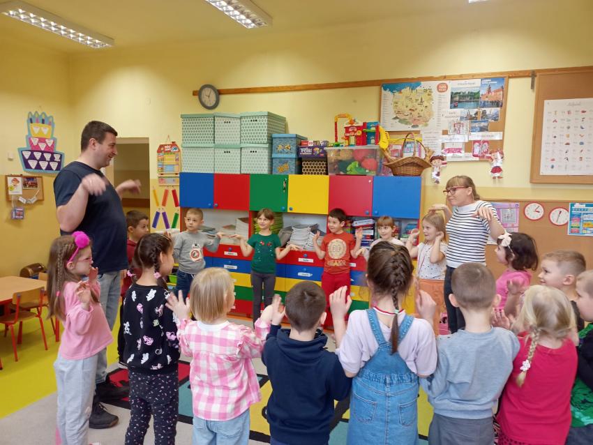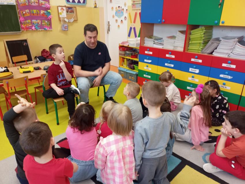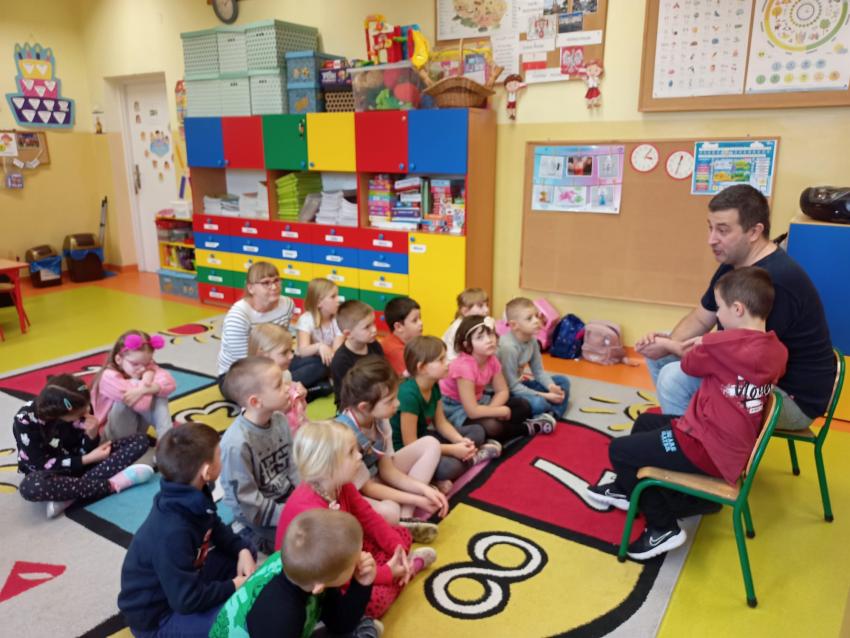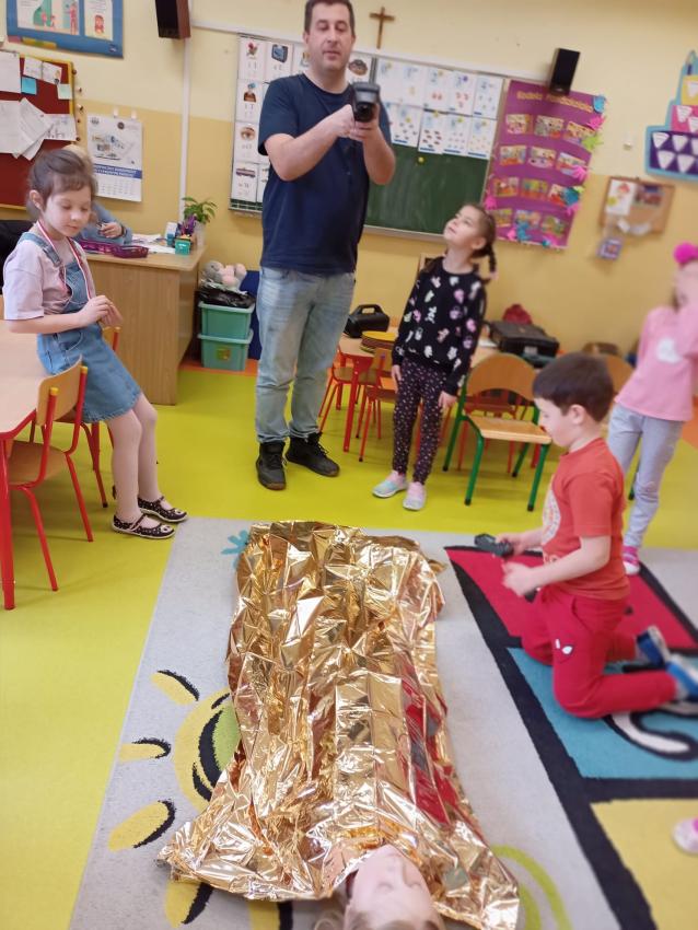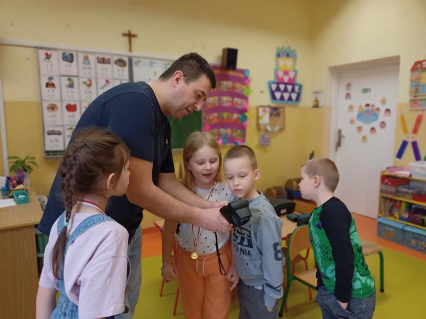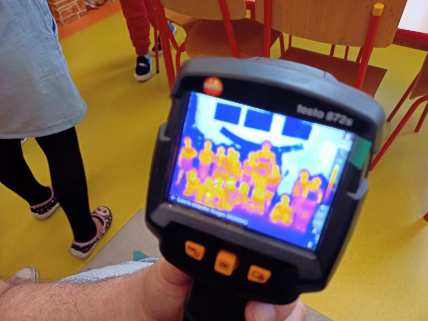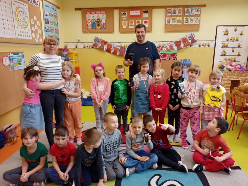 Muchomorki odwiedził wspaniały gość, tata Filipka. Odkrył przed nami tajemnicę nietypowego zawodu, jakim jest audytor energetyczny. Jakie narzędzia wykorzystuje w swojej pracy ? Czym jest termowizja i w jakiej dziedzinie ma zastosowanie? Na te pytania udało nam się poznać odpowiedź podczas zajęć z panem Mirkiem. Dzieci z wielkim zainteresowaniem słuchały wszystkich informacji na temat mierzenia temperatury domu, pomieszczeń, mierzenia szerokości i wysokości dużych budynków. Miały okazję same sprawdzić, jak działają przyniesione przez pana Mirka narzędzia. Największą furorę zrobiła kamera termowizyjna. Dzieci z wielką ciekawością i zdziwieniem przyglądały się obrazowi własnych ciał i śladów pozostawionych na powierzchni. Poszukiwaliśmy ciepłych miejsc w naszym ciele. Zastanawialiśmy się wspólnie w jakich dziedzinach jest ona wykorzystywana. To była wspaniała zabawa dla wszystkich. Tata Filipka zasłużył na podziękowanie i uścisk od wszystkich. Dziękujemy za wspaniałe warsztaty. Bardzo nam się podobało spotkanie.