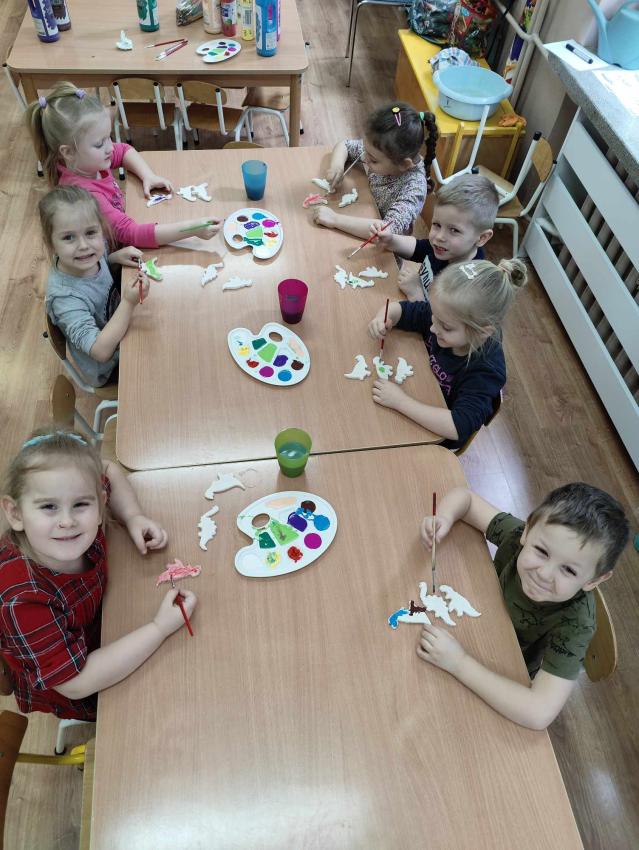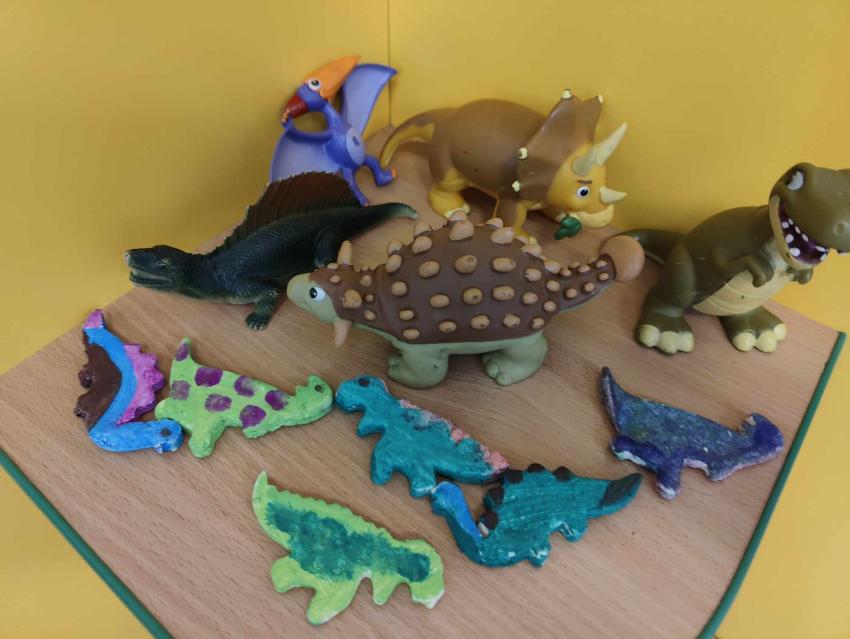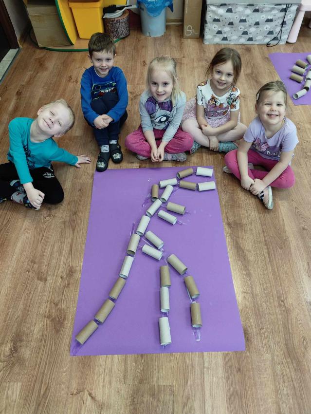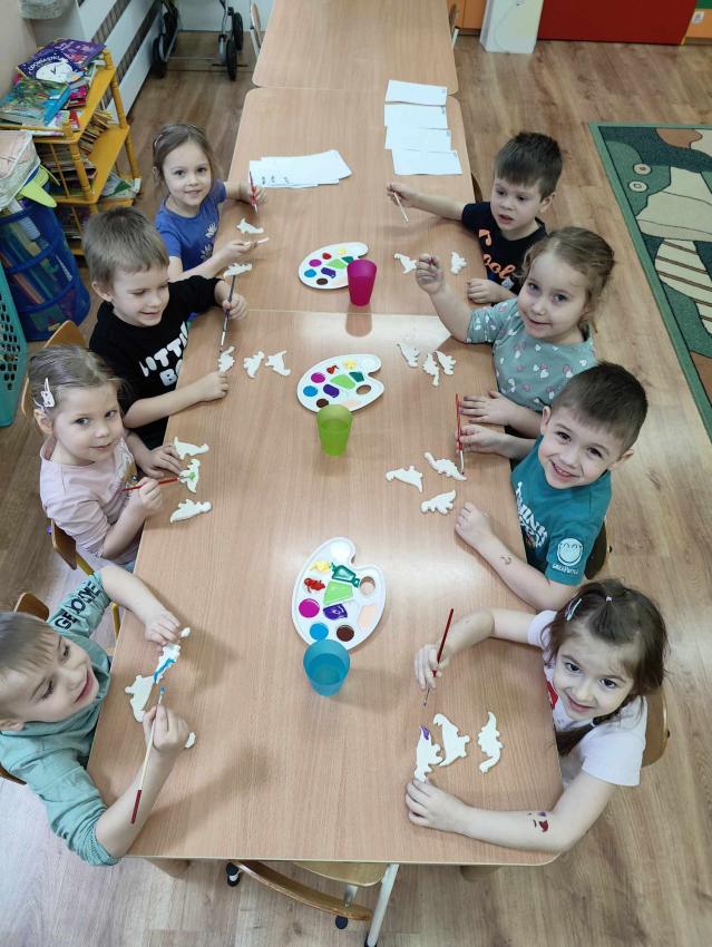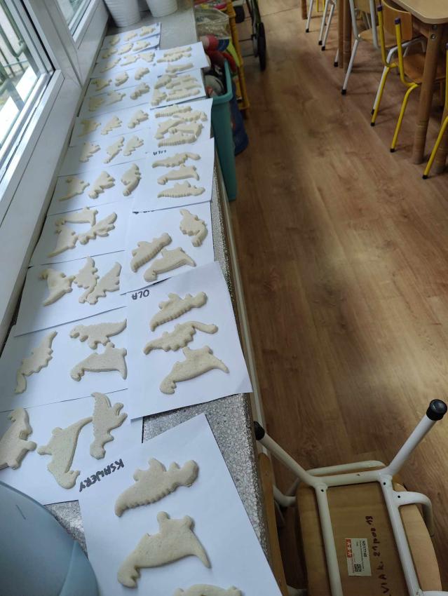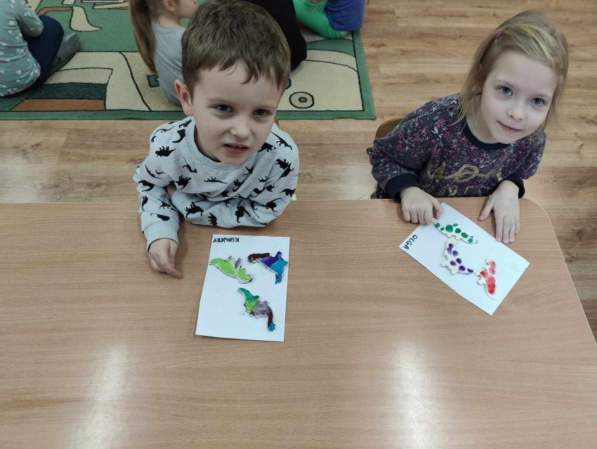 Grupę Supersmyków opanowały dinozaury. Były wykopaliska tworzenie szkieletów przeliczanie rodzin. Ugniataliśmy masę solną z której powstały piękne figurki. W przedszkolu pojawiły się nawet dziwne ślady, które zaprowadziły nas na salę gimnastyczną, gdzie wszyscy pokonali tor przeszkód, a na końcu zobaczyliśmy wybuch wulkanu. To był tydzień pełen niespodzianek.
