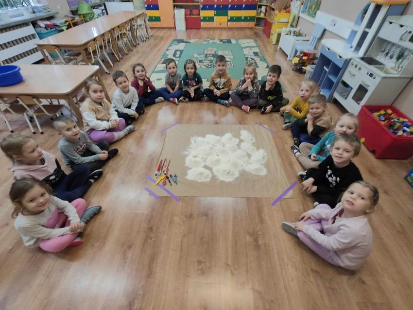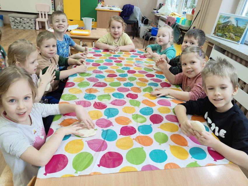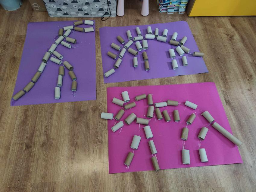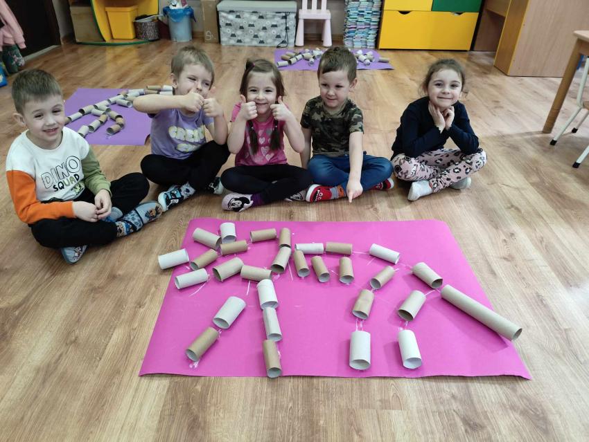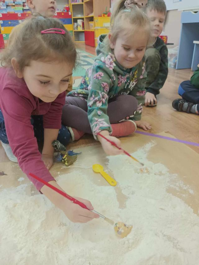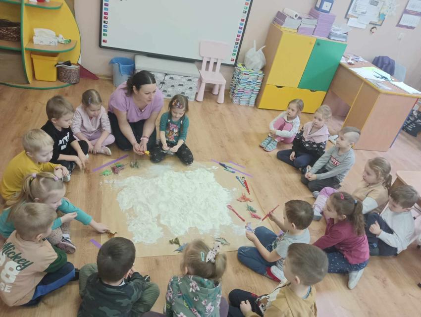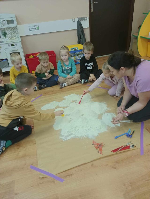 Grupę Supersmyków opanowały dinozaury. Były wykopaliska tworzenie szkieletów przeliczanie rodzin. Ugniataliśmy masę solną z której powstały piękne figurki. W przedszkolu pojawiły się nawet dziwne ślady, które zaprowadziły nas na salę gimnastyczną, gdzie wszyscy pokonali tor przeszkód, a na końcu zobaczyliśmy wybuch wulkanu. To był tydzień pełen niespodzianek.