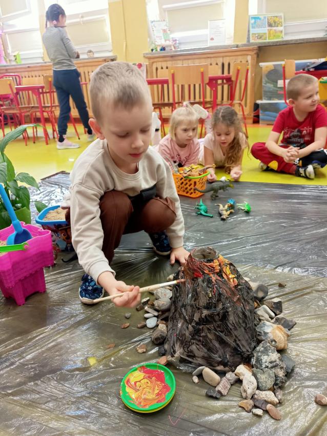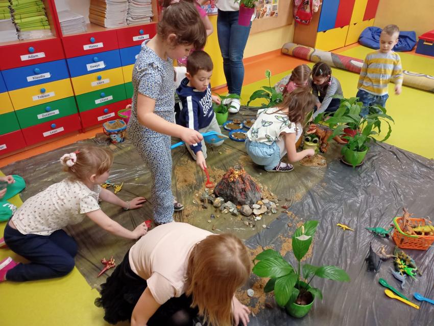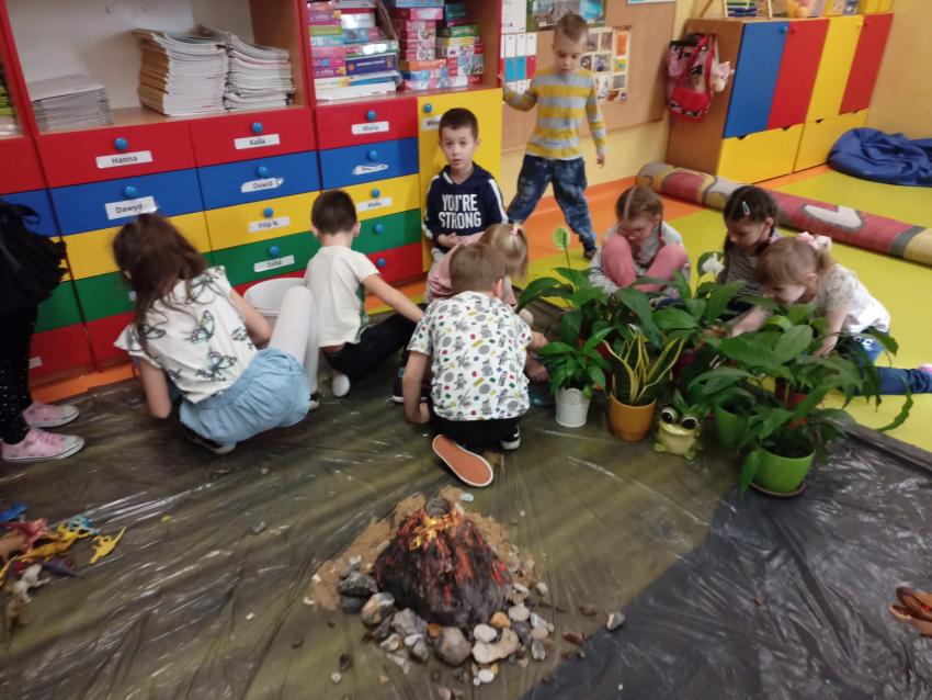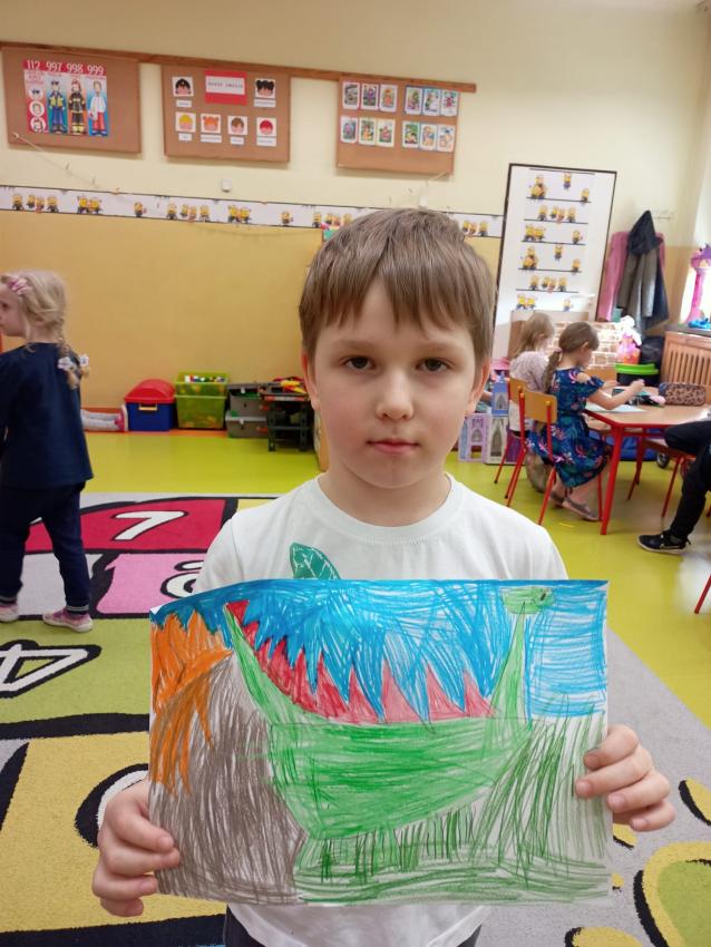 Park Jurajski u Muchomorków . W tworzenie tego projektu zaangażowane były wszystkie dzieci. Mogliśmy na chwilę przenieść się do świata dinozaurów. To była wspaniała przygoda.